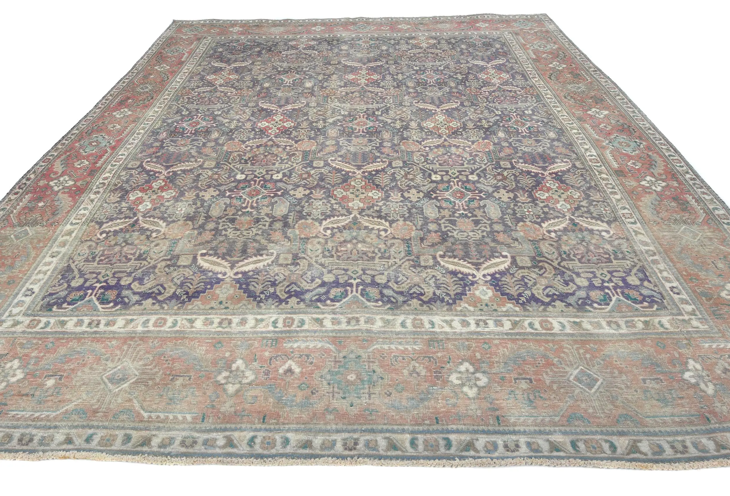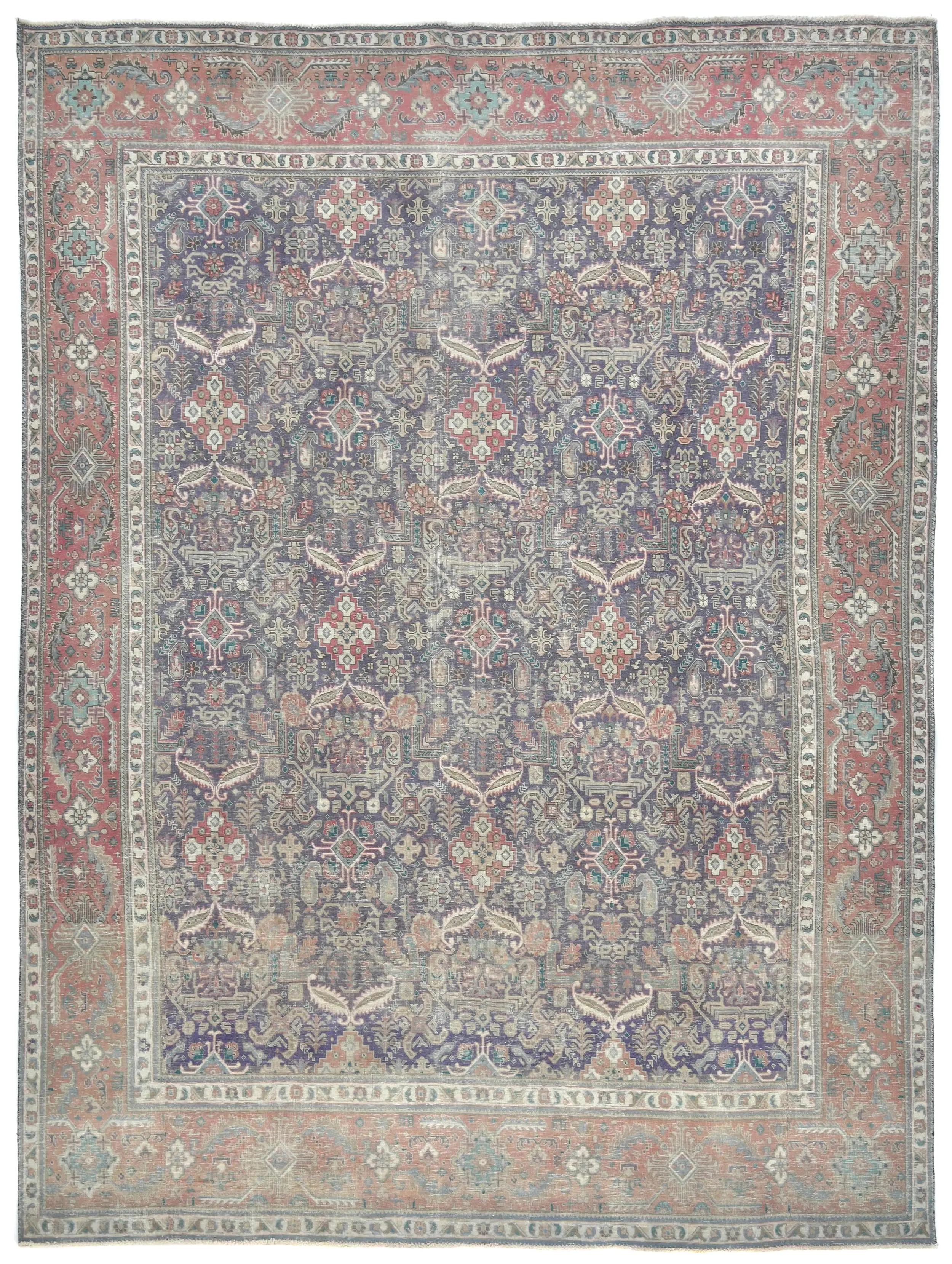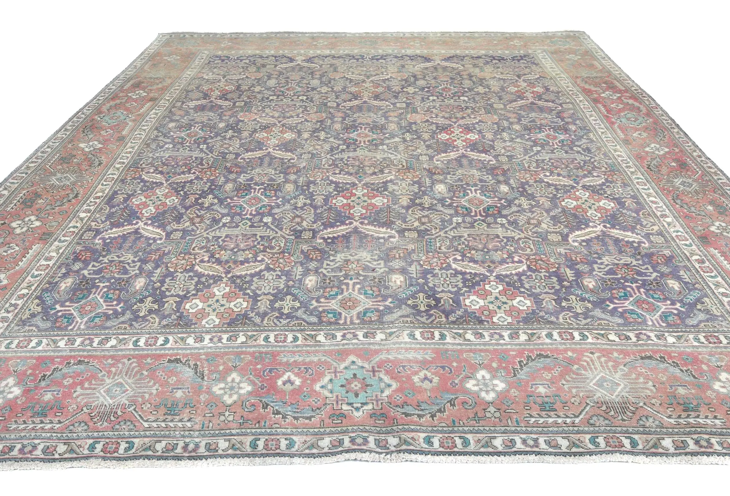 Semi Antique Muted Purple Floral 9X12 Distressed Vintage Oriental Rug