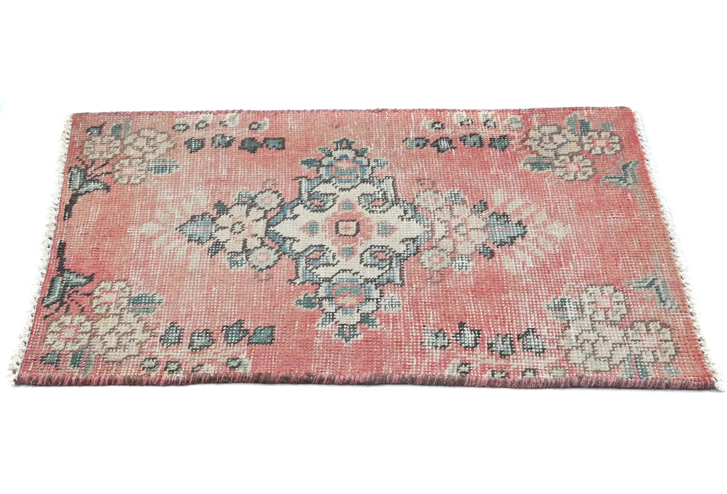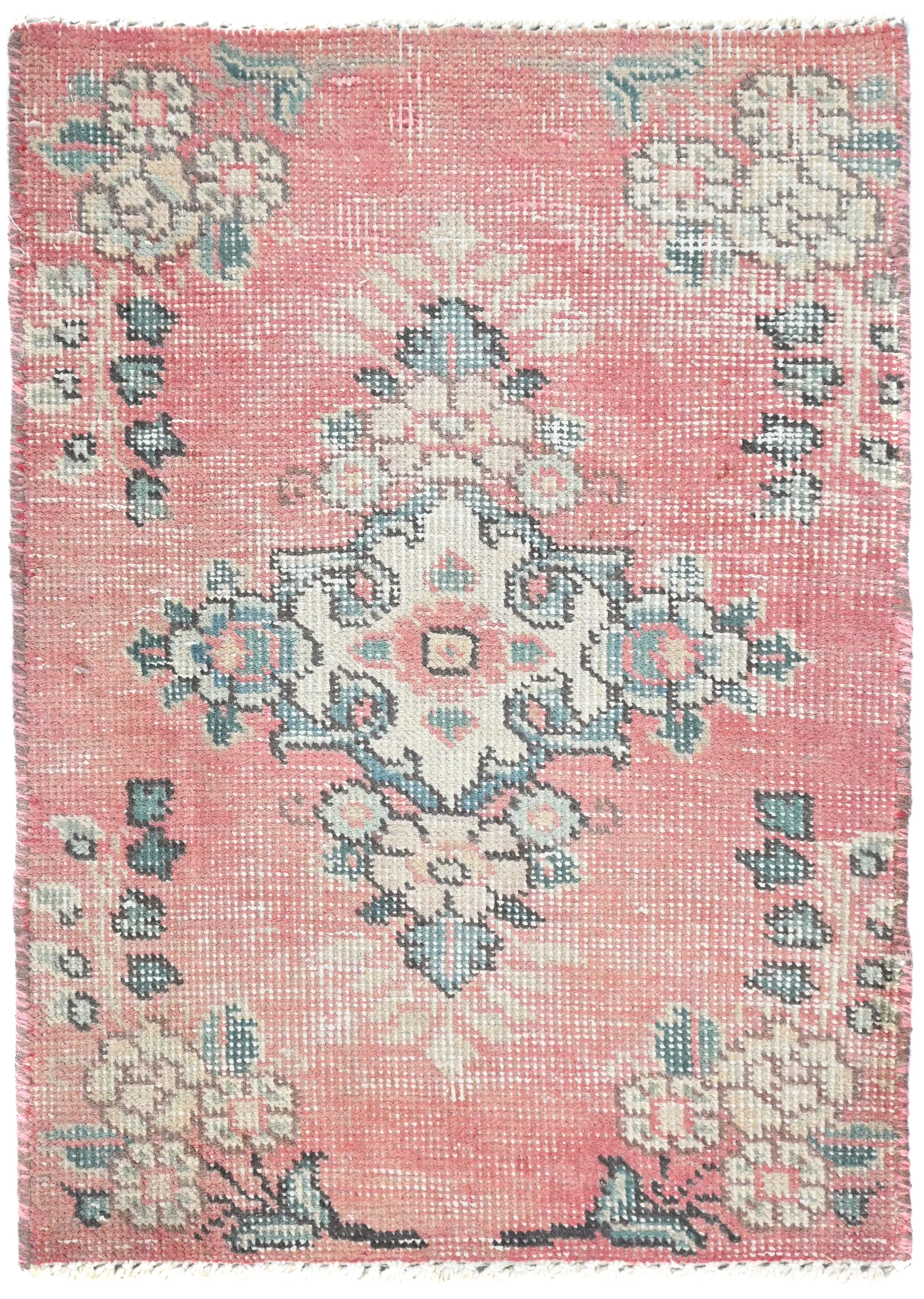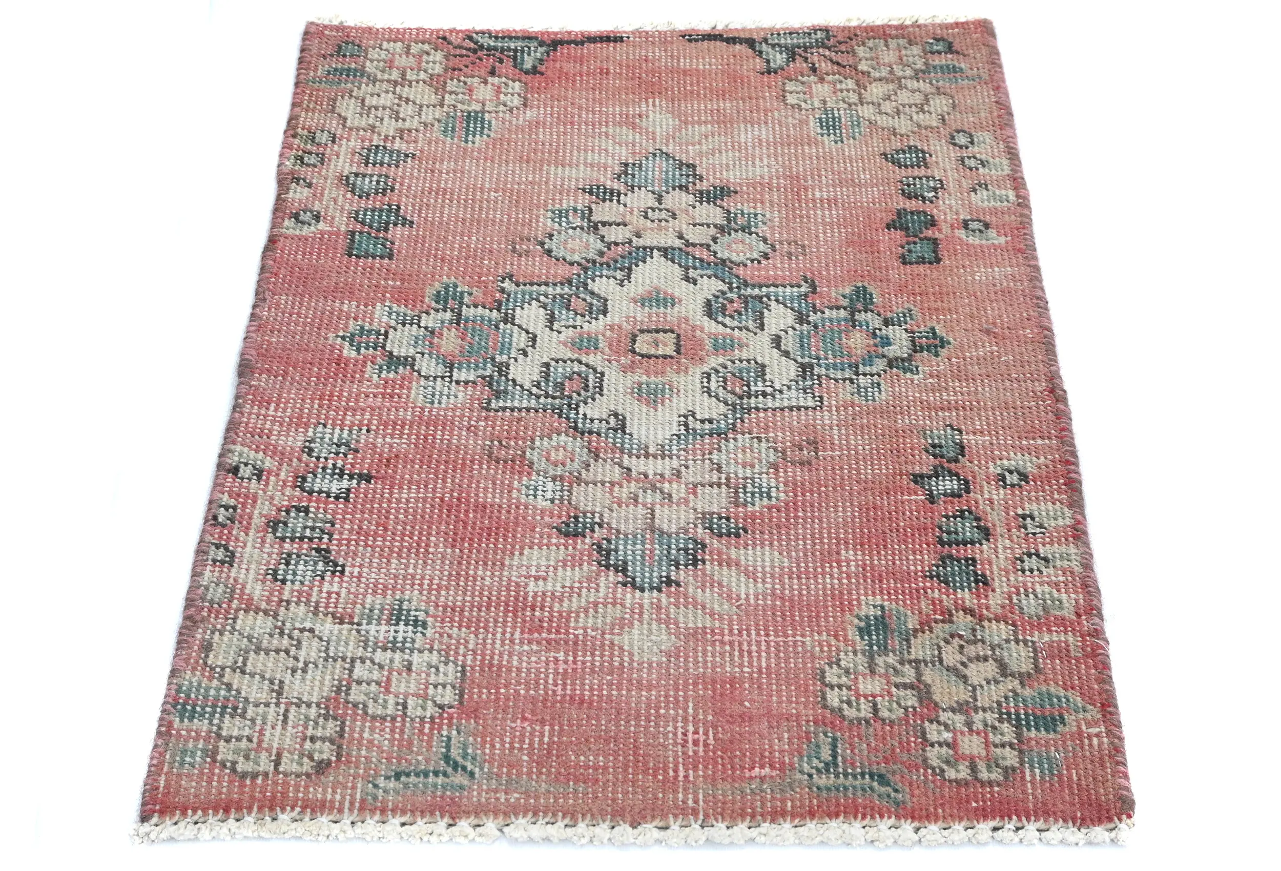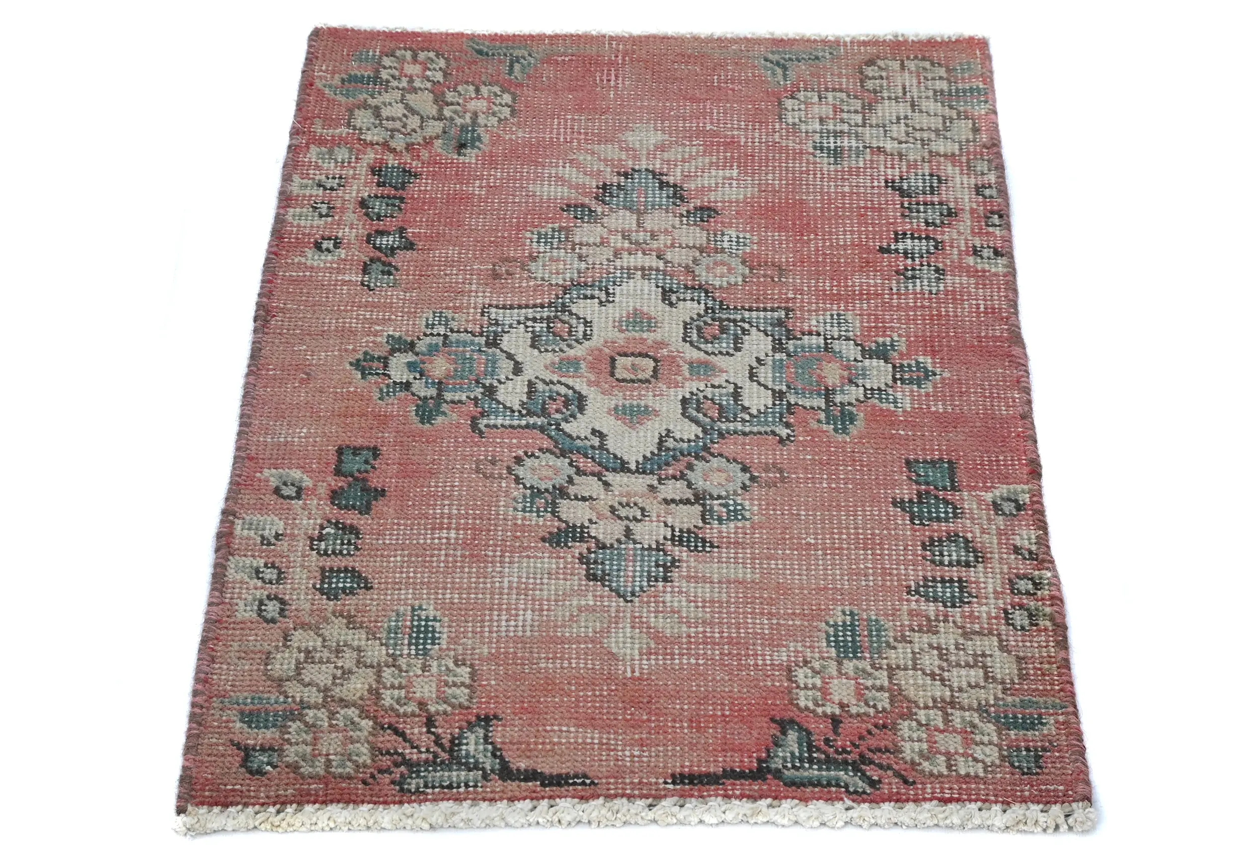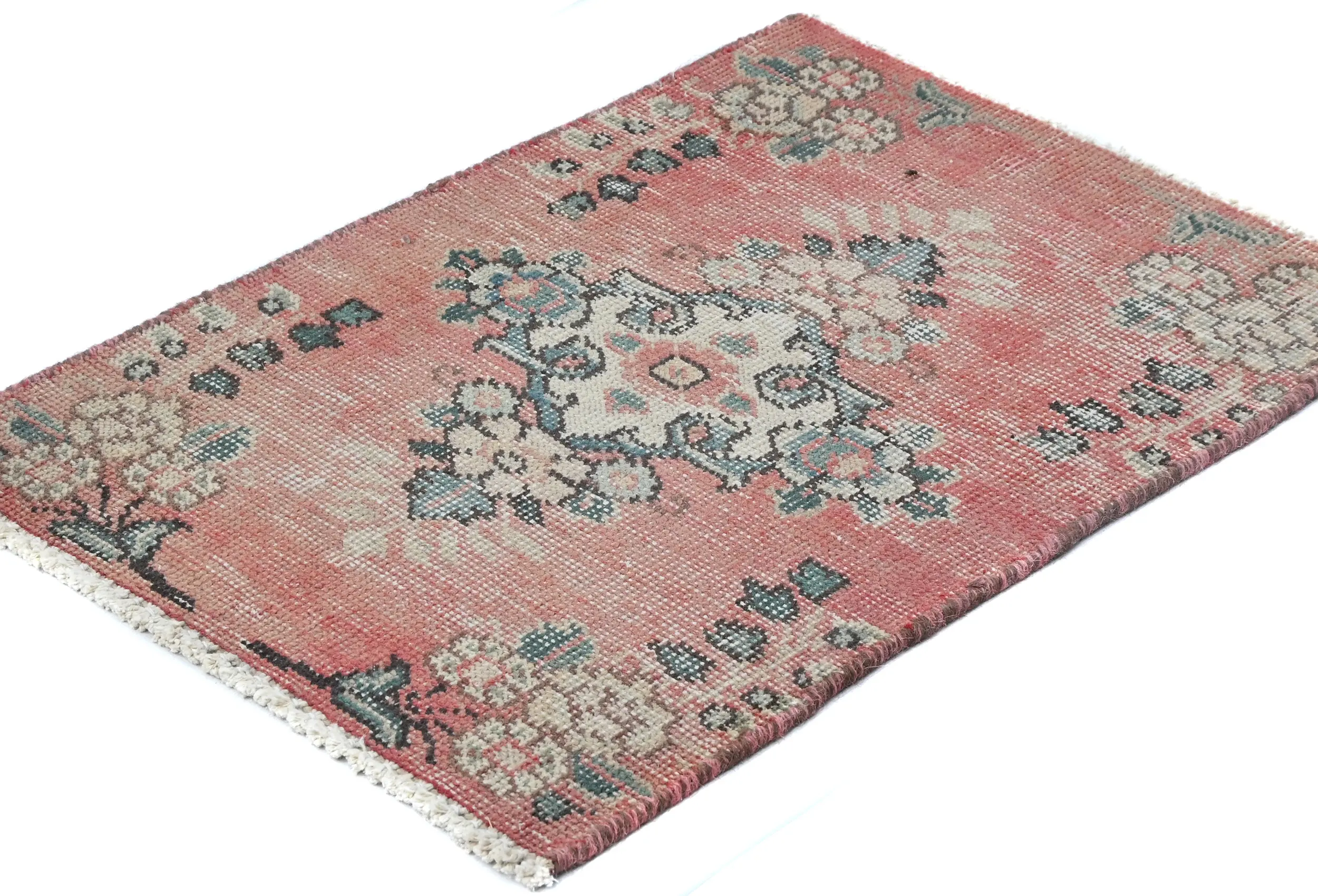 Semi Antique Muted Red Floral 1'6X2'1 Distressed Oriental Rug