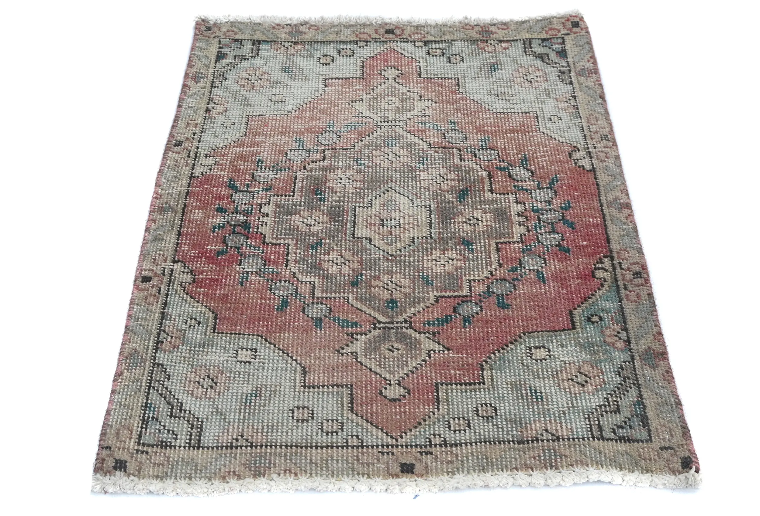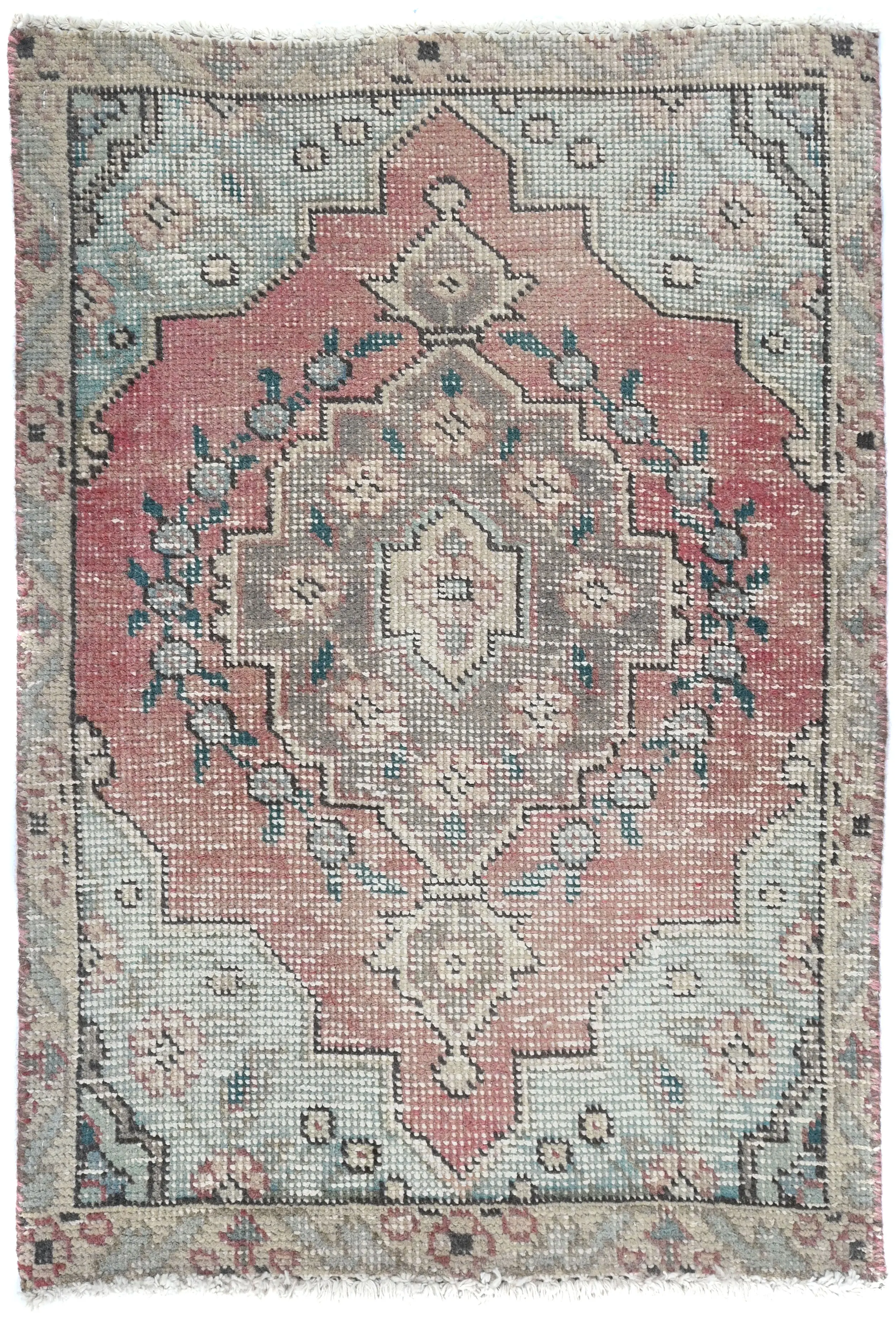 Semi Antique Muted Red Floral 1'8X2'5 Distressed Oriental Rug