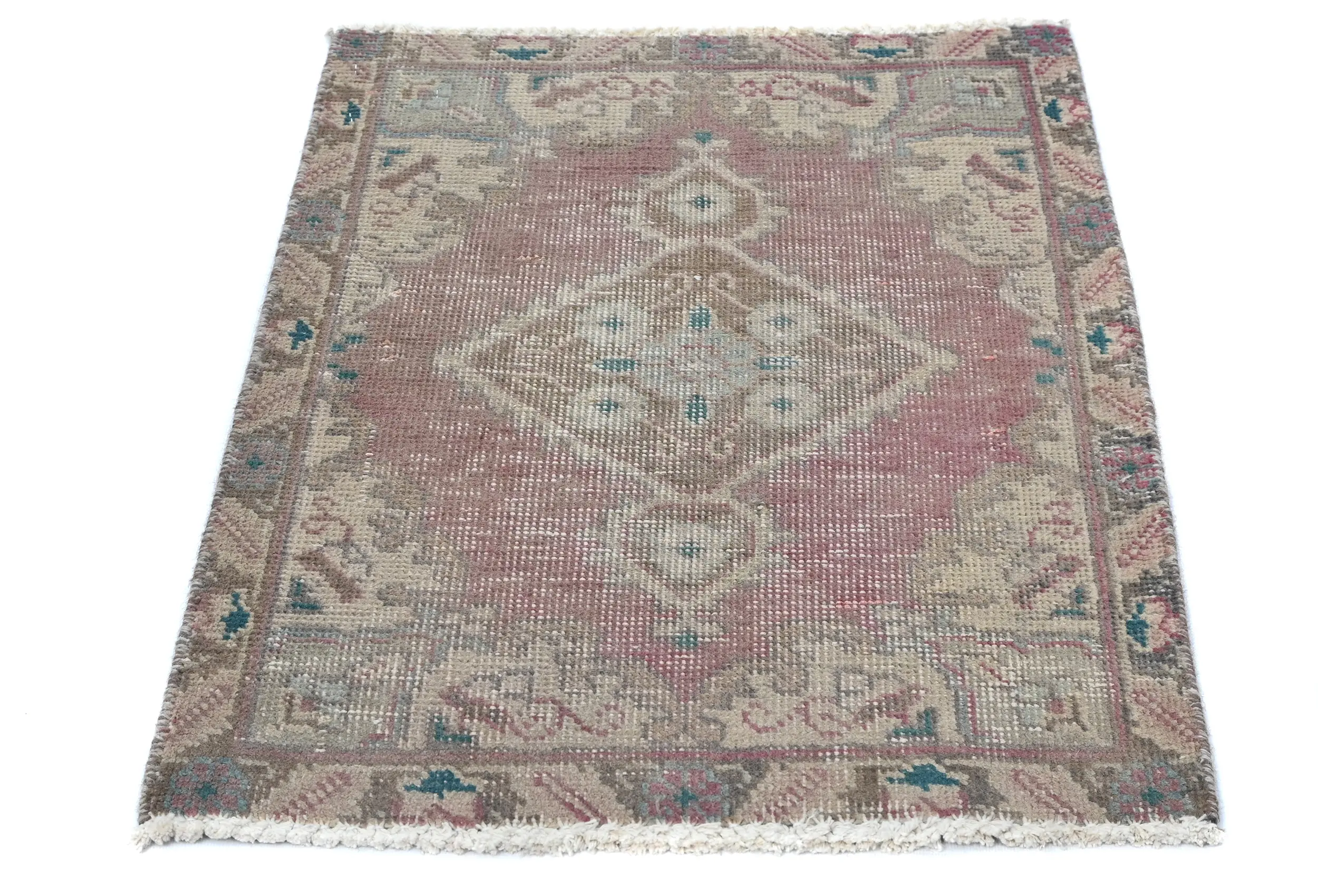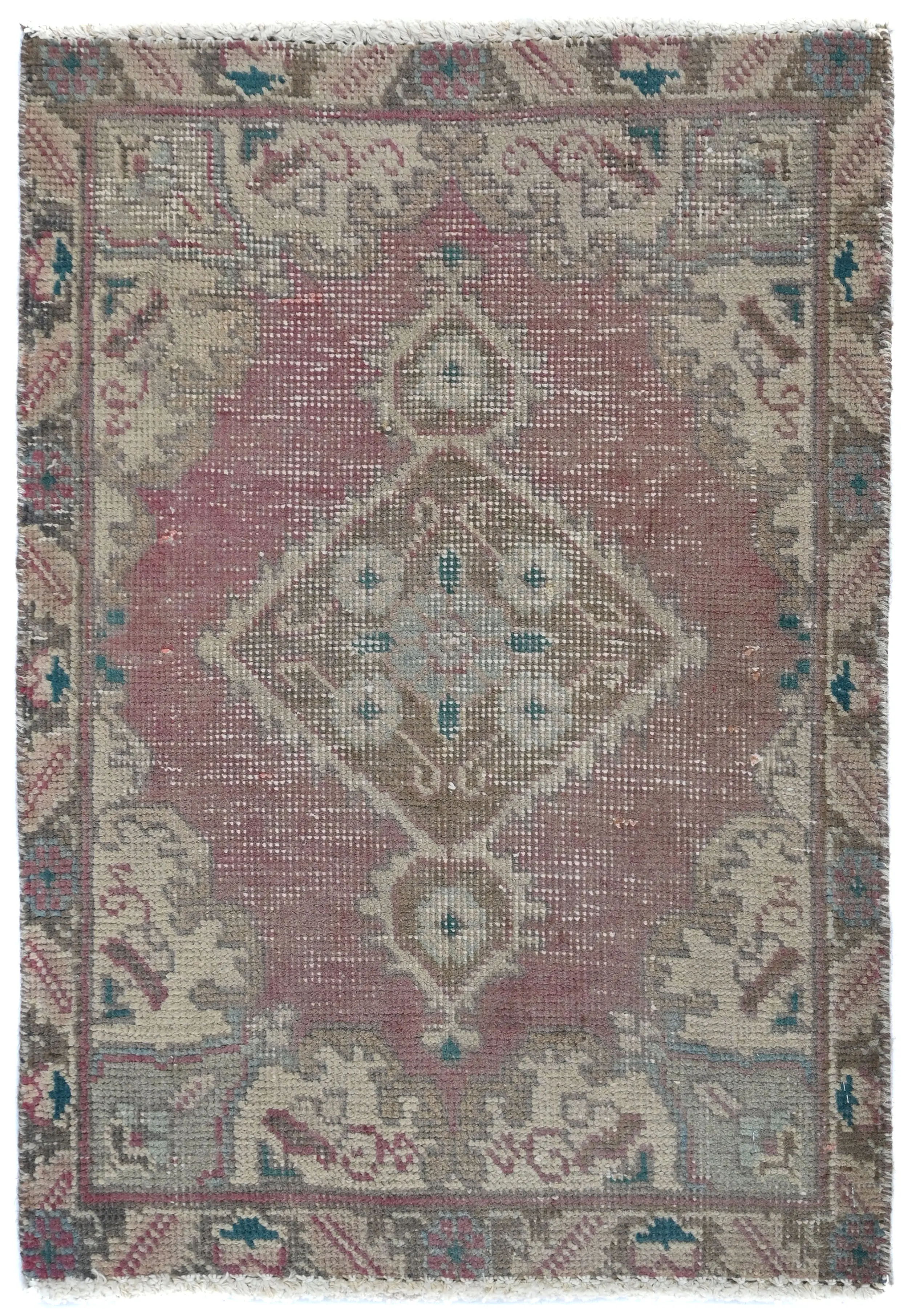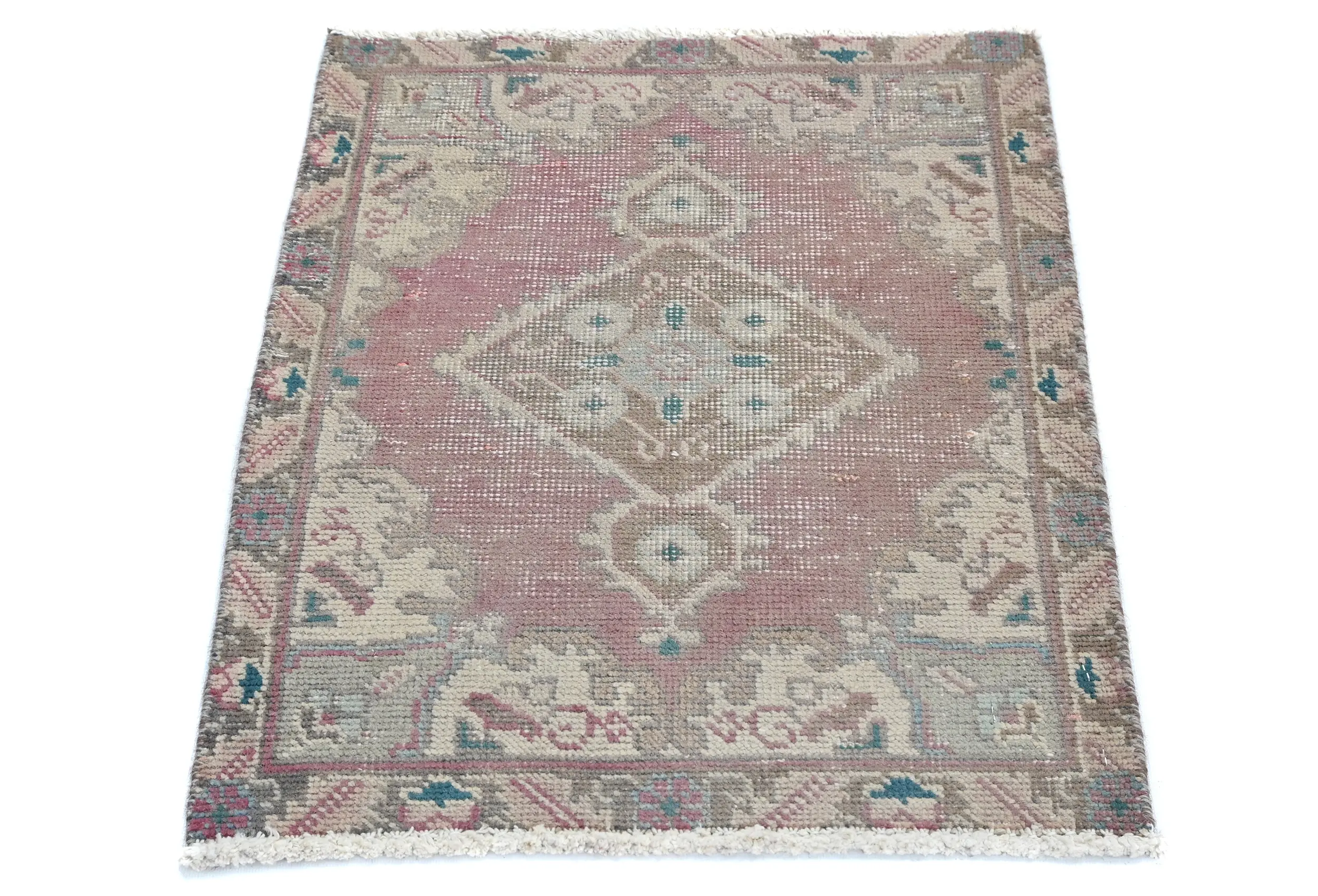 Semi Antique Muted Red Floral 1'7X2'2 Distressed Oriental Rug