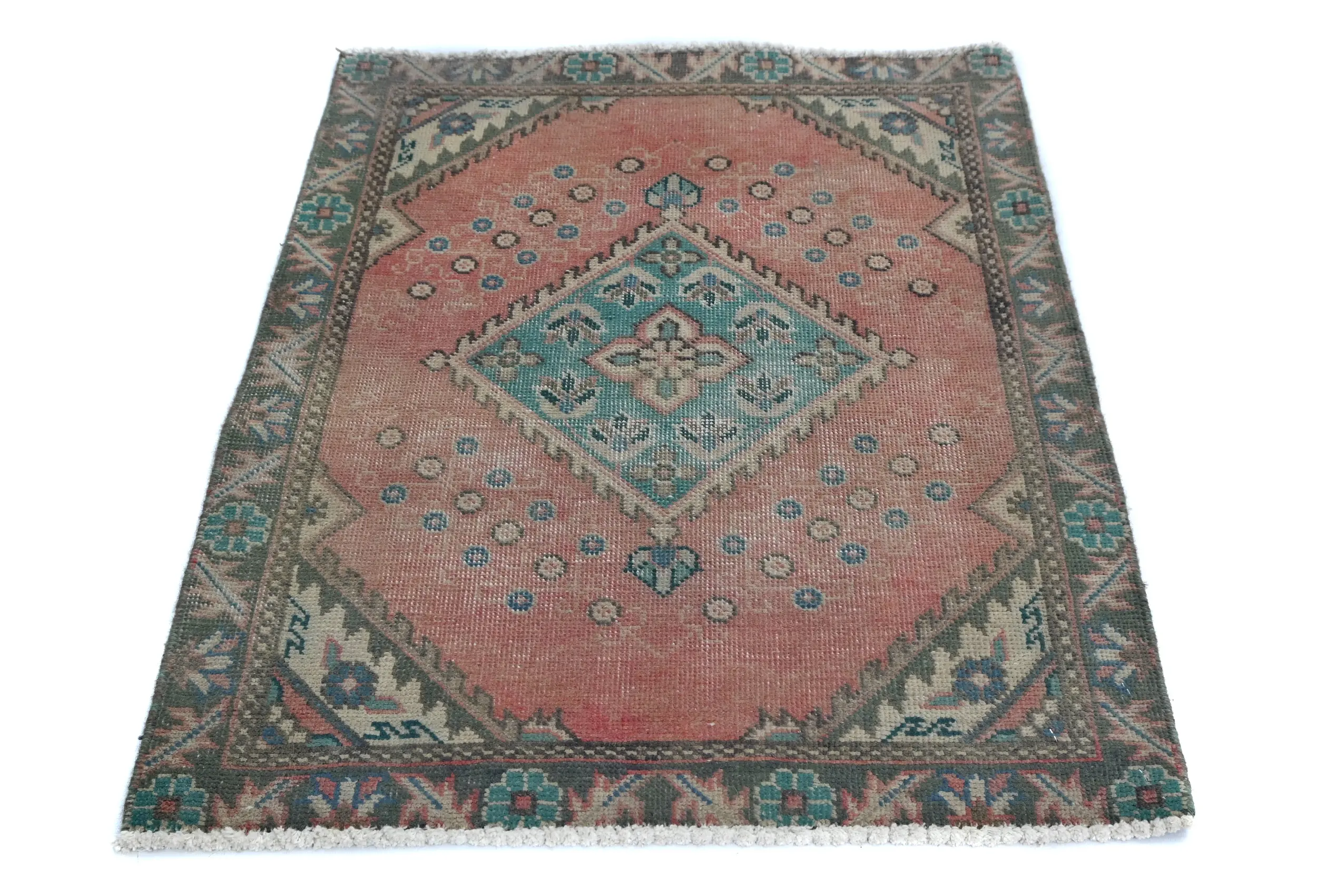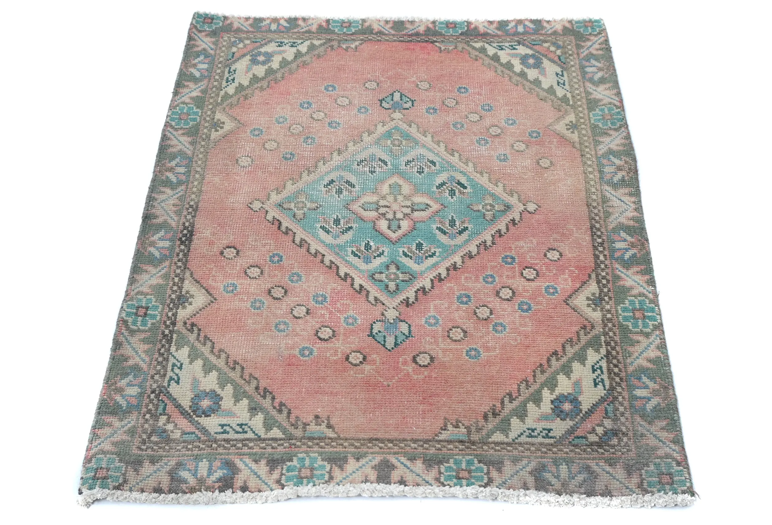 This authentic 2'1X2'11 muted Cream vintage Oriental rug was finely knotted by the hands of weavers influenced by a variety of amazing artistic designs, to recreate the aged look of the exceptional piece with a richness of color and embellished background field. What set this tribal Oriental area rug from the others are the material and dye used (wool pile and cotton foundation), knot count, antique designs, fantastic grades, and its regional historical connection: it has deep roots, from the story of the people who produced it to the meaning of the symbols and colors displayed across its canvas that have been praised for centuries. This home décor carpet will be completely cozy and inviting that never will go out of style! Also, this Oriental rug would be among your most valuable treasures, it is a great investment that increase in value over time, and it will last a lifetime because was woven with high-quality, all-natural wool; it won’t rip, tear, or shed. Eco-friendly, opulent yet affordable; this Persian rug will give you an extra pop of character to help define your home environment with luxury and warmth that will capture the eyes and attention of your audience (homeowners, designers, decorators, family and friends). RT-7783