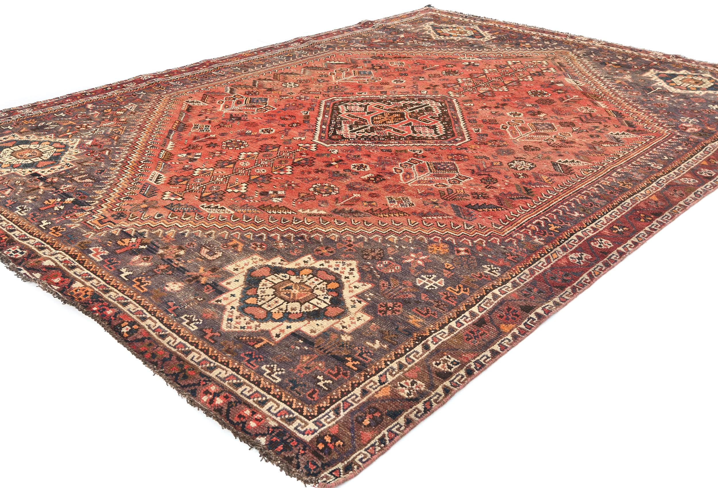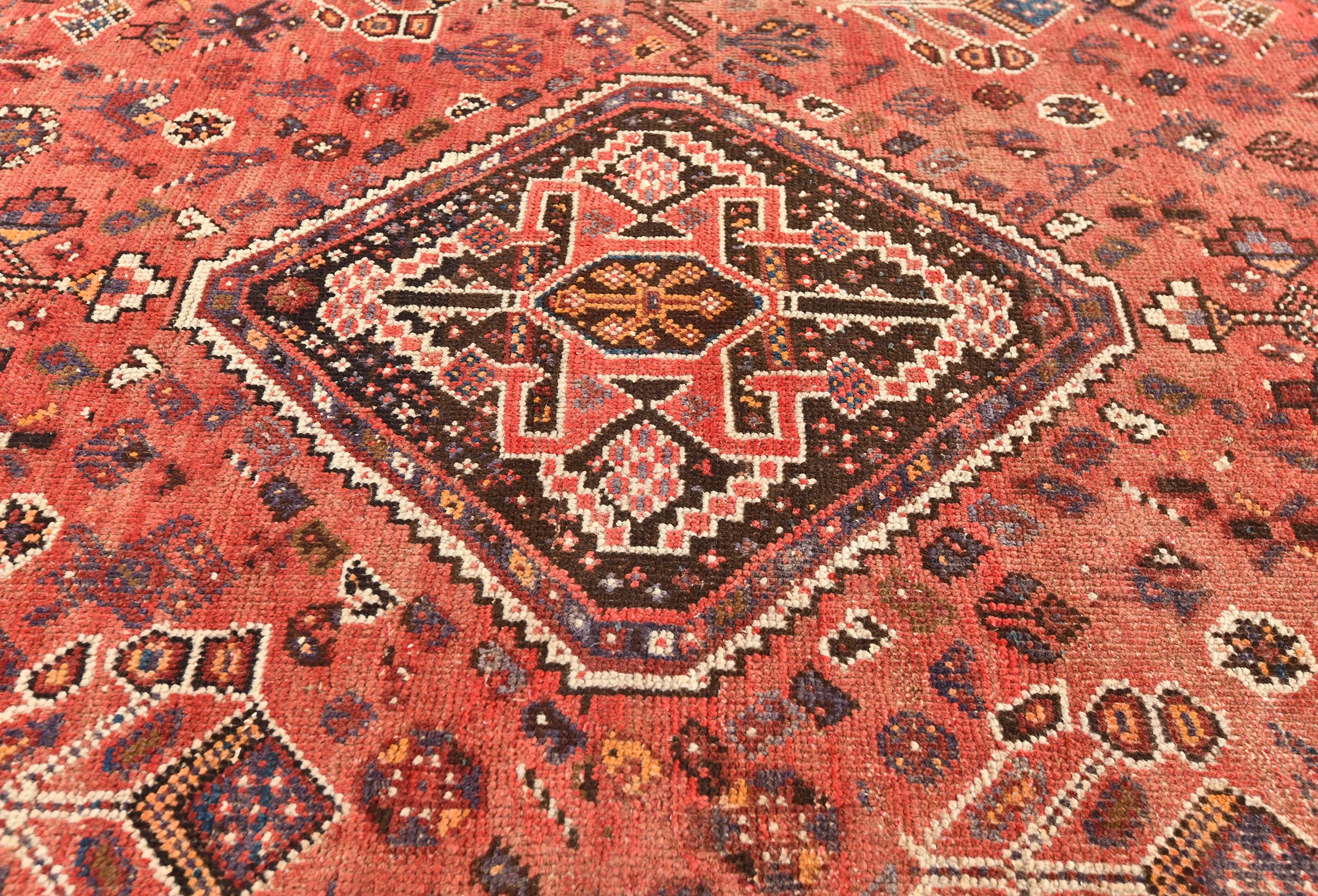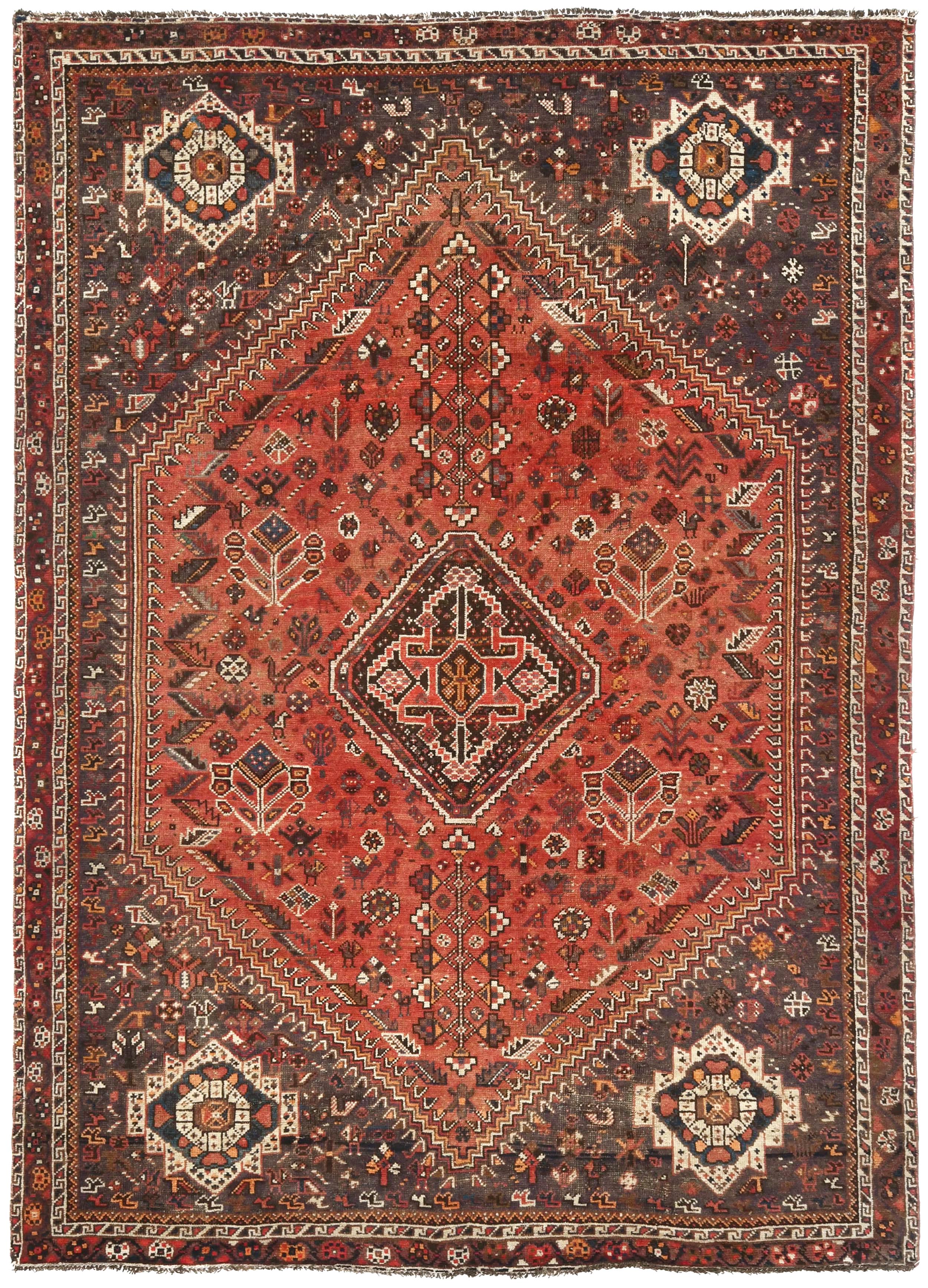 Semi Antique Muted Red Tribal 7x10 Shiraz Persian Rug
