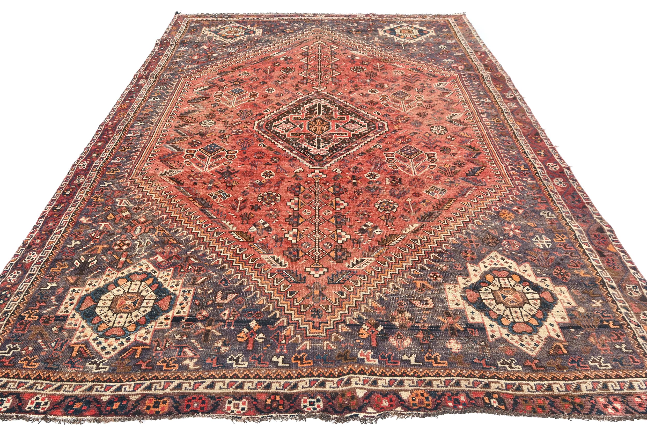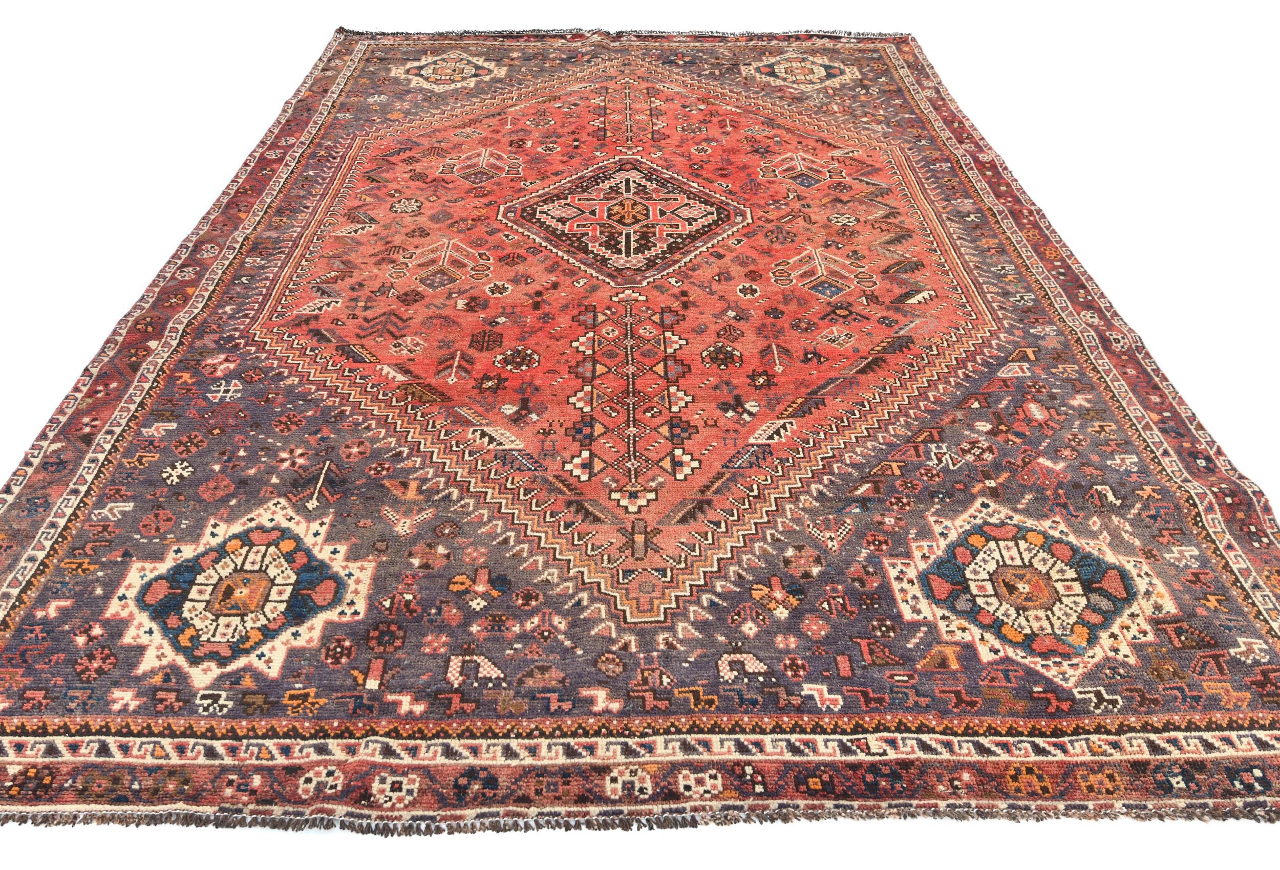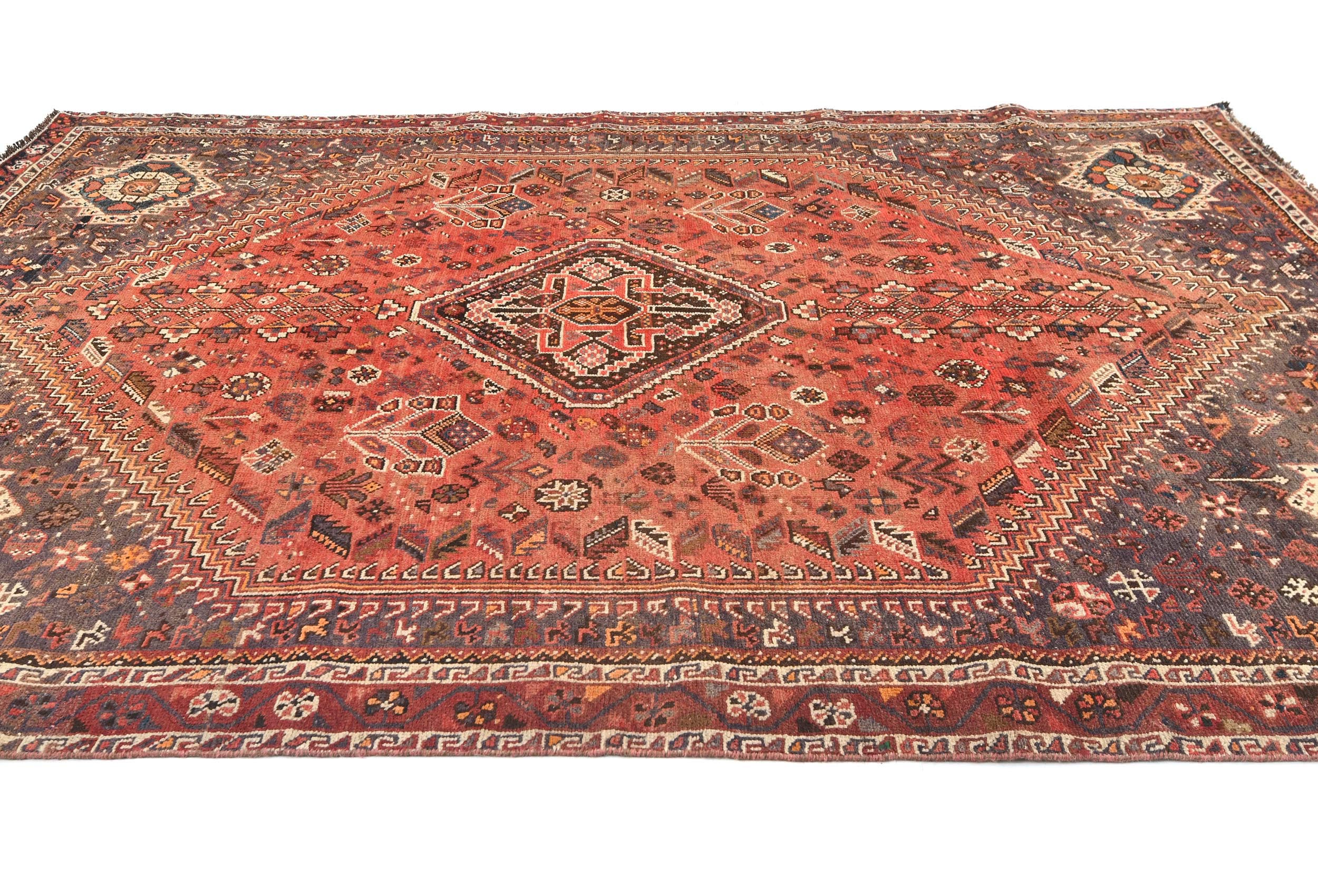 Semi Antique Muted Red Tribal 7x10 Shiraz Persian Rug