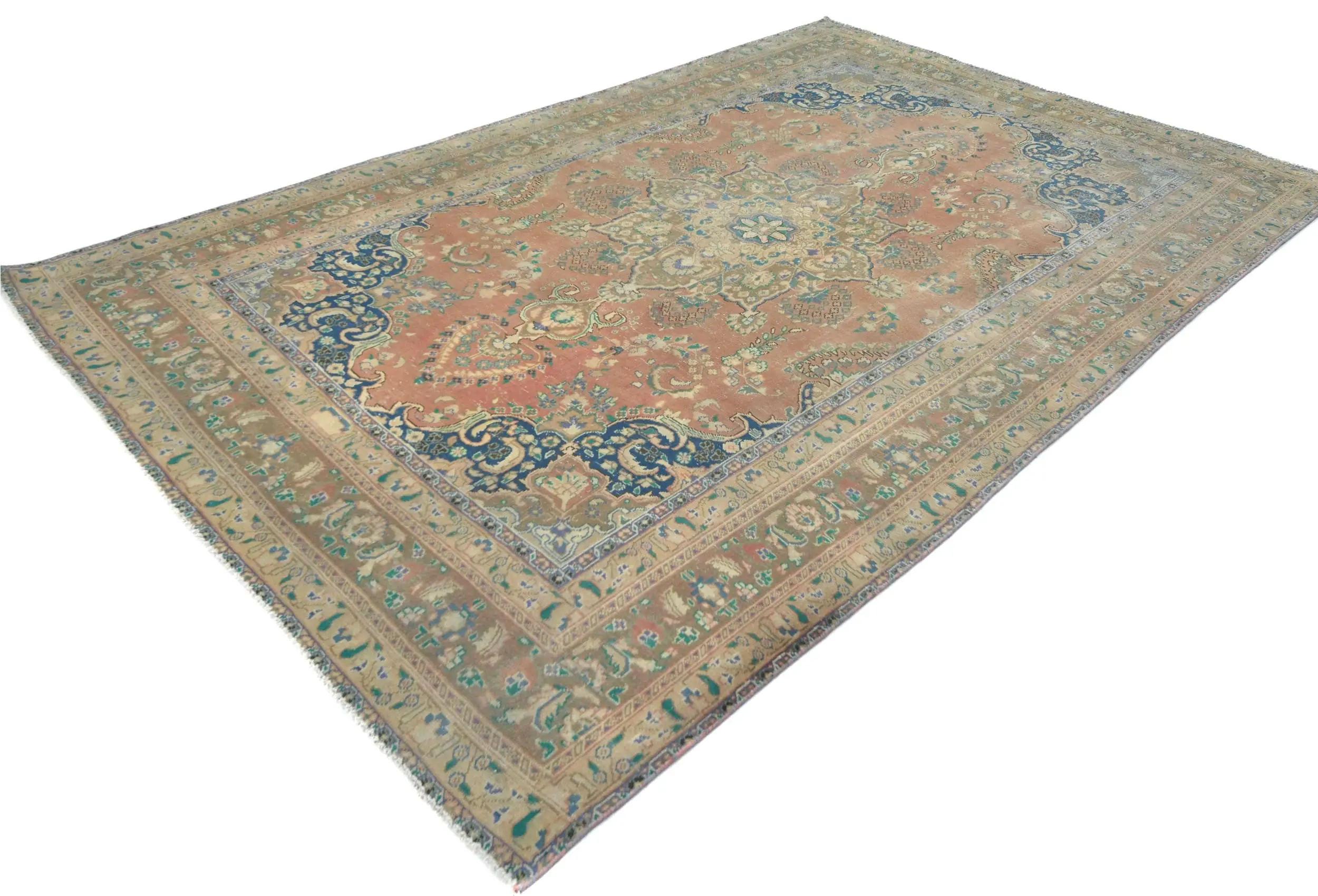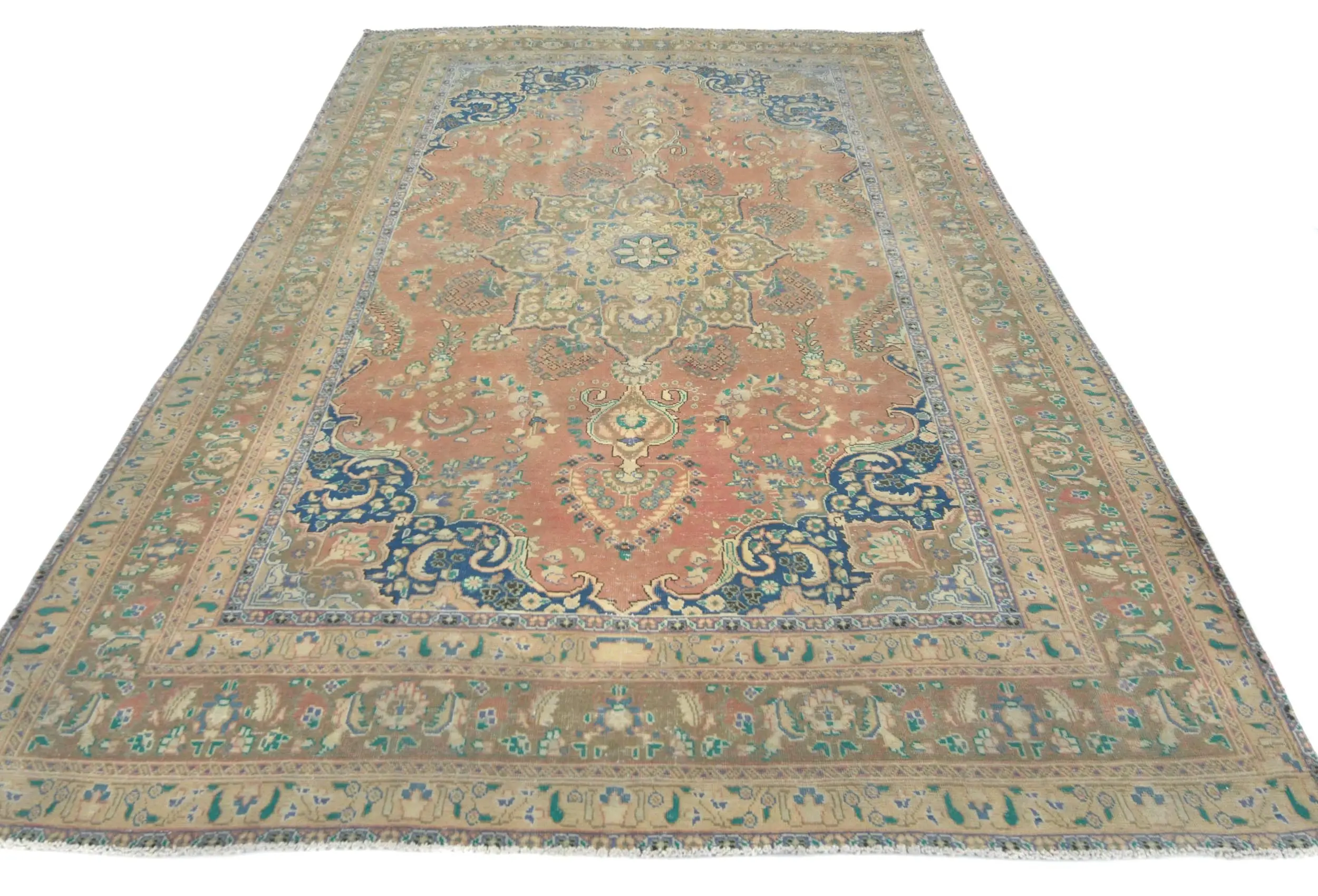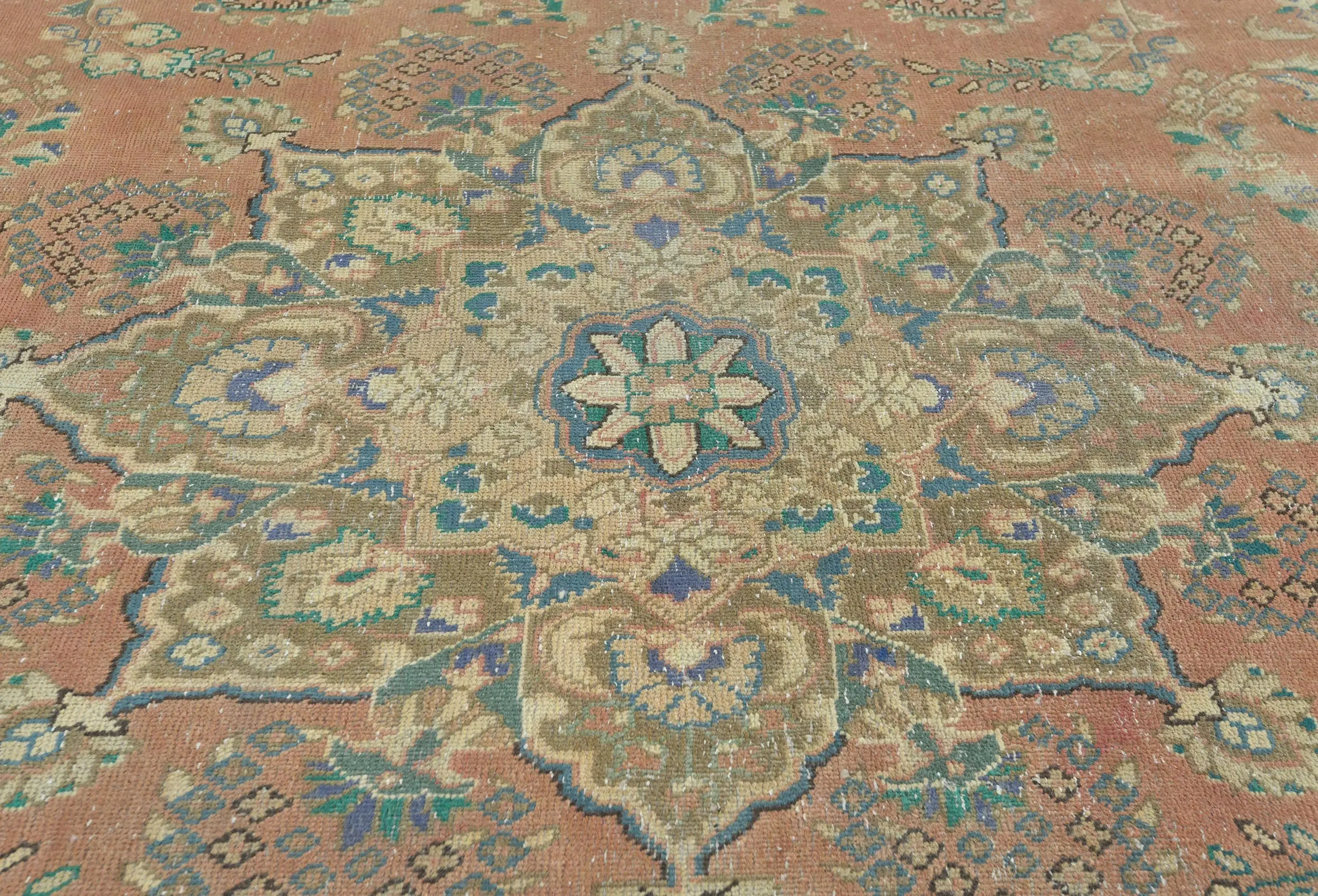 Semi Antique Muted Salmon Floral 6X9 Distressed Vintage Oriental Rug