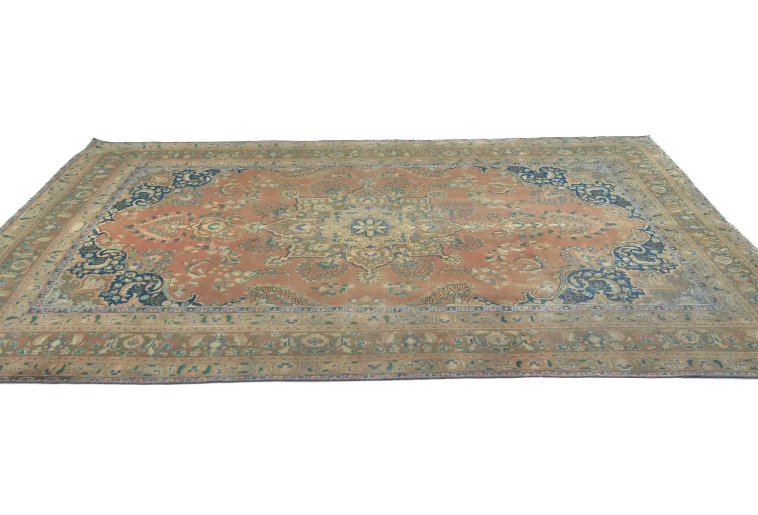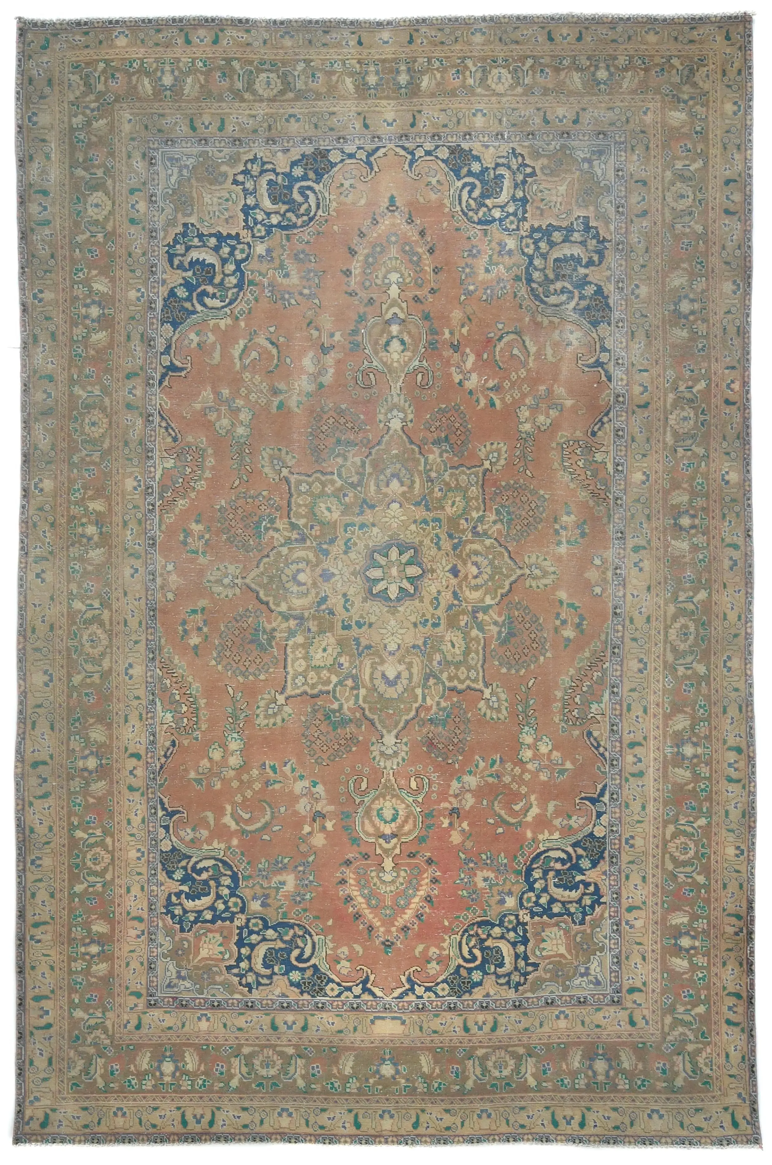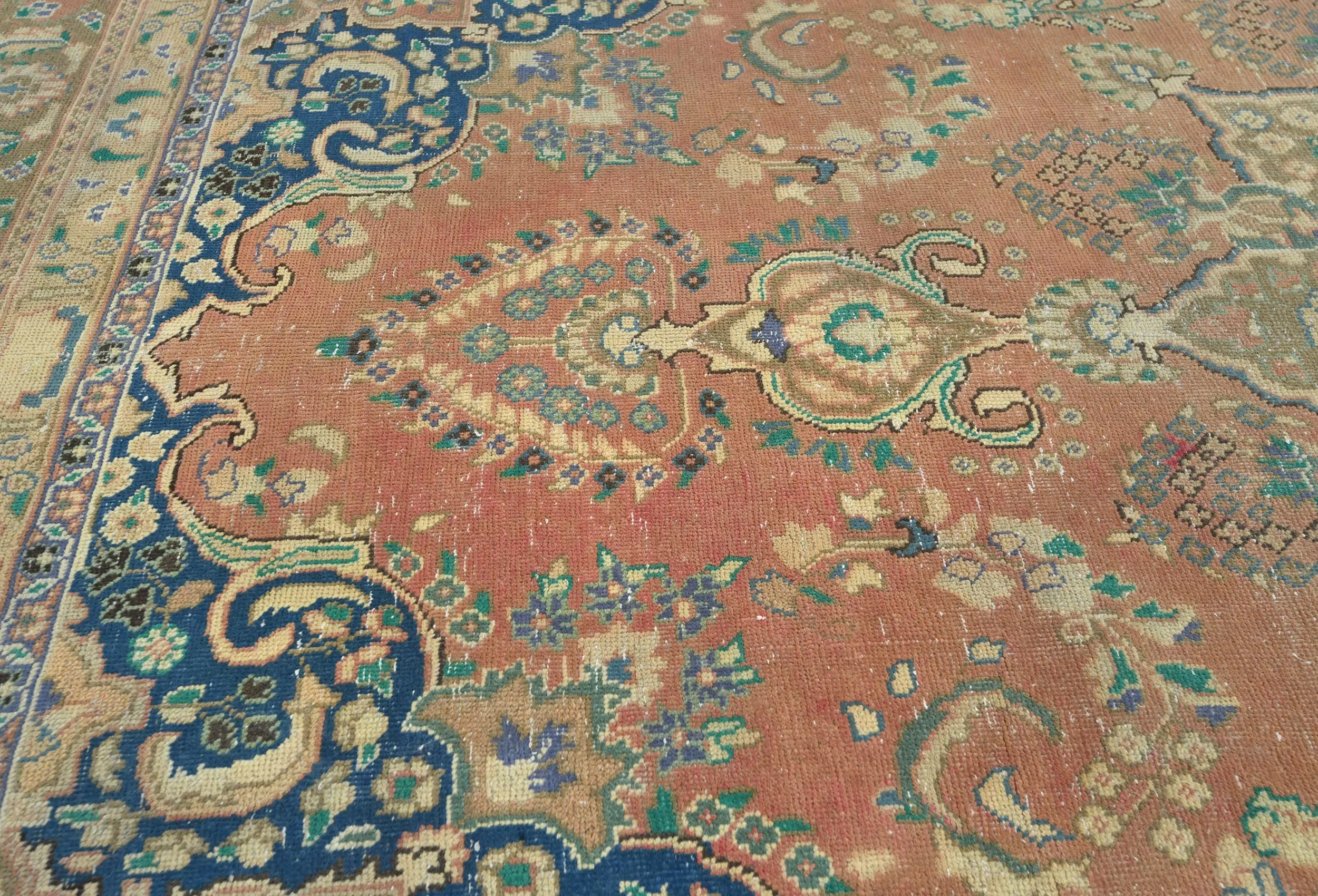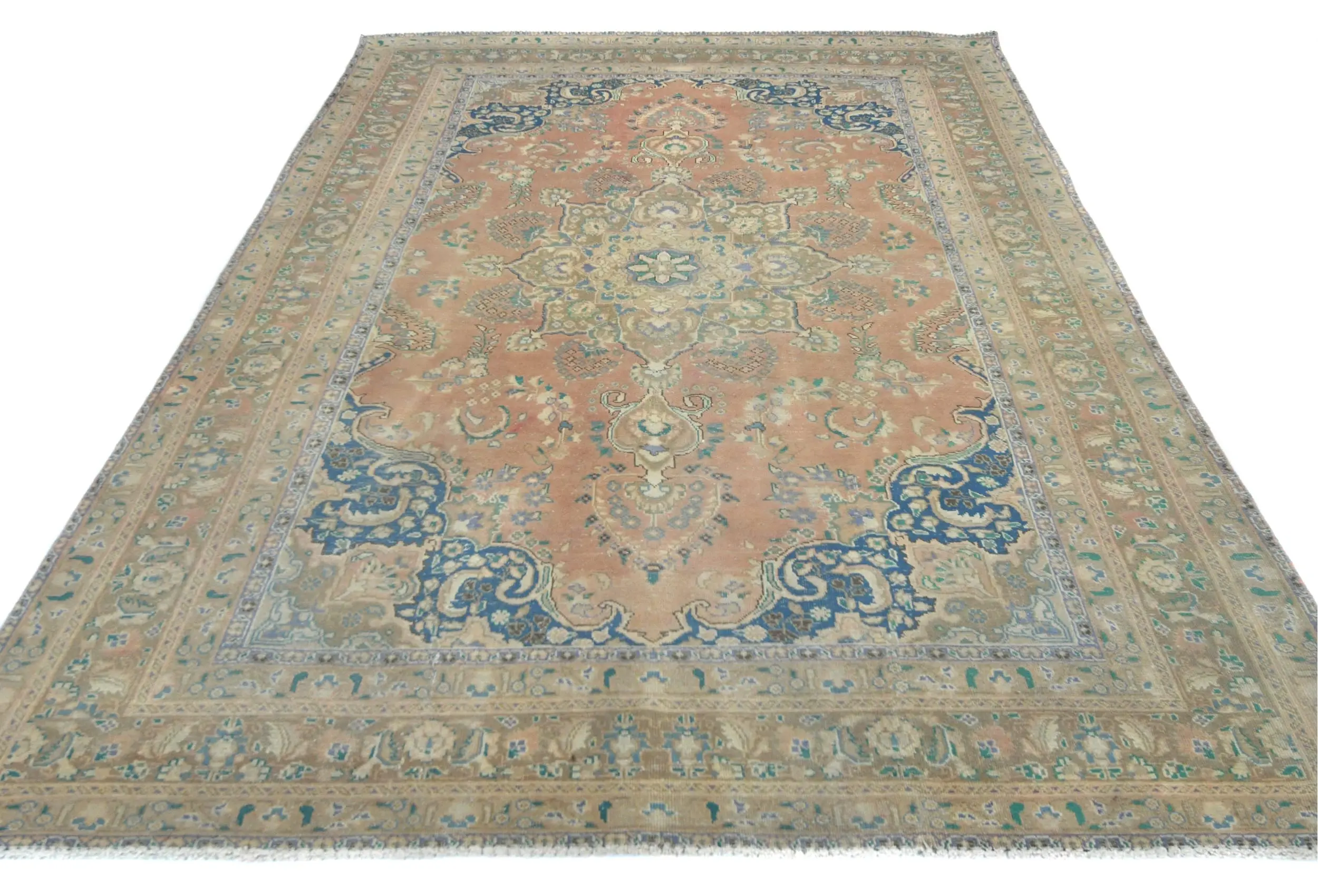 Semi Antique Muted Salmon Floral 6X9 Distressed Vintage Oriental Rug