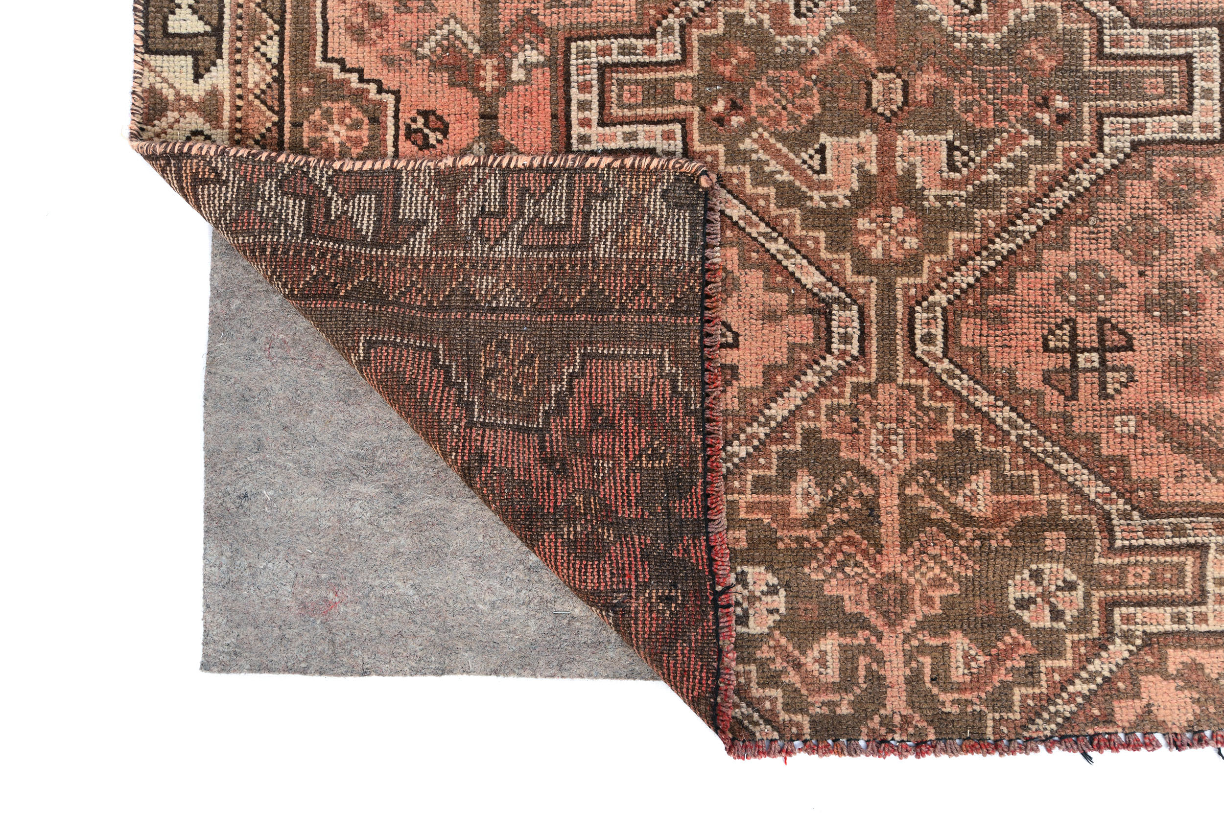 This authentic 3'7X7'5 orange vintage Oriental rug was finely knotted by the hands of weavers influenced by a variety of amazing artistic designs, to recreate the aged look of the exceptional piece with a richness of color and embellished background field. What set this tribal Oriental area rug from the others are the material and dye used (wool pile and cotton foundation), knot count, antique designs, fantastic grades, and its regional historical connection: it has deep roots, from the story of the people who produced it to the meaning of the symbols and colors displayed across its canvas that have been praised for centuries. This home décor carpet will be completely cozy and inviting that never will go out of style! Also, this Oriental rug would be among your most valuable treasures, it is a great investment that increase in value over time, and it will last a lifetime because was woven with high-quality, all-natural wool; it won’t rip, tear, or shed. Eco-friendly, opulent yet affordable; this Persian rug will give you an extra pop of character to help define your home environment with luxury and warmth that will capture the eyes and attention of your audience (homeowners, designers, decorators, family and friends).