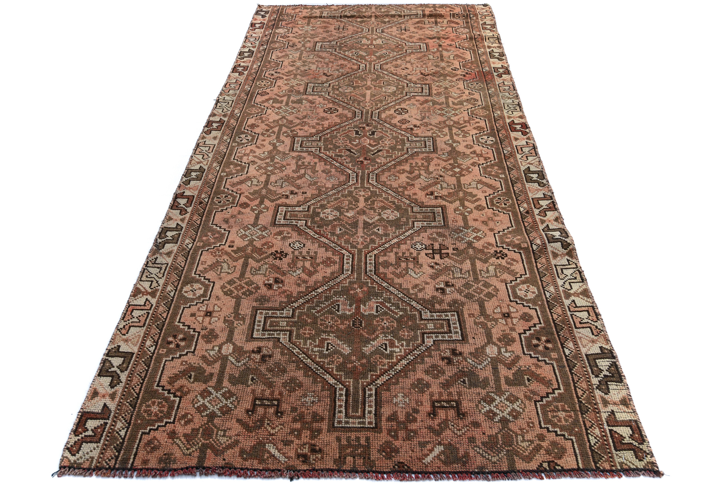 Handmade antique 3'7X7'5 orange Oriental rug made with vegetable dyes (fine wool pile and cotton foundation), superior knot count, and alluring ancient designs. This Oriental rug never will go out of style and would be among your most valuable treasures.