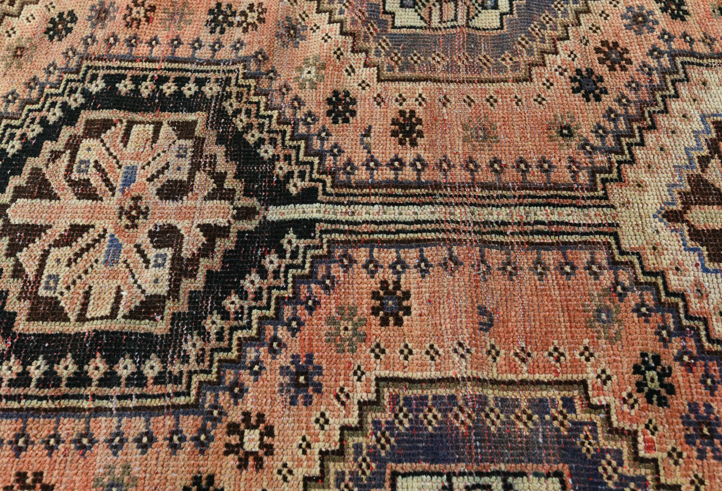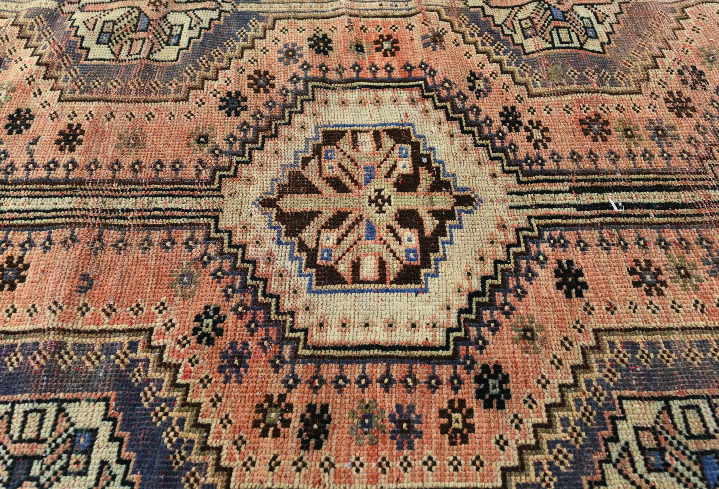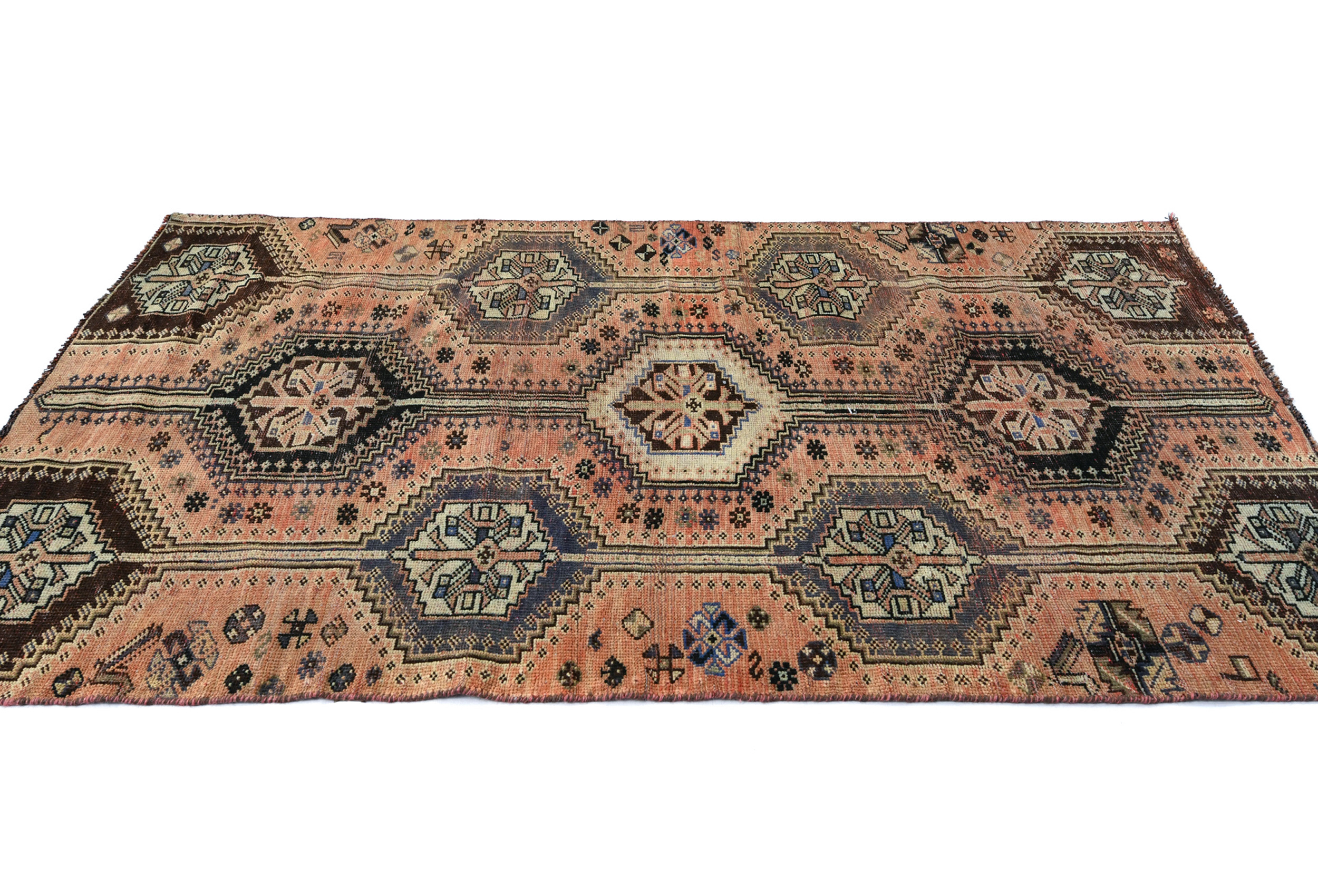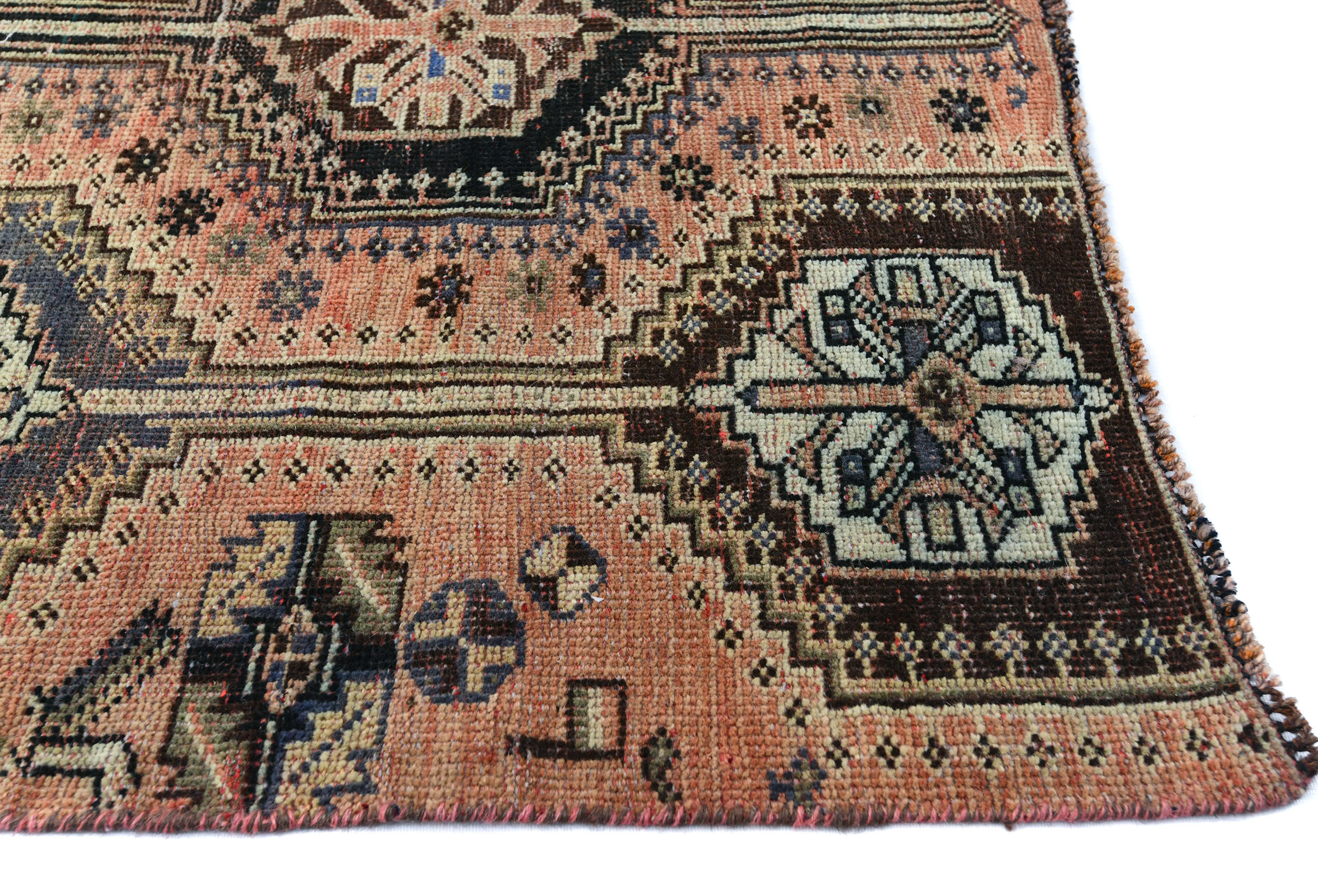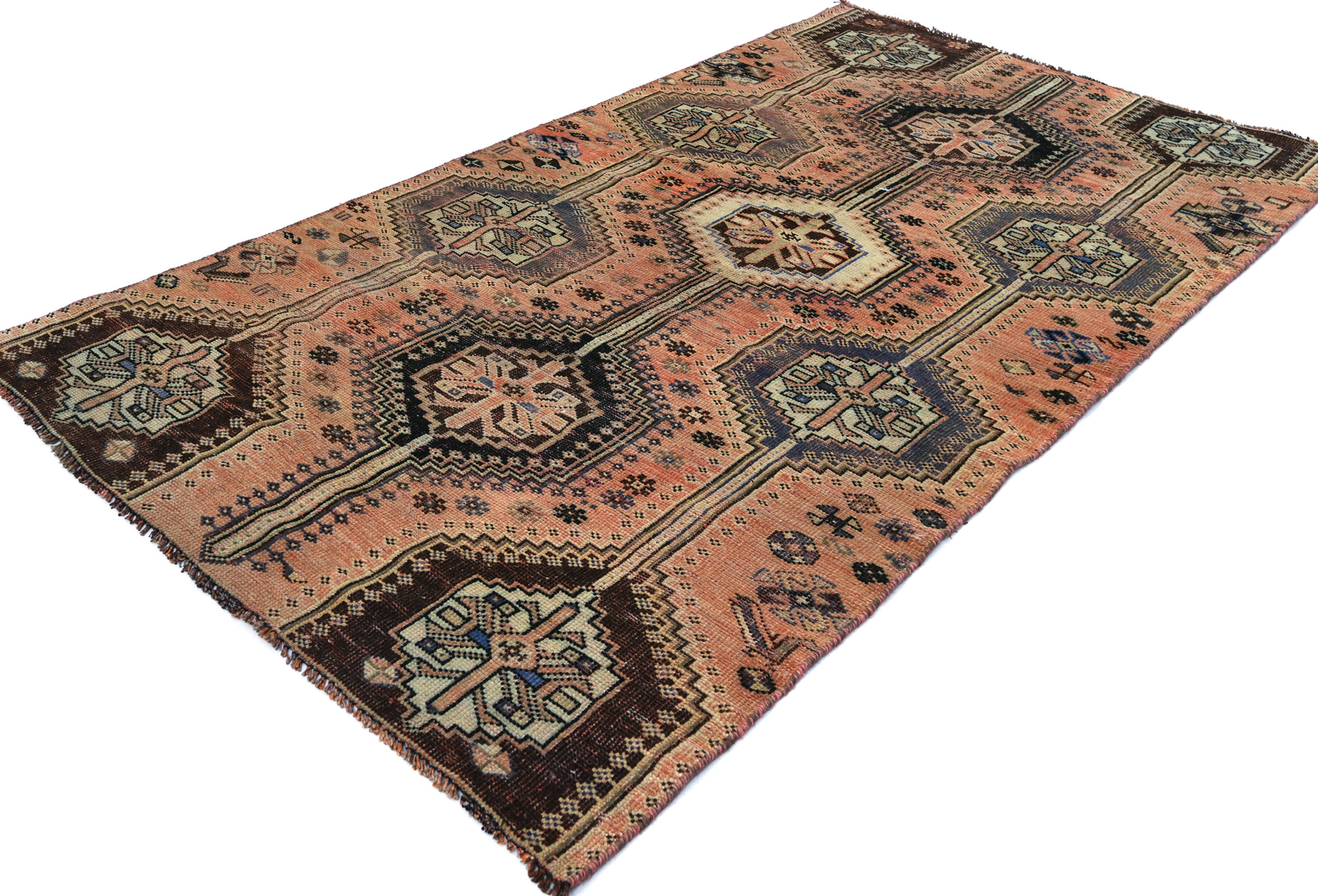 This authentic 4X7 orange vintage Oriental rug was finely knotted by the hands of weavers influenced by a variety of amazing artistic designs, to recreate the aged look of the exceptional piece with a richness of color and embellished background field. What set this tribal Oriental area rug from the others are the material and dye used (wool pile and cotton foundation), knot count, antique designs, fantastic grades, and its regional historical connection: it has deep roots, from the story of the people who produced it to the meaning of the symbols and colors displayed across its canvas that have been praised for centuries. This home décor carpet will be completely cozy and inviting that never will go out of style! Also, this Oriental rug would be among your most valuable treasures, it is a great investment that increase in value over time, and it will last a lifetime because was woven with high-quality, all-natural wool; it won’t rip, tear, or shed. Eco-friendly, opulent yet affordable; this Persian rug will give you an extra pop of character to help define your home environment with luxury and warmth that will capture the eyes and attention of your audience (homeowners, designers, decorators, family and friends). RT-6100