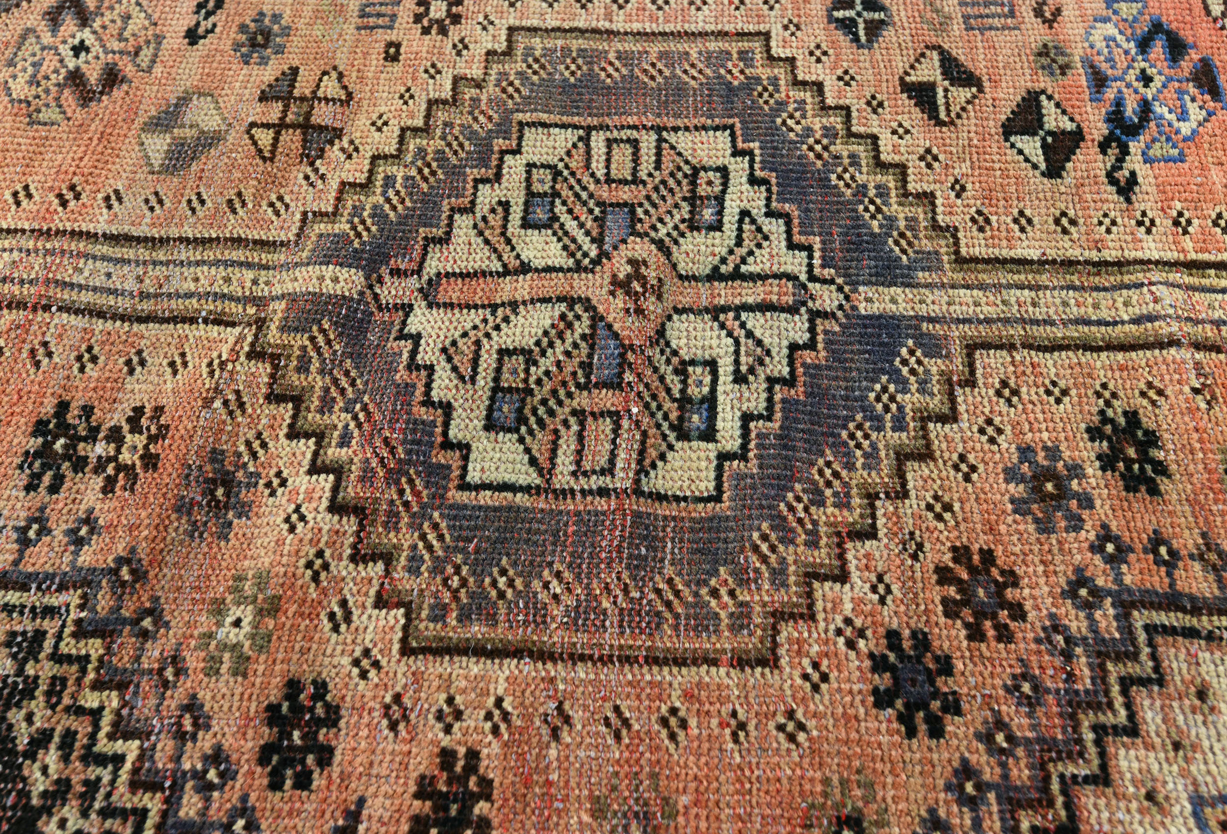 Handmade vintage 4X7 orange Oriental rug made with vegetable dyes (fine wool pile and cotton foundation), superior knot count, and alluring ancient designs. This Oriental rug never will go out of style and would be among your most valuable treasures.