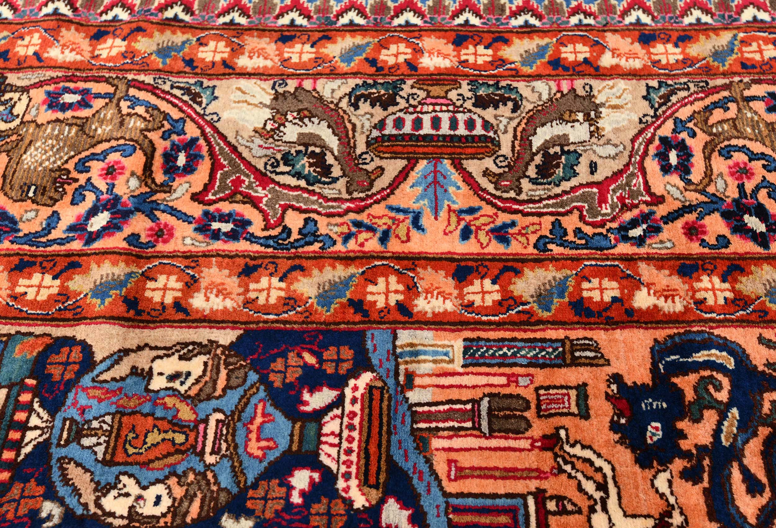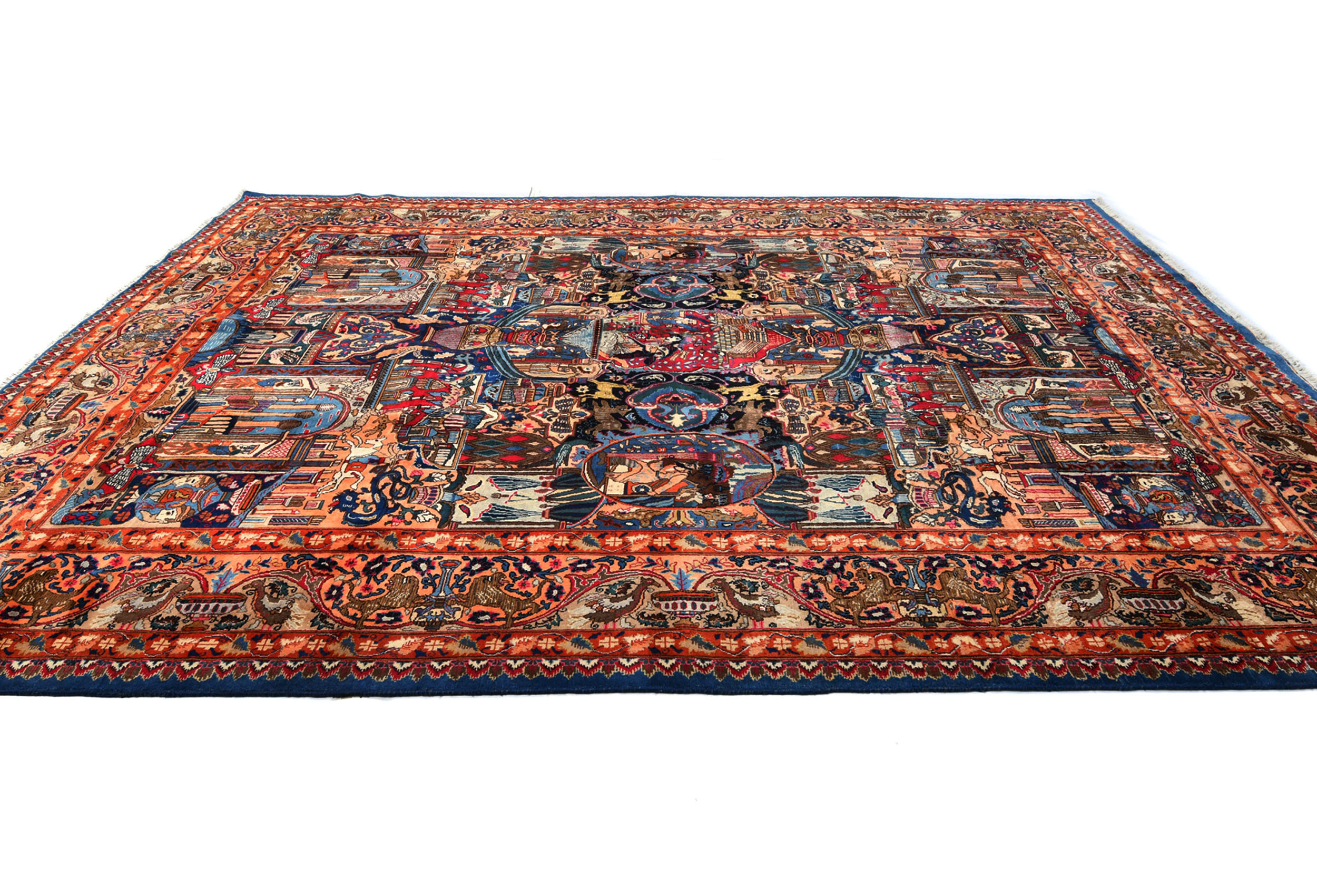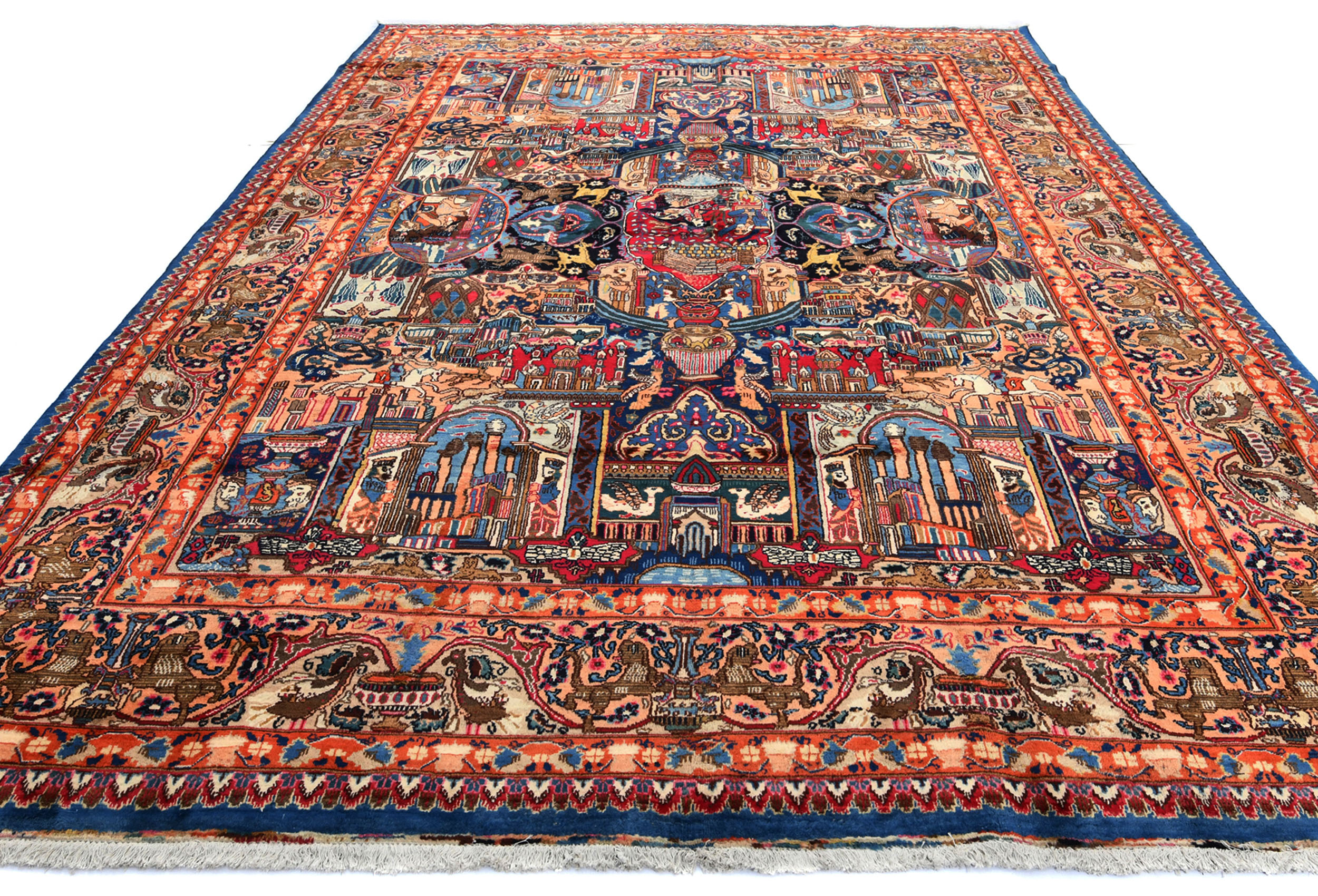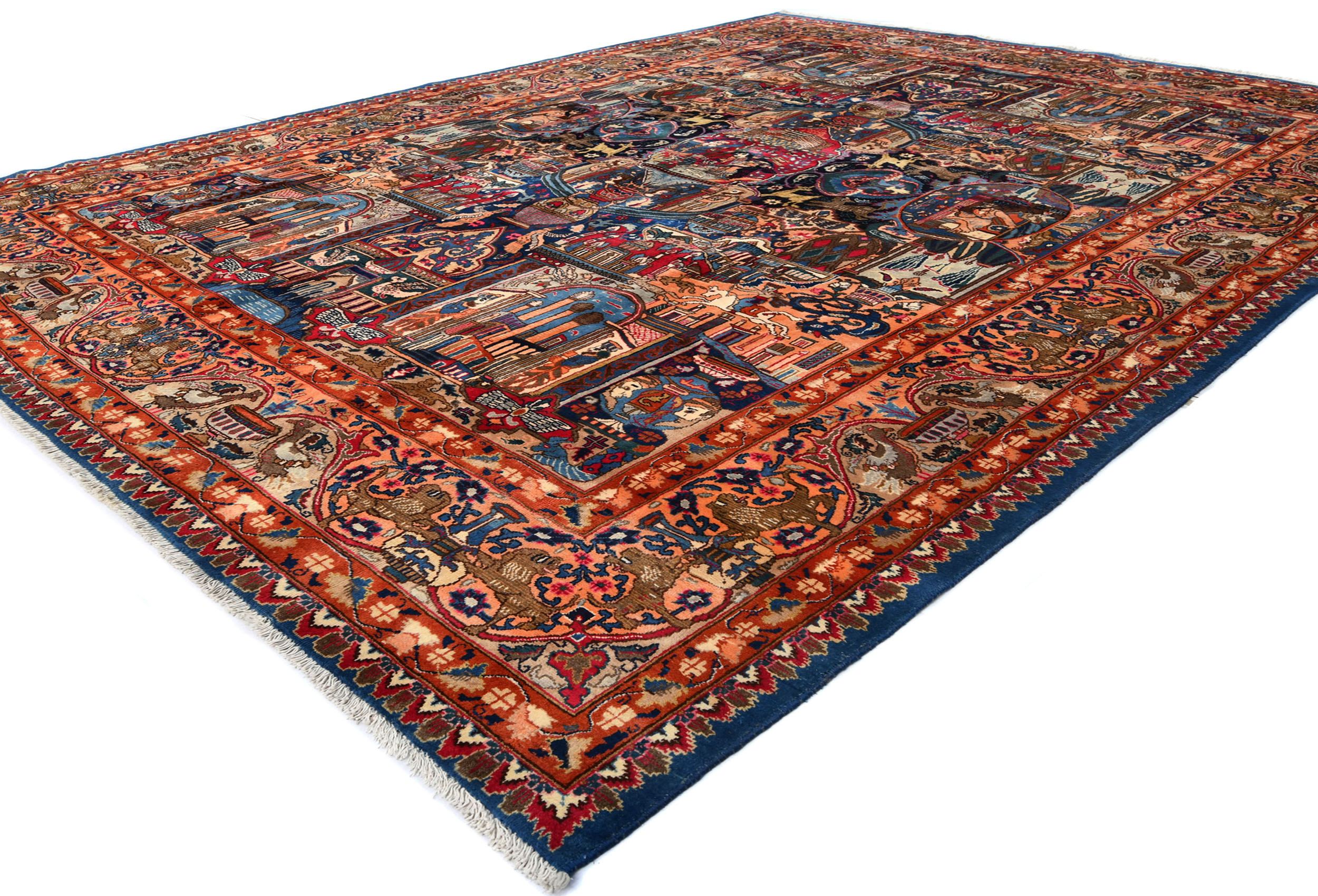 Semi Antique Navy Blue Pictorial 10X13 Kashmar Persian Rug