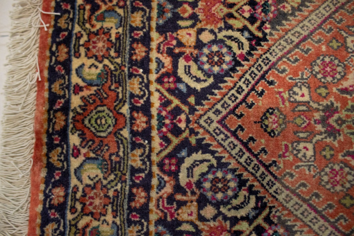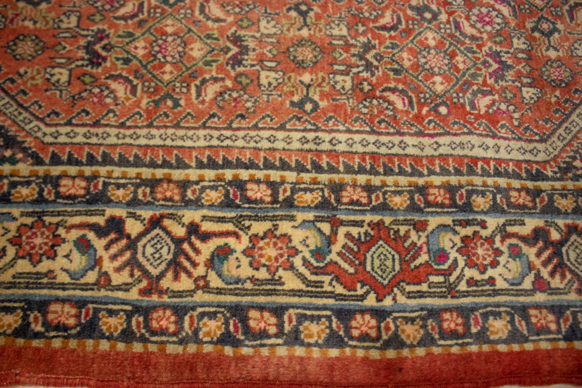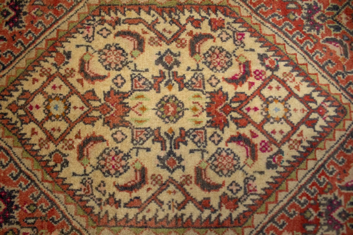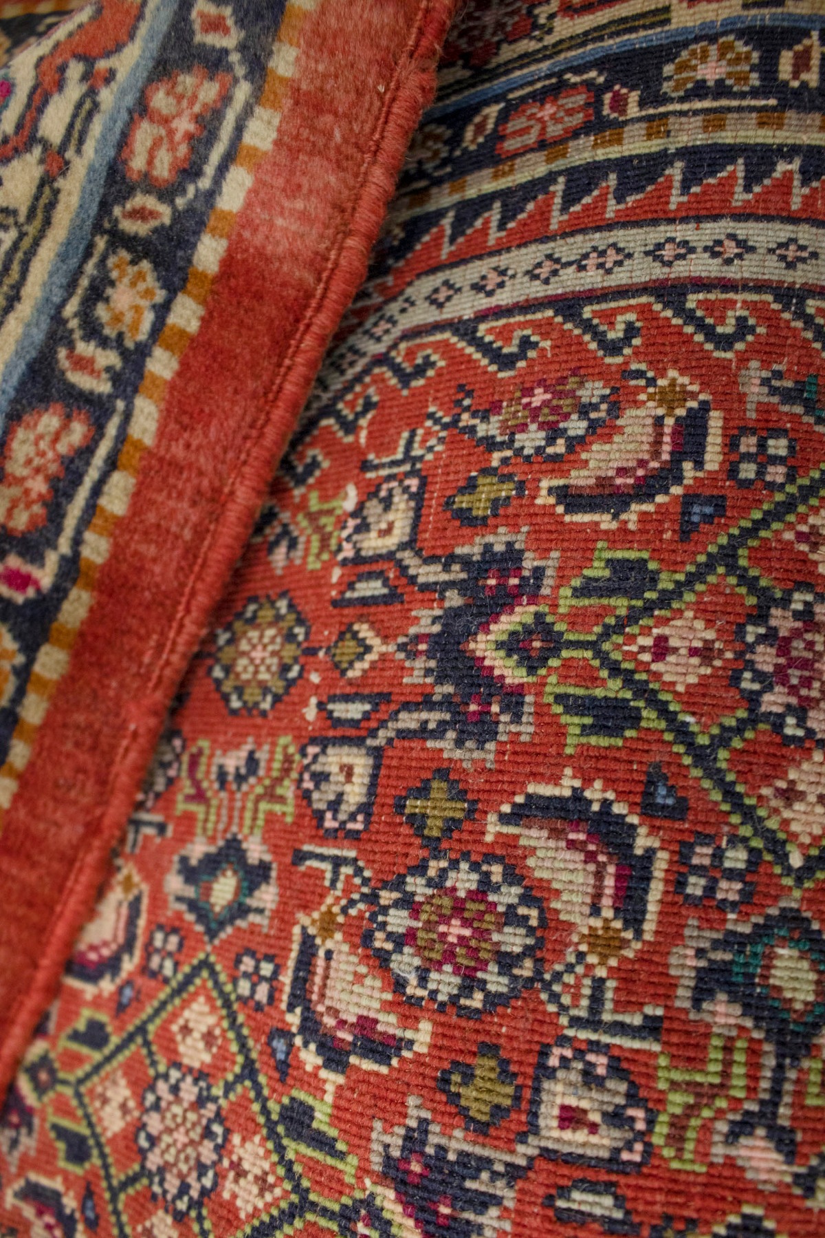 Hand Knotted semi antique 3X5 orange-red Persian rug made with natural dyes (fine wool pile and cotton foundation), superior knot count, and appealing ancient designs. This Oriental rug never will go out of style and would be among your most valuable treasures.