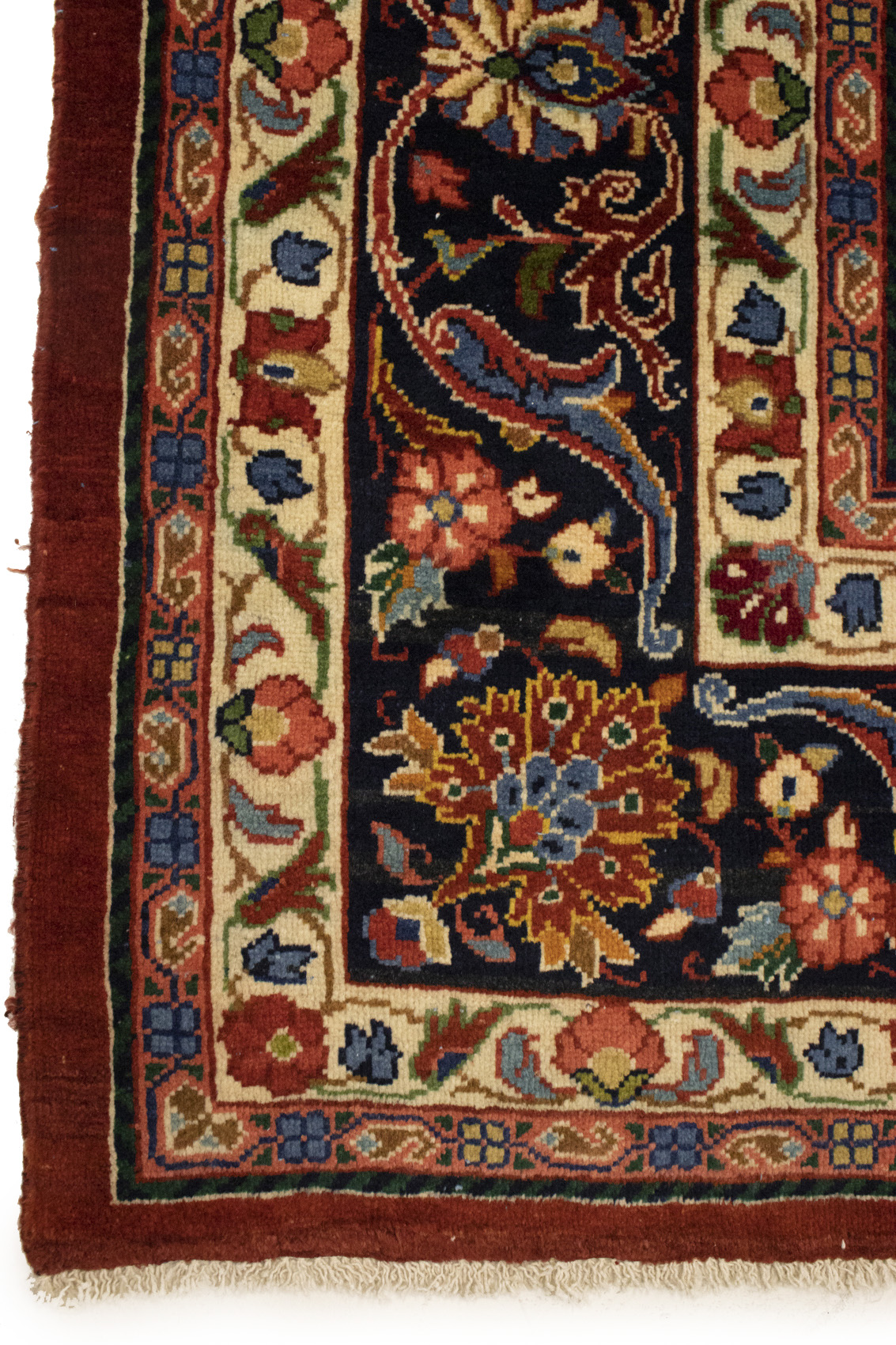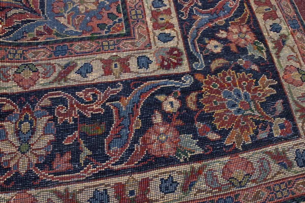 Hand Knotted semi antique 10X14 orange-red Persian rug made with vegetable dyes (fine wool pile and cotton foundation), exceptional knot count, and appealing ancient designs. This Oriental rug never will go out of style and would be among your most valuable treasures.