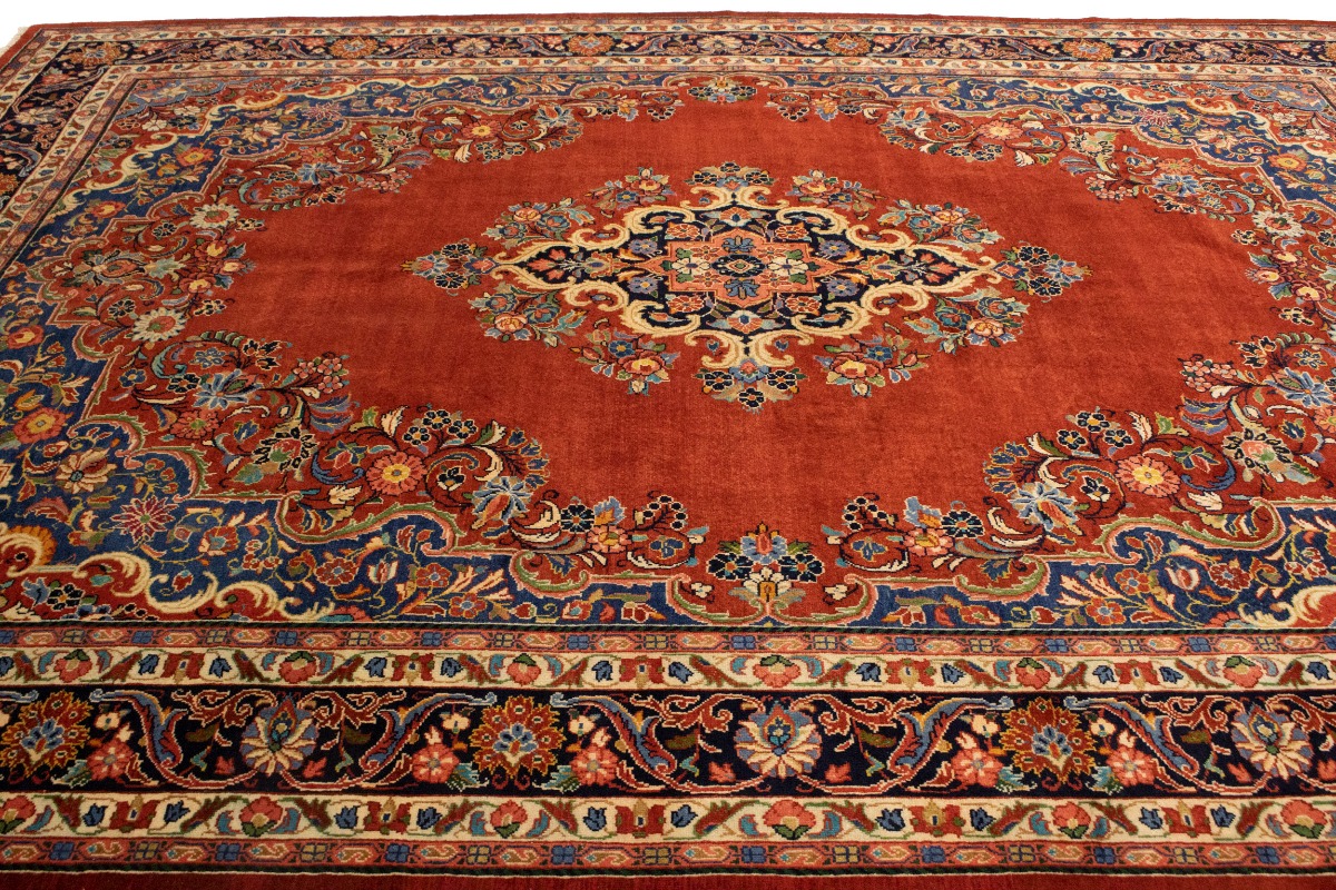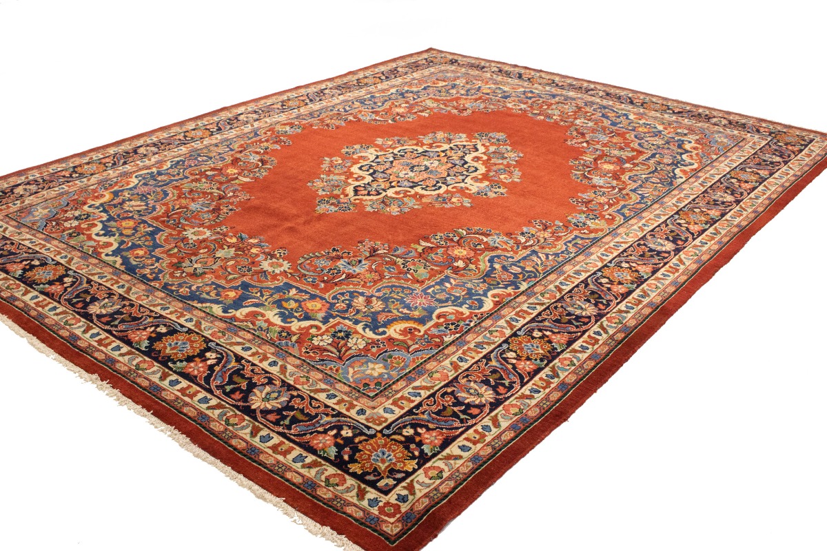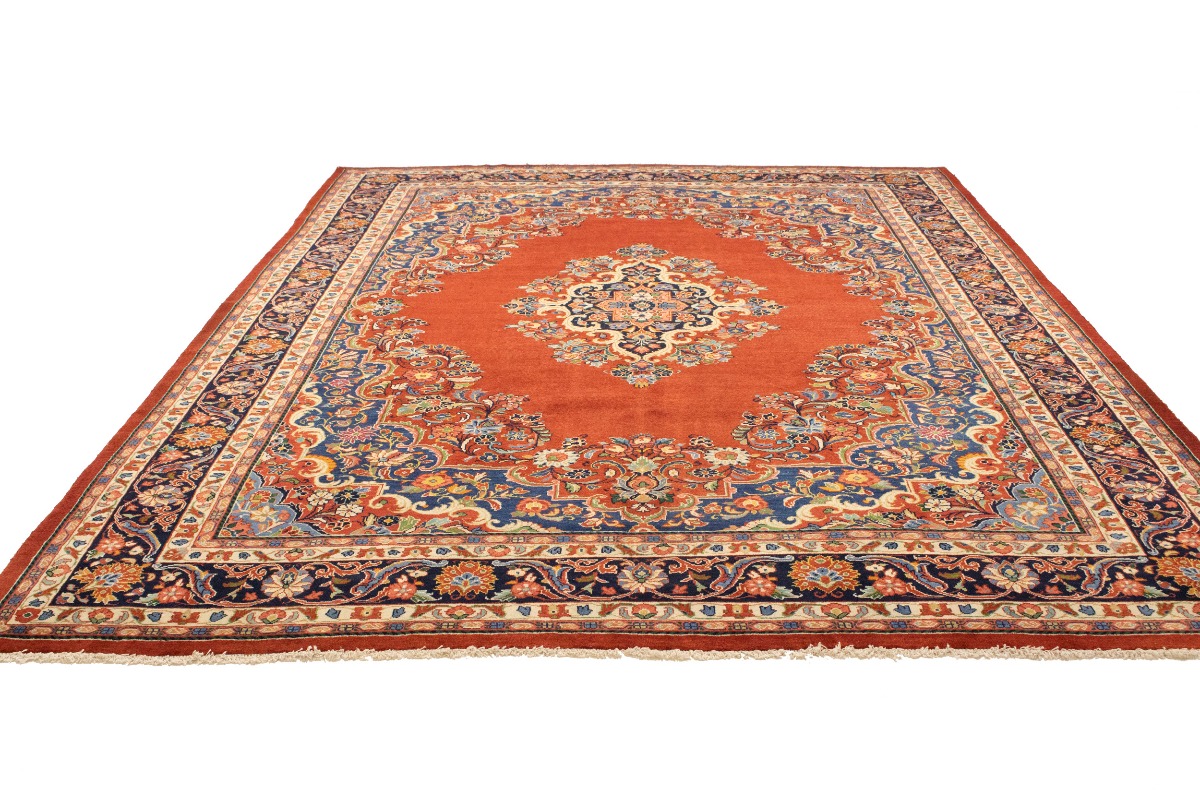 This authentic 10X14 orange-red vintage Persian rug was masterly knotted by the hands of weavers inspired by a variety of wonderful artistic designs, to recreate the aged look of the original piece with a richness of color and intricate patterned floral background field. What set this traditional Oriental area rug from the others are the material and dye used (wool pile and cotton foundation), knot count, antique designs, fantastic grades, and its regional historical connection: it has deep roots, from the story of the people who produced it to the meaning of the symbols and colors displayed across its canvas that have been praised for centuries. This classic home décor carpet will be completely cozy and inviting that never will go out of style! Also, this Oriental rug would be among your most valuable treasures, it is a great investment that accrues value over time, and it will last for generations because was woven with high-quality, all-natural wool; it won’t rip, tear, or shed. Environmentally friendly, opulent yet affordable; this Persian rug will give you a thorough amount of character to help define your living space with luxury and warmth that will capture the eyes and attention of your audience (homeowners, designers, decorators, family and friends). RT-10391