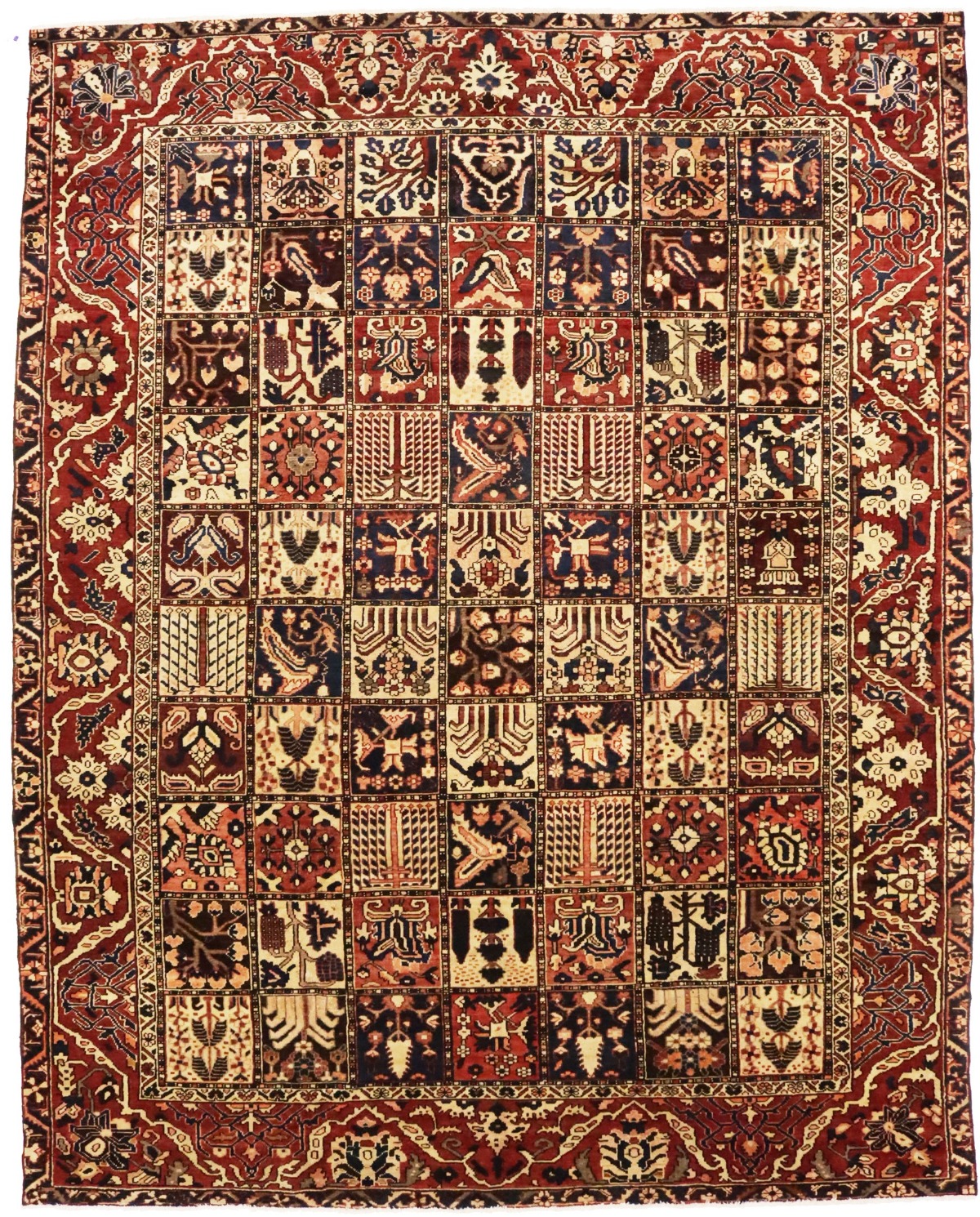 Semi Antique Pictorial Floral 10X12'5 Bakhtiari Persian Rug