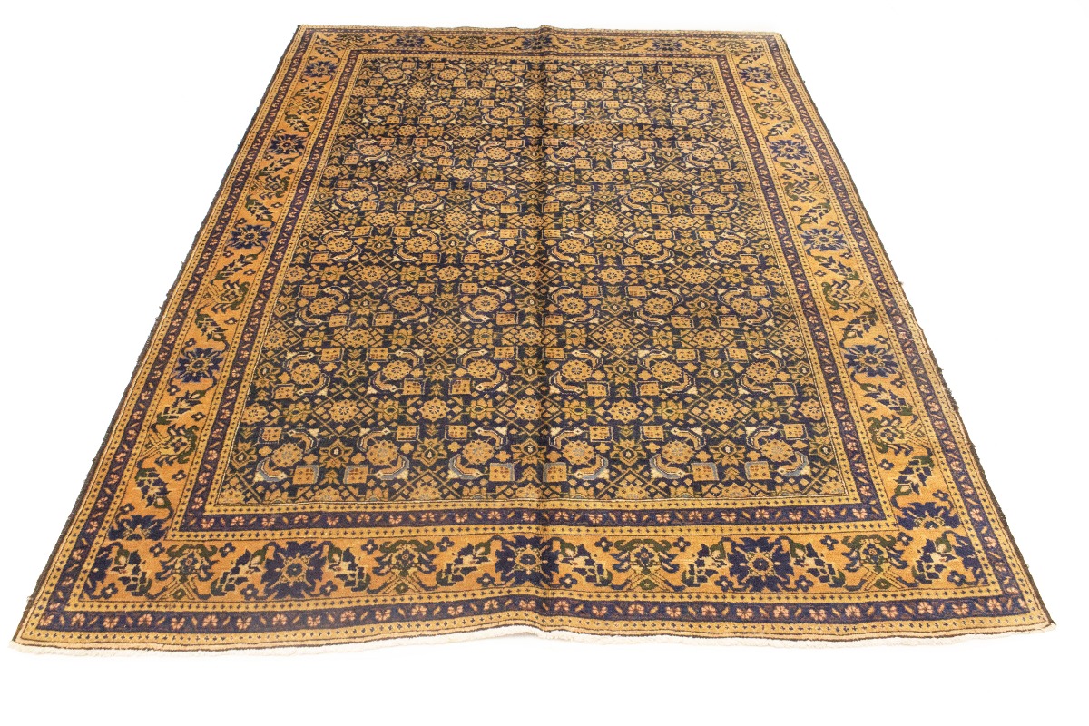 This authentic 7'4X10'5 purple vintage Persian rug was finely knotted by the hands of weavers influenced by a variety of amazing artistic designs, to recreate the aged look of the exceptional piece with a richness of color and embellished floral background field. What set this traditional Oriental area rug from the others are the material and dye used (wool pile and cotton foundation), knot count, antique designs, fantastic grades, and its regional historical connection: it has deep roots, from the story of the people who produced it to the meaning of the symbols and colors displayed across its canvas that have been praised for centuries. This classic home décor carpet will be completely cozy and inviting that never will go out of style! Also, this Oriental rug would be among your most valuable treasures, it is a great investment that increase in value over time, and it will last a lifetime because was woven with high-quality, all-natural wool; it won’t rip, tear, or shed. Eco-friendly, opulent yet affordable; this Persian rug will give you an extra pop of character to help define your home environment with luxury and warmth that will capture the eyes and attention of your audience (homeowners, designers, decorators, family and friends). EB-6405