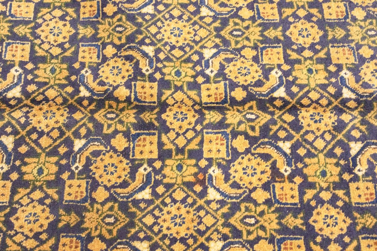 Handmade semi antique 7'4X10'5 purple Persian rug made with vegetable dyes (fine wool pile and cotton foundation), superior knot count, and appealing ancient designs. This Oriental rug never will go out of style and would be among your most valuable treasures.
