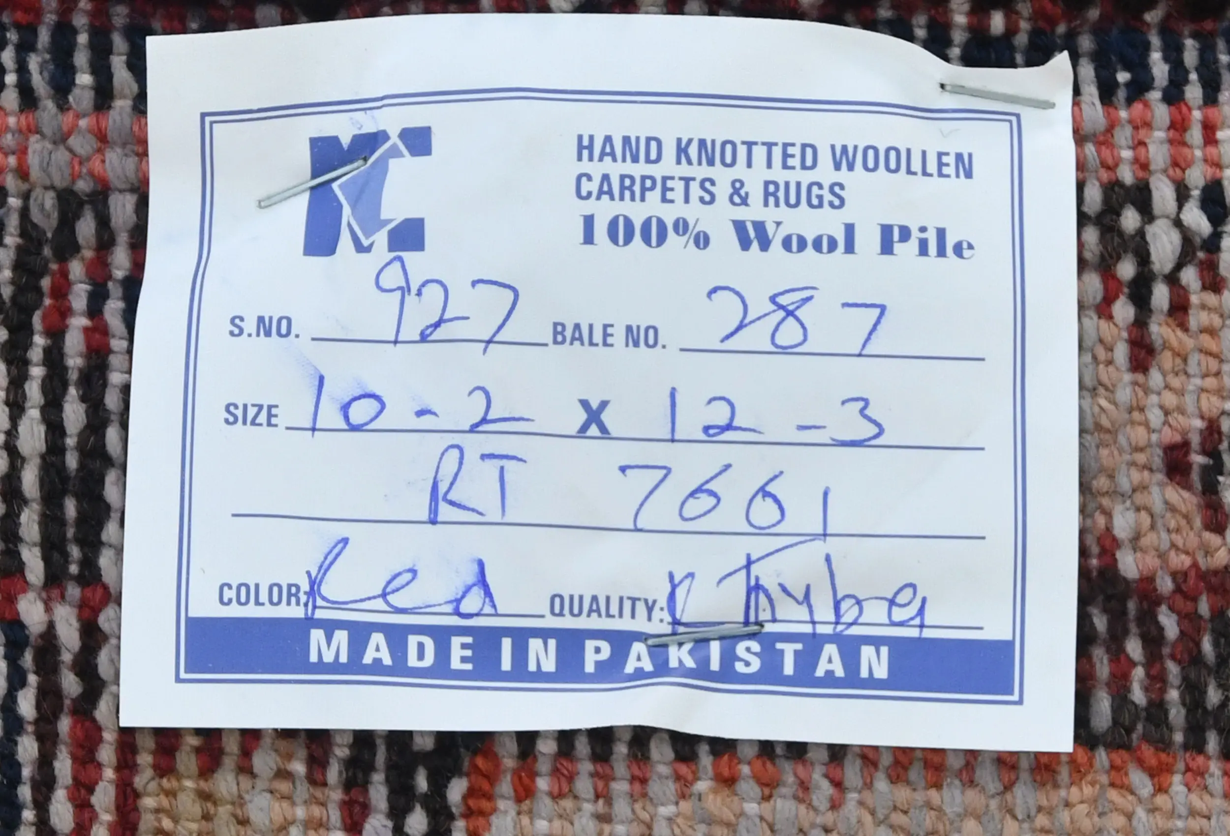 Hand Knotted Semi Antique 10X12 red Persian rug made with vegetable dyes (fine wool pile and cotton foundation), superior knot count, and appealing ancient designs. This Oriental rug never will go out of style and would be among your most valuable treasures.