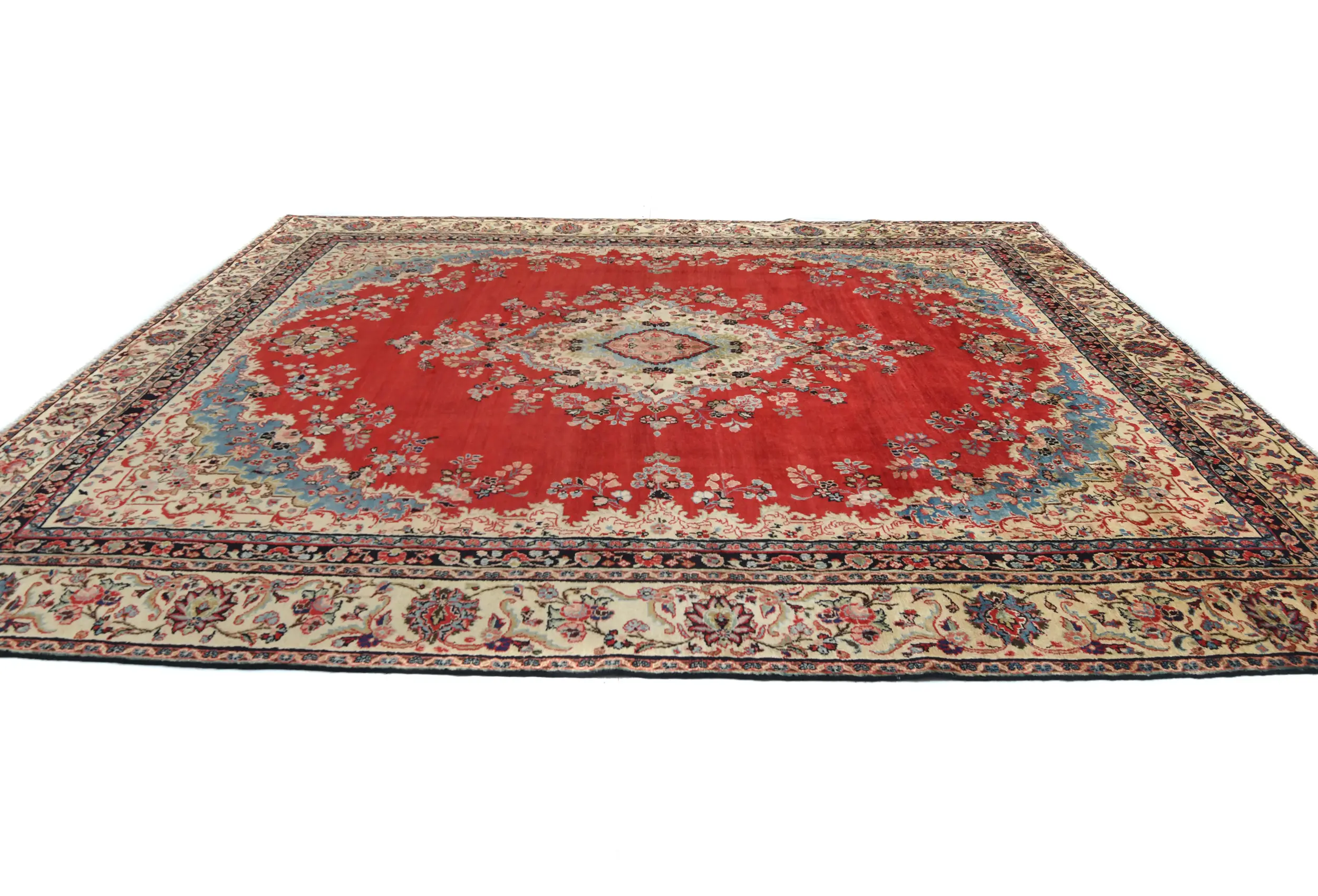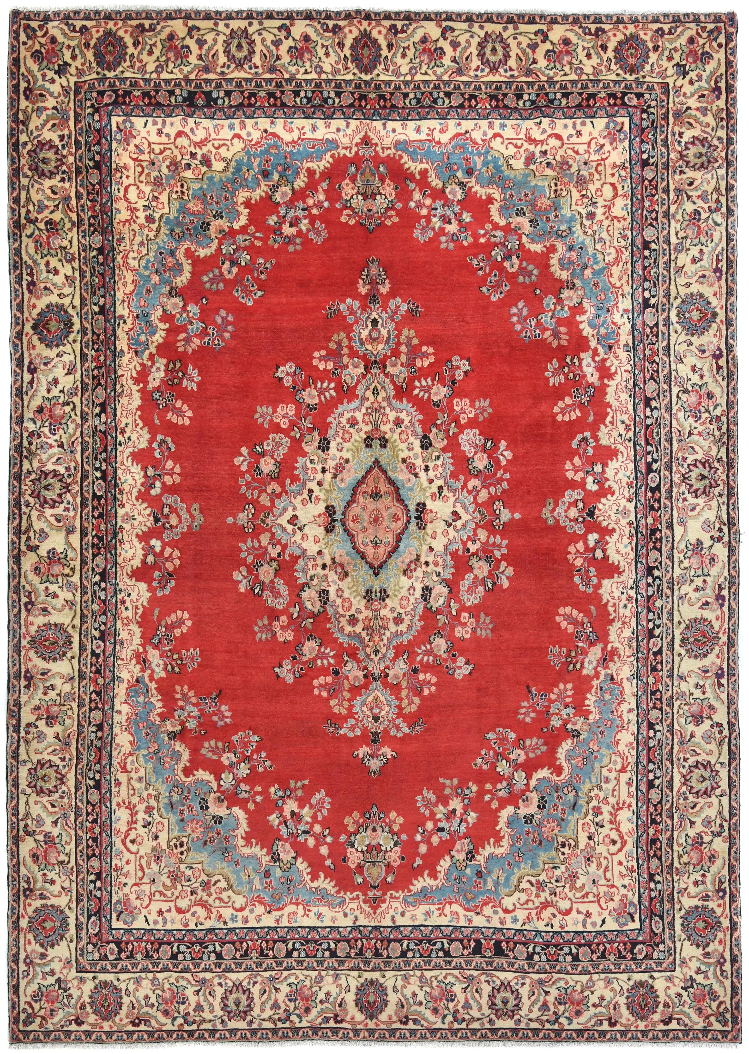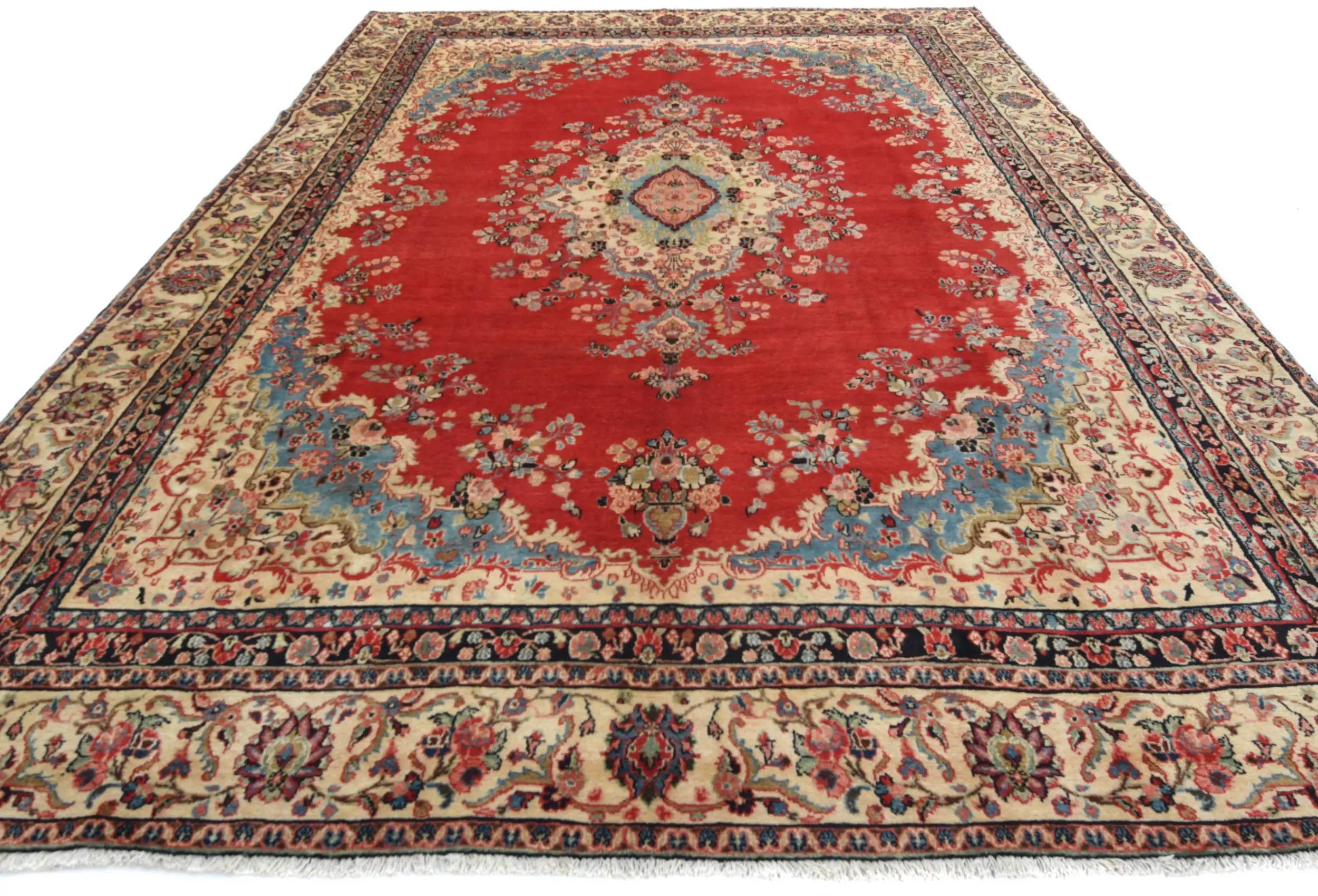 Hand Knotted semi antique 10X14 Red Persian rug made with vegetable dyes (fine wool pile and cotton foundation), superior knot count, and alluring ancient designs. This Oriental rug never will go out of style and would be among your most valuable treasures.