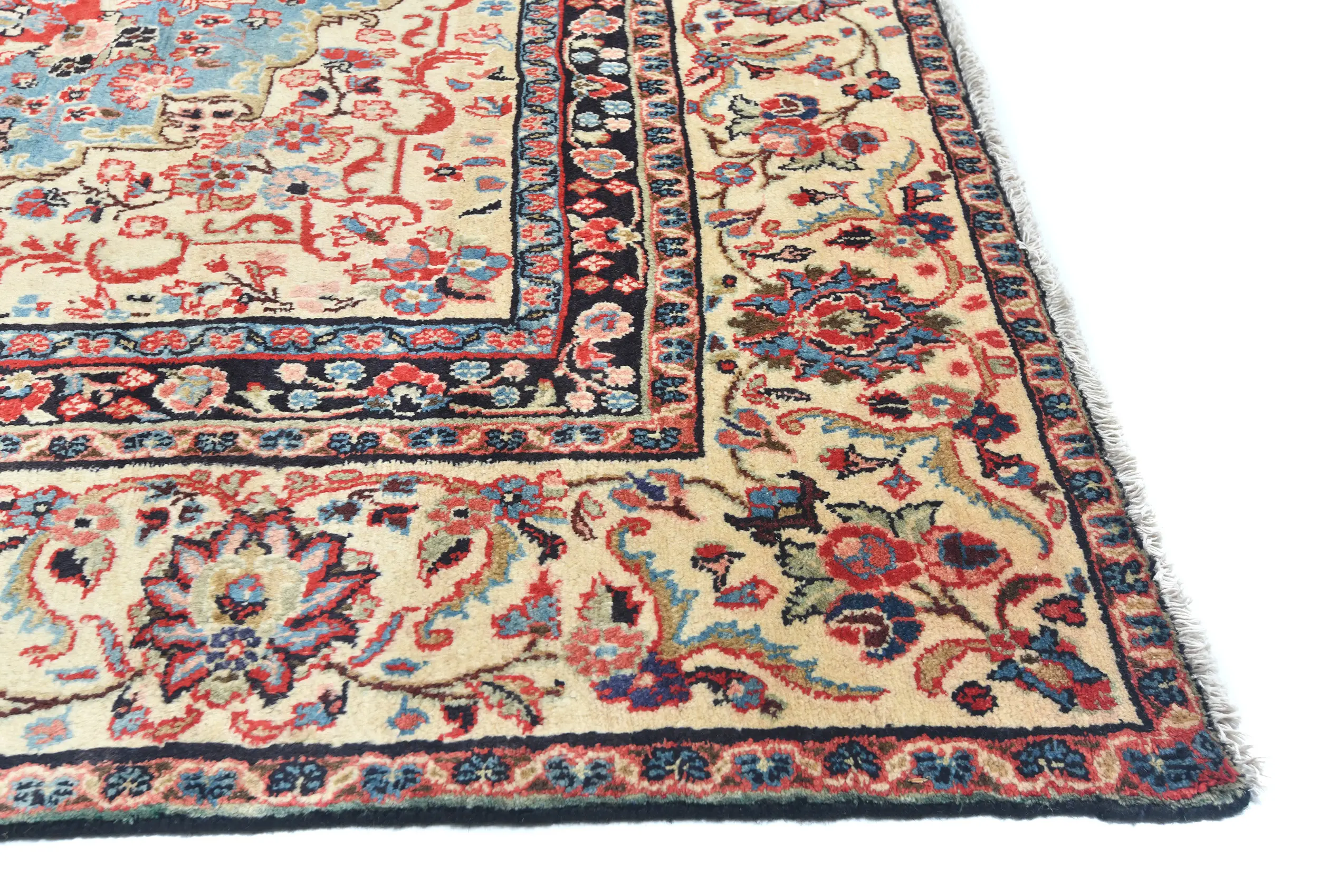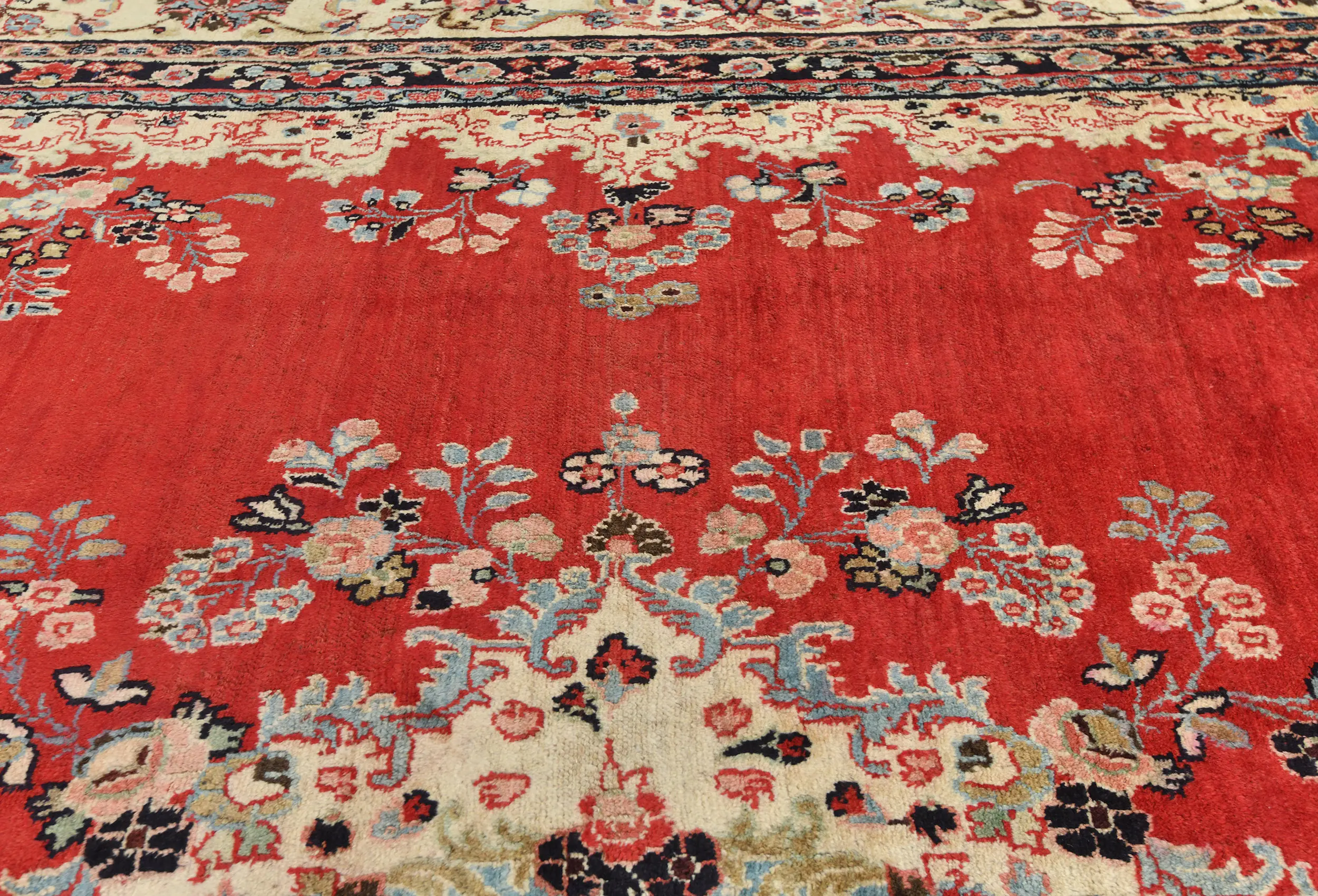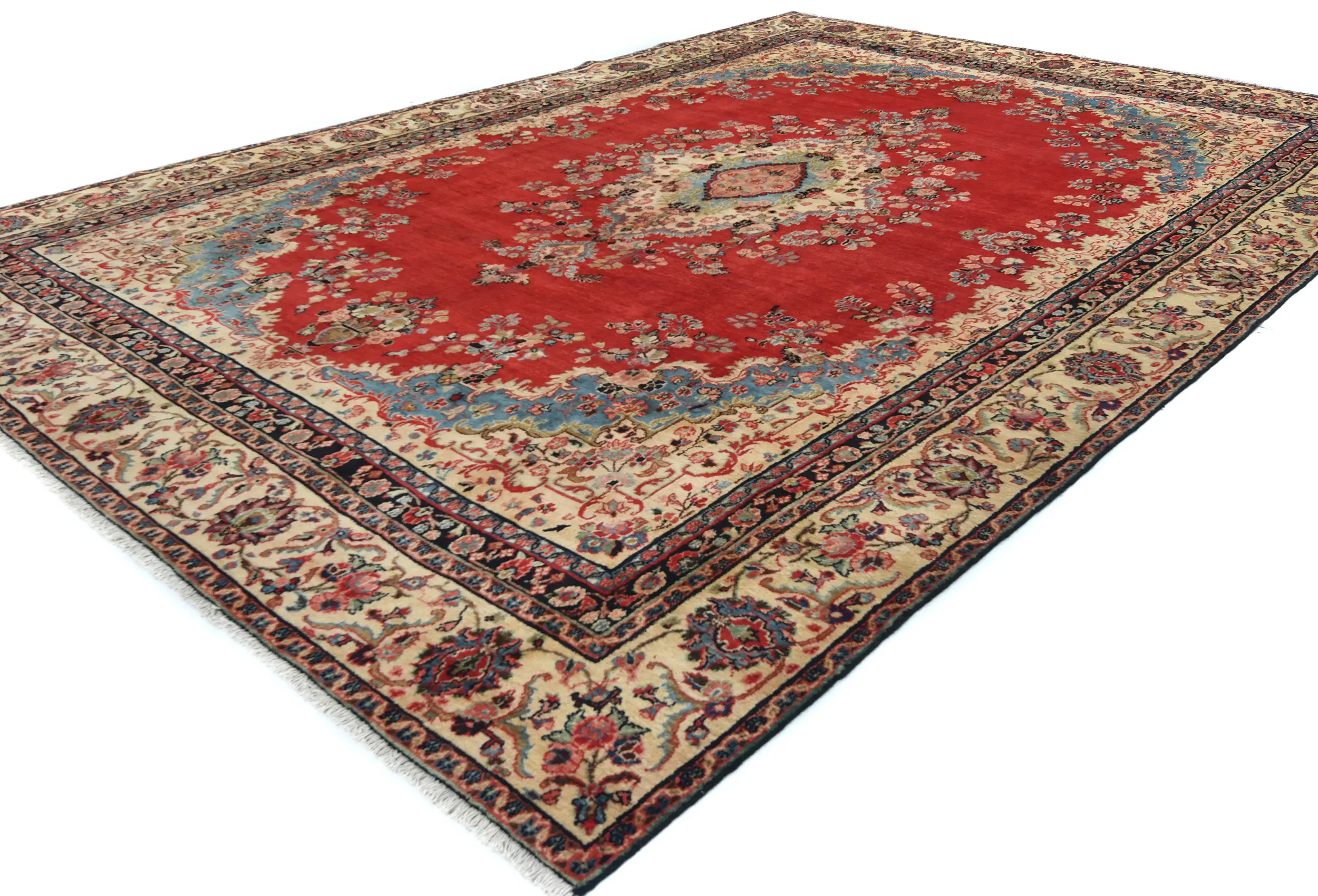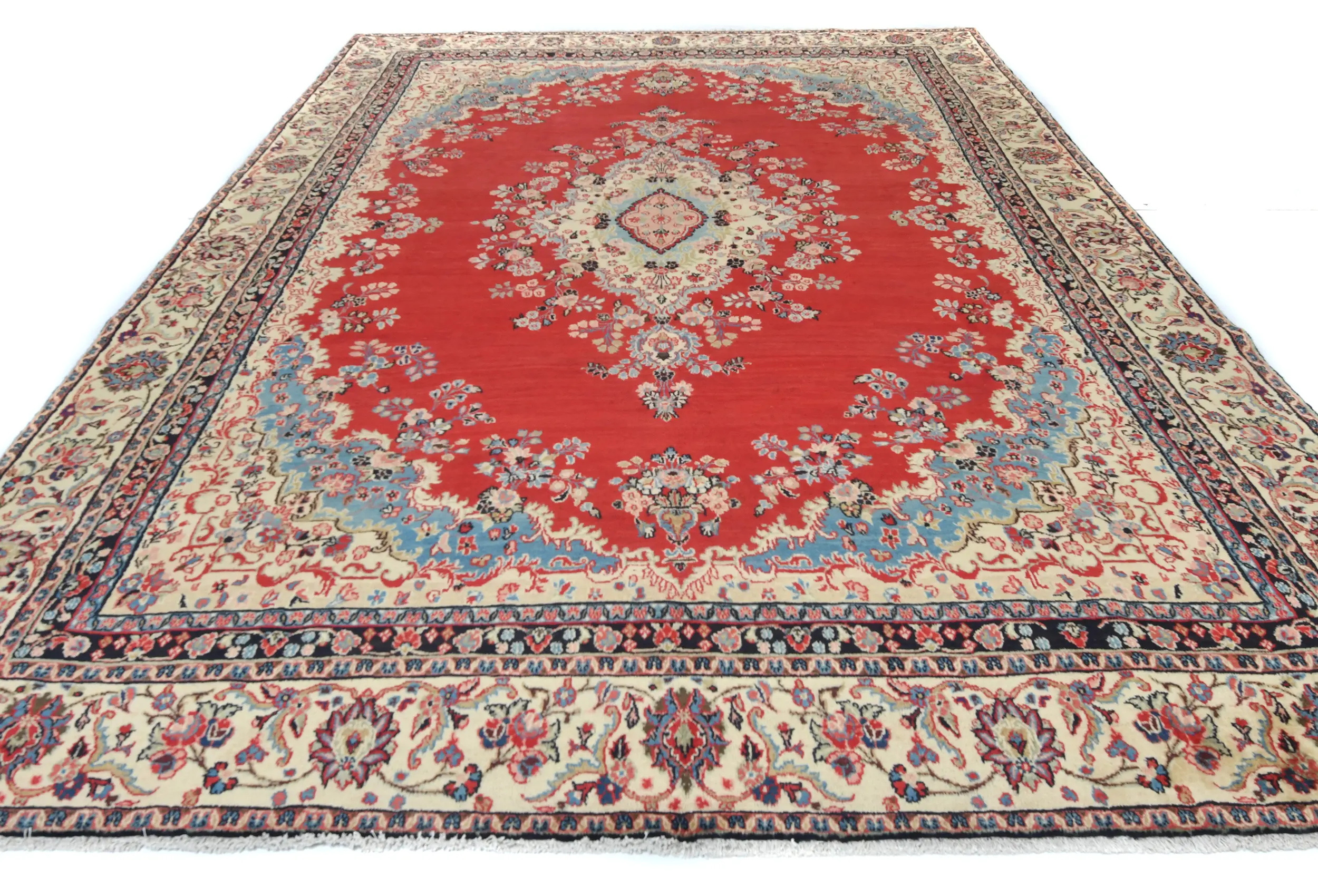 Hand Knotted semi antique 10X14 Red Persian rug made with vegetable dyes (fine wool pile and cotton foundation), superior knot count, and alluring ancient designs. This Oriental rug never will go out of style and would be among your most valuable treasures.