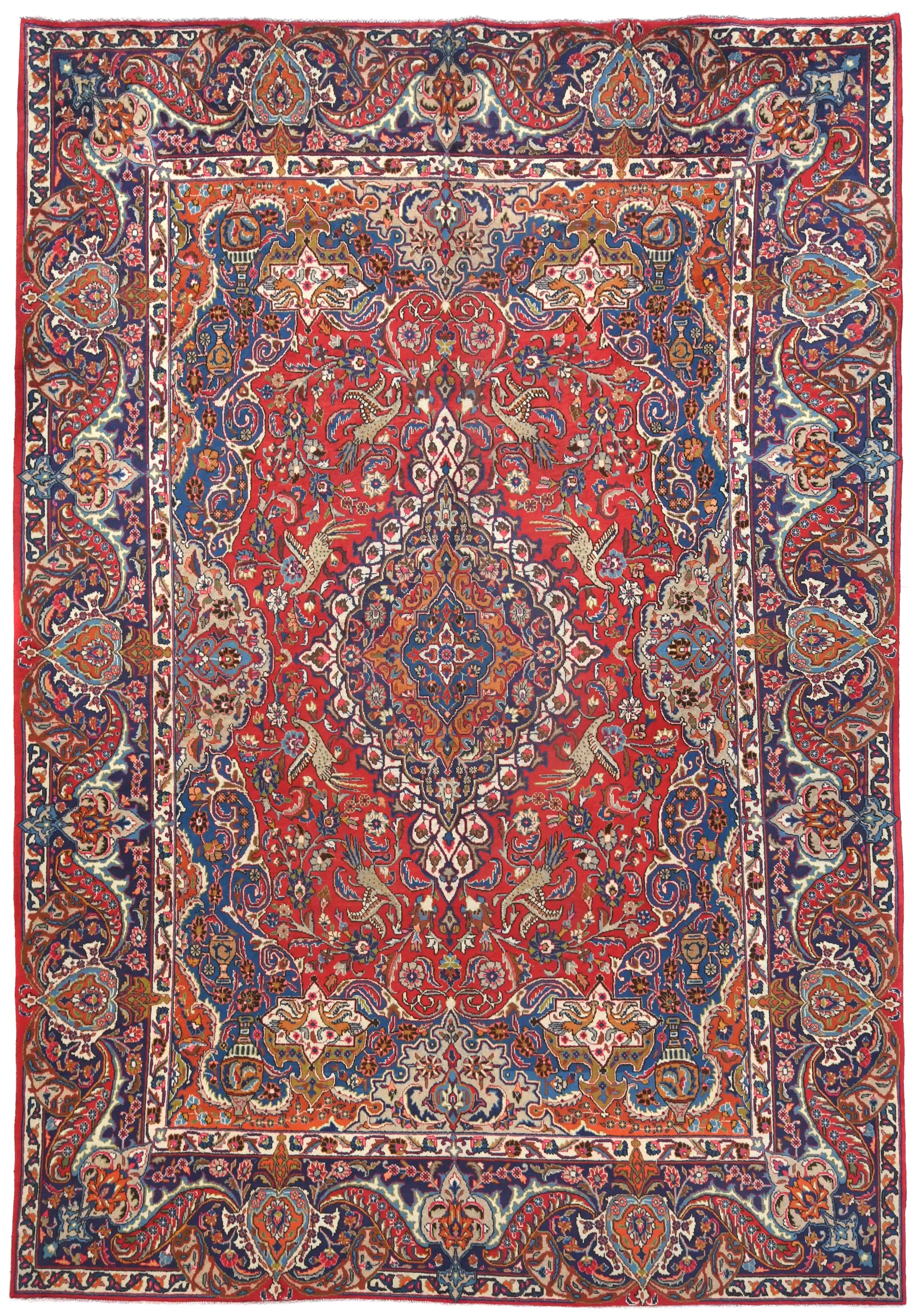 Semi Antique Red Pictorial Traditional 10X13 Kashmar Persian Rug