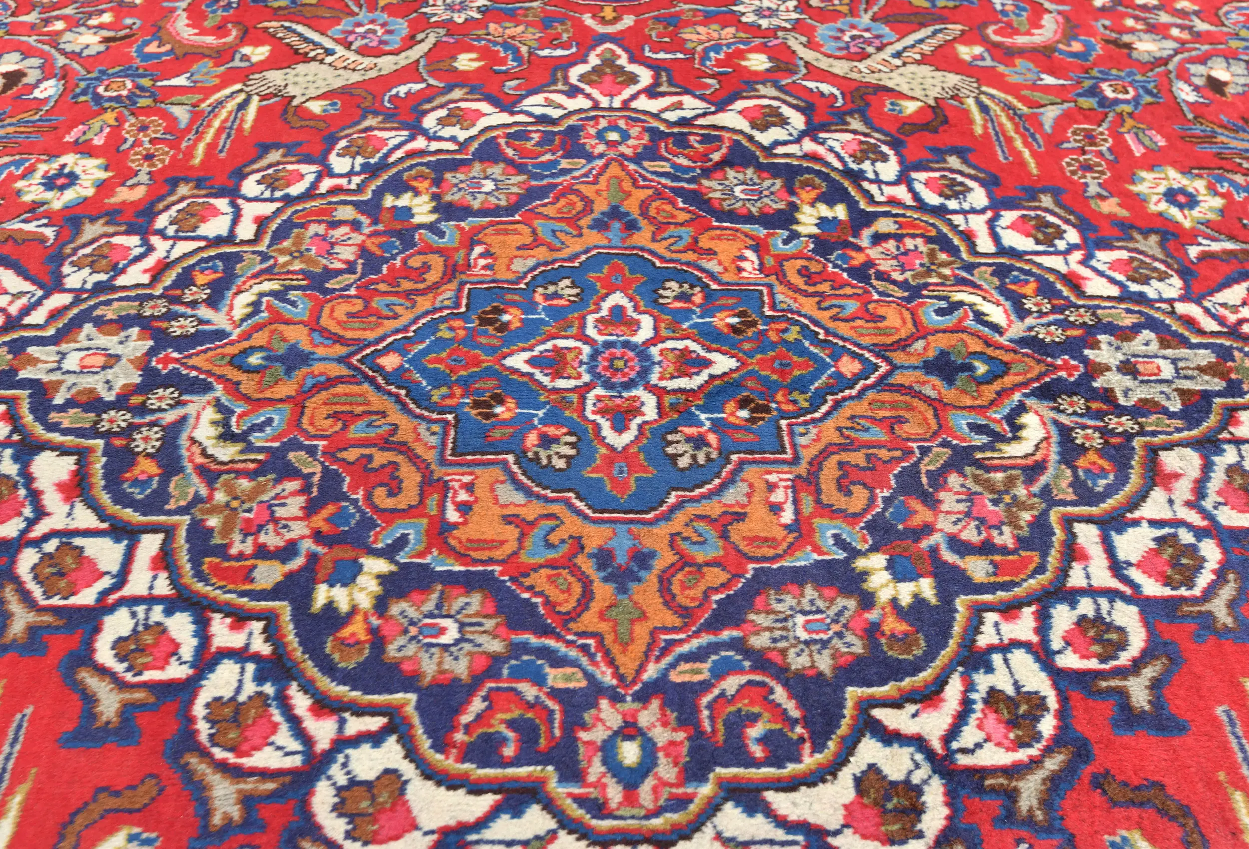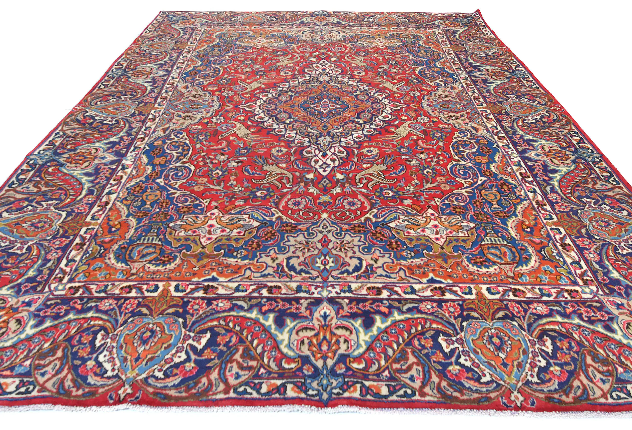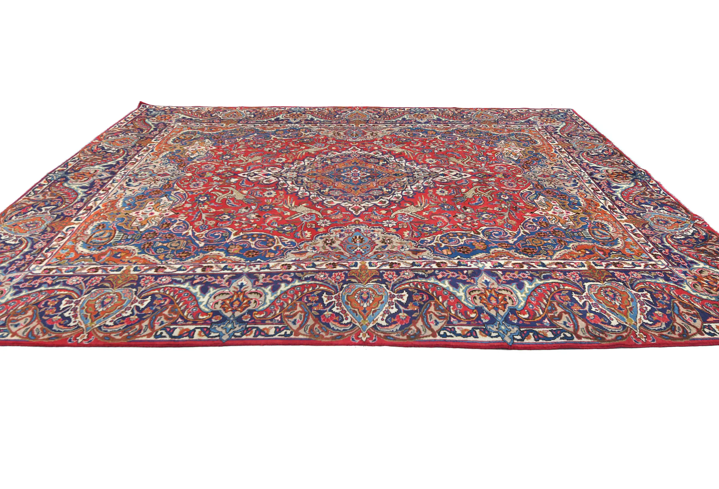 Handmade semi antique 10X13 red Persian rug made with vegetable dyes (fine wool pile and cotton foundation), superior knot count, and alluring ancient designs. This Oriental rug never will go out of style and would be among your most valuable treasures.