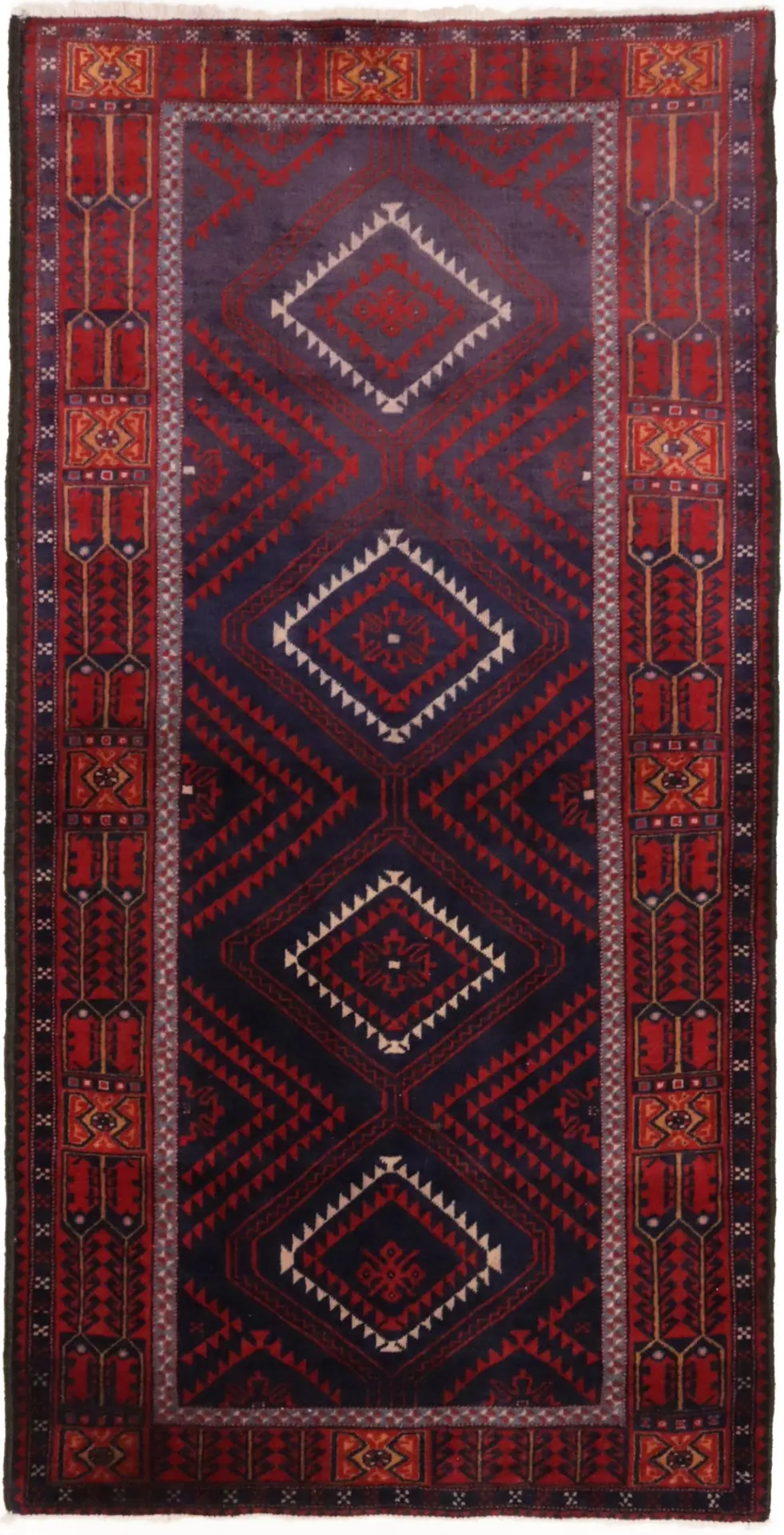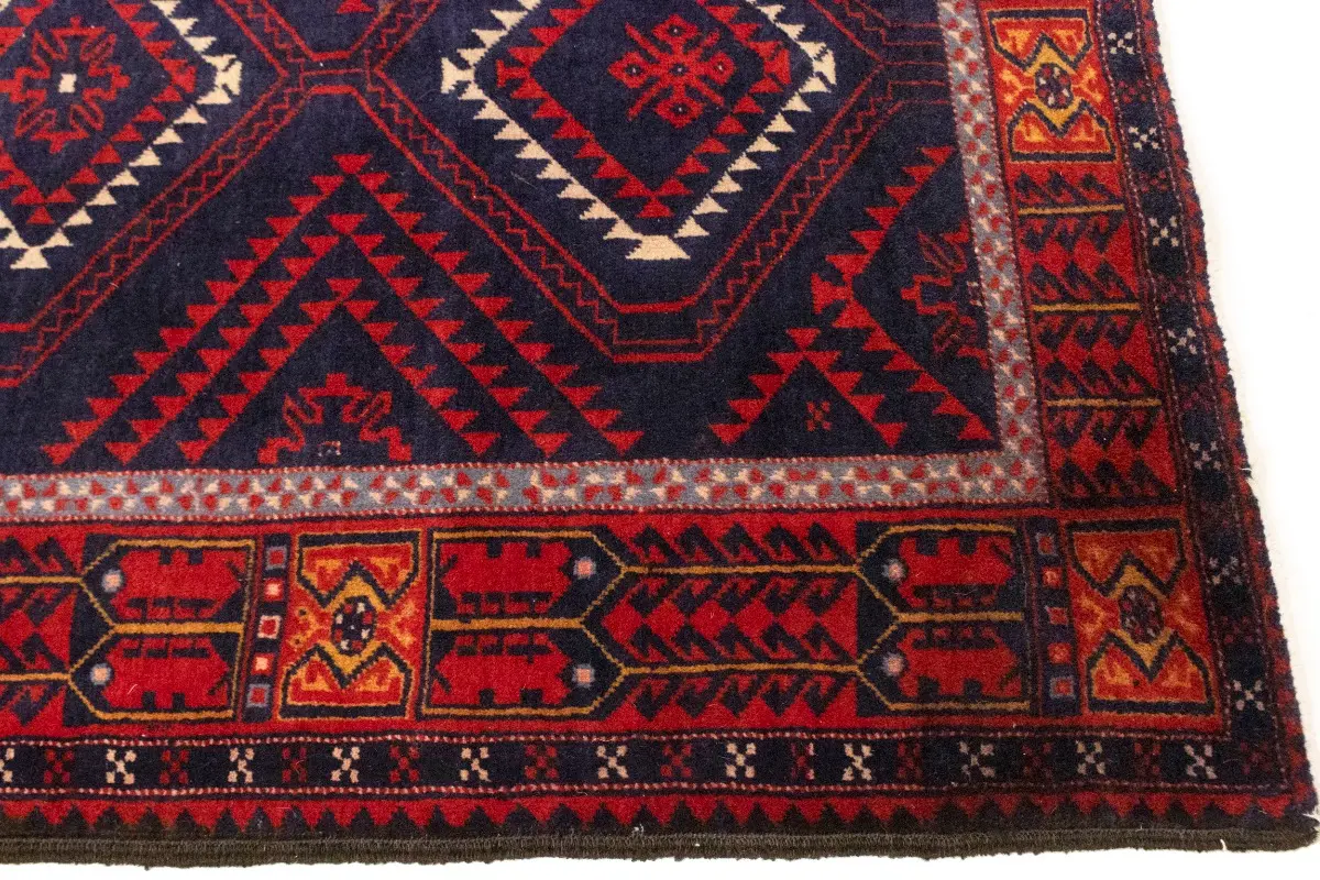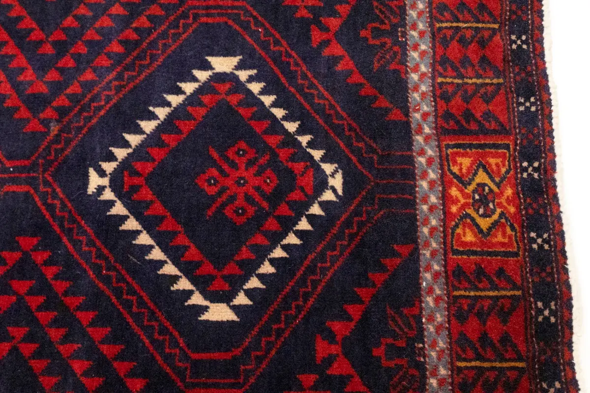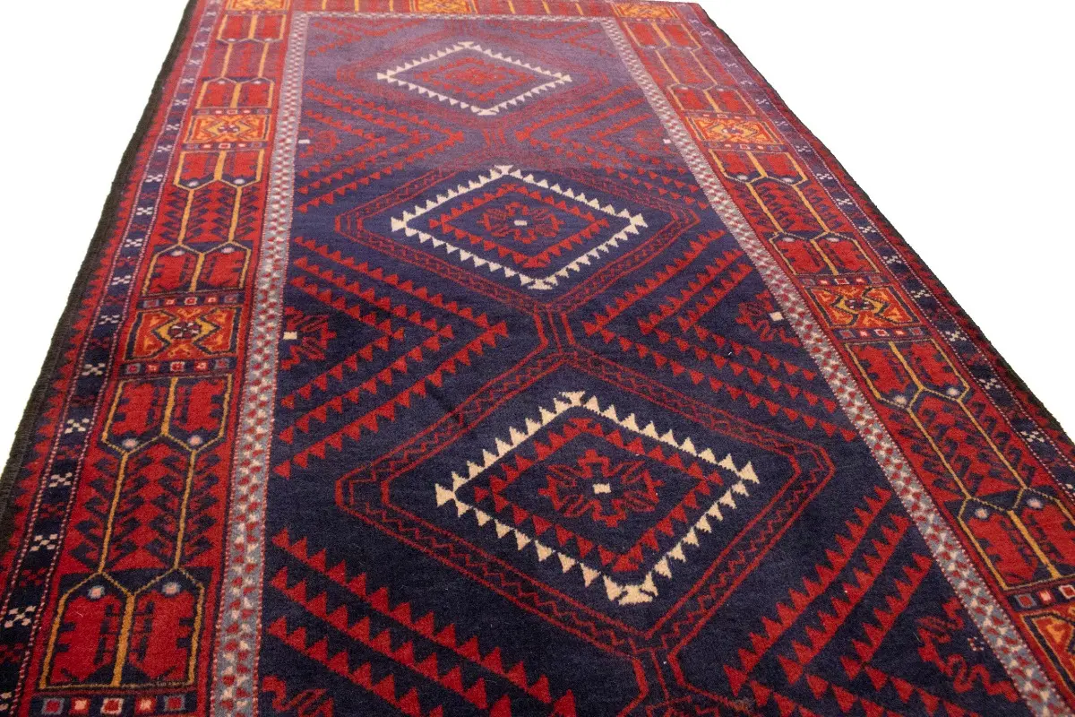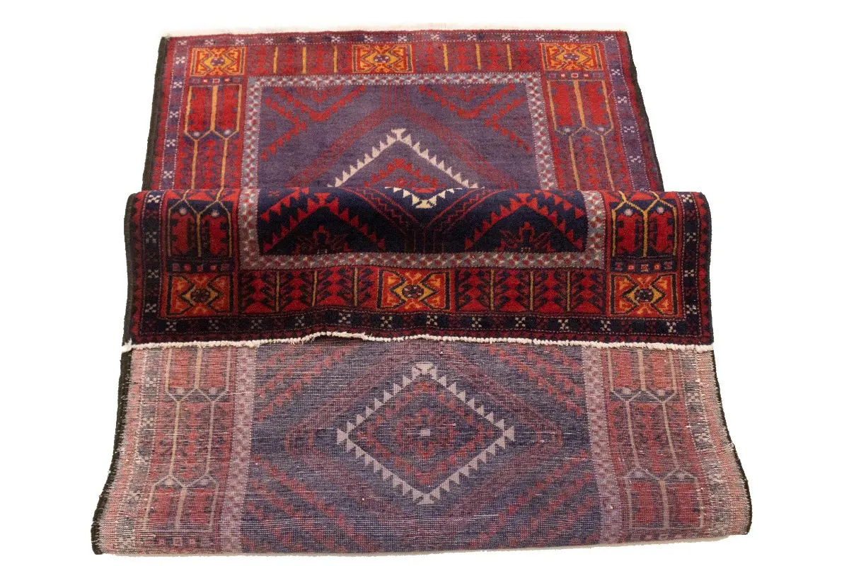 Semi Antique Red & Plum Tribal 3'4X6'8 Balouch Persian Rug