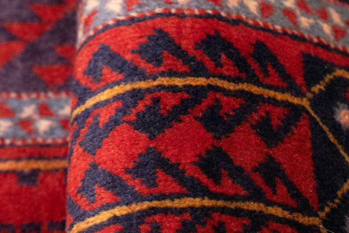 This original 3'4X6'8 red vintage Persian rug was crafted by the hands of skilled weavers enthused by a variety of lovely artistic designs, to recreate the aged look of the unique piece with a richness of color and beautifully elaborated background field. What set this tribal Oriental area rug from the others are the material and dye used (wool pile and cotton foundation), knot count, ancient designs, fantastic grades, and its regional historical connection: it has deep roots, from the story of the people who produced it to the meaning of the symbols and colors displayed across its canvas that have been praised for centuries. This home décor carpet will be completely cozy and inviting that never will go out of style! Also, this Oriental rug would be among your most valuable treasures, it is a great investment that increase in value over time, and it will last for generations because was woven with high-quality, all-natural wool; it won’t rip, tear, or shed. Environmentally friendly, opulent yet affordable; this Persian rug will give you a thorough amount of character to help define your living space with sophistication and warmth that will capture the eyes and attention of your audience (homeowners, designers, decorators, family and friends). RT-1871