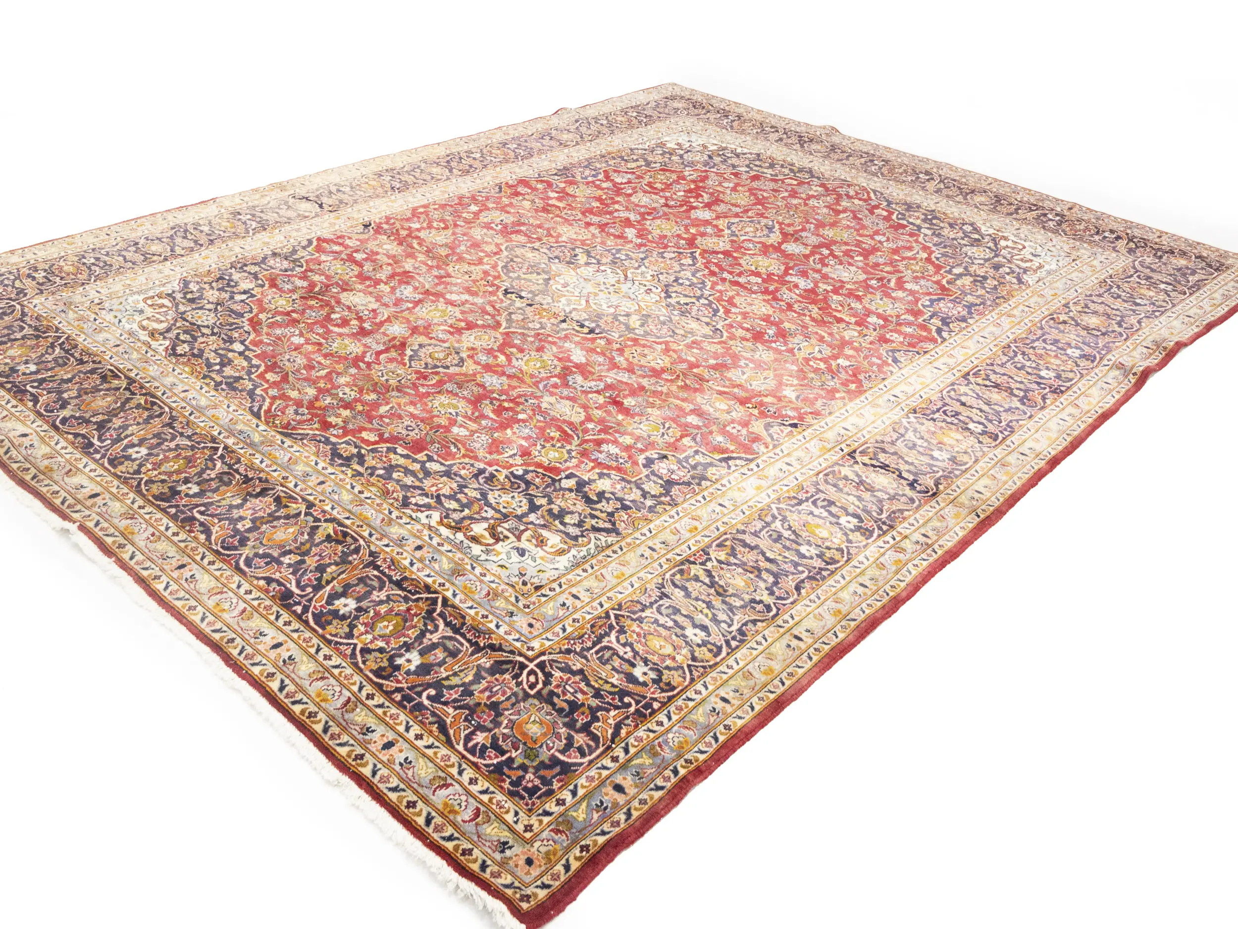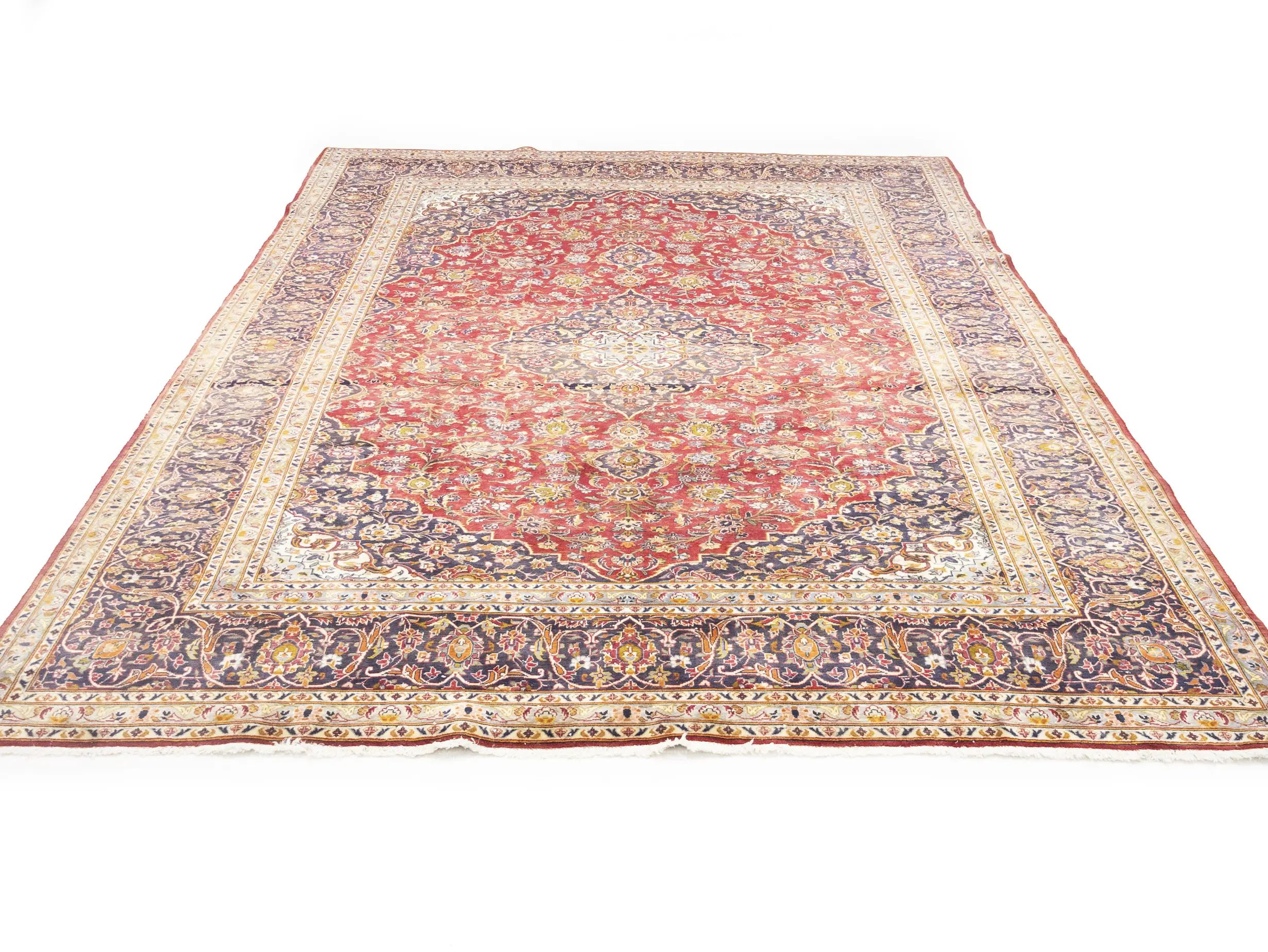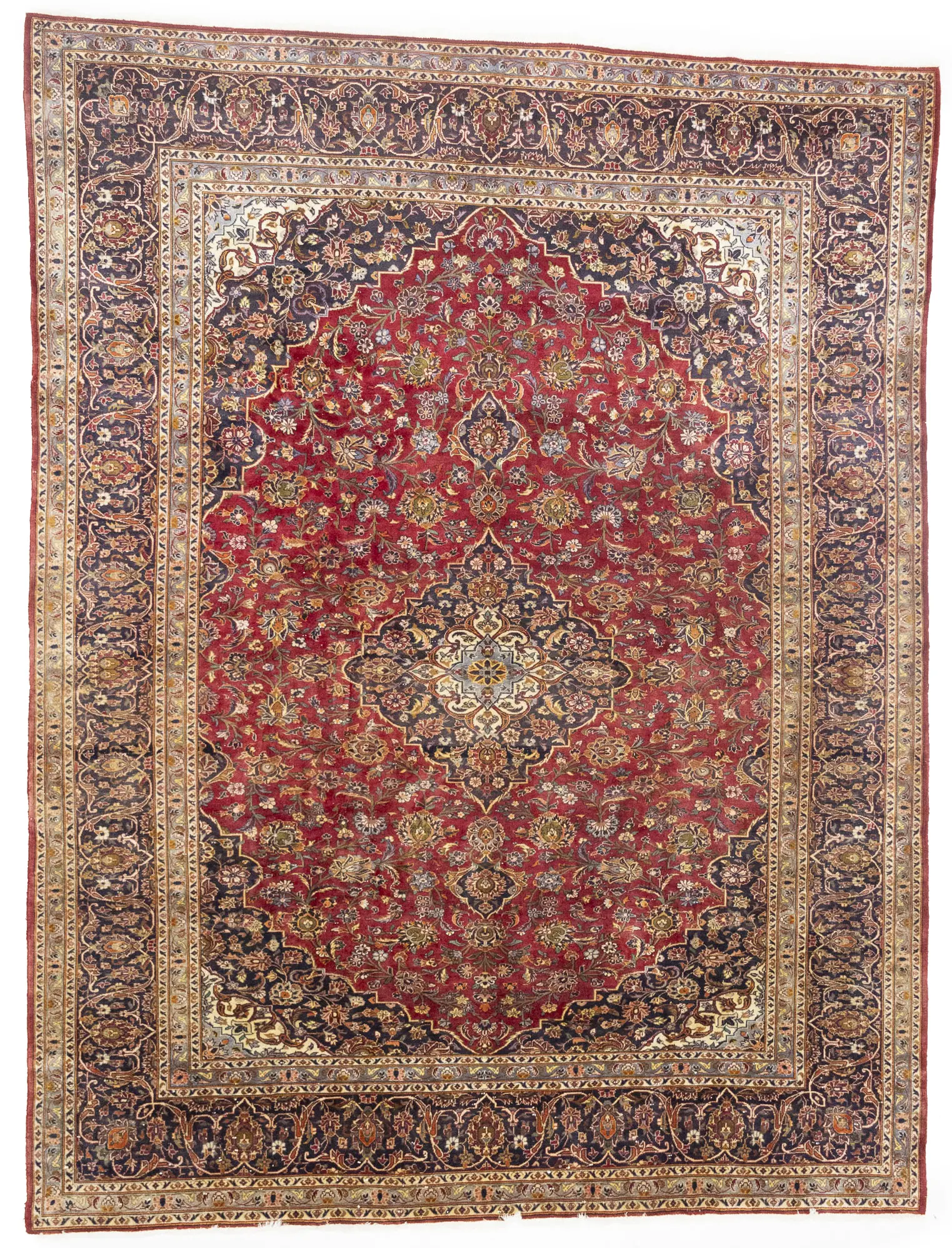 Handmade semi antique 10X13 red Persian rug made with vegetable dyes (fine wool pile and cotton foundation), superior knot count, and alluring ancient designs. This Oriental rug never will go out of style and would be among your most valuable treasures.