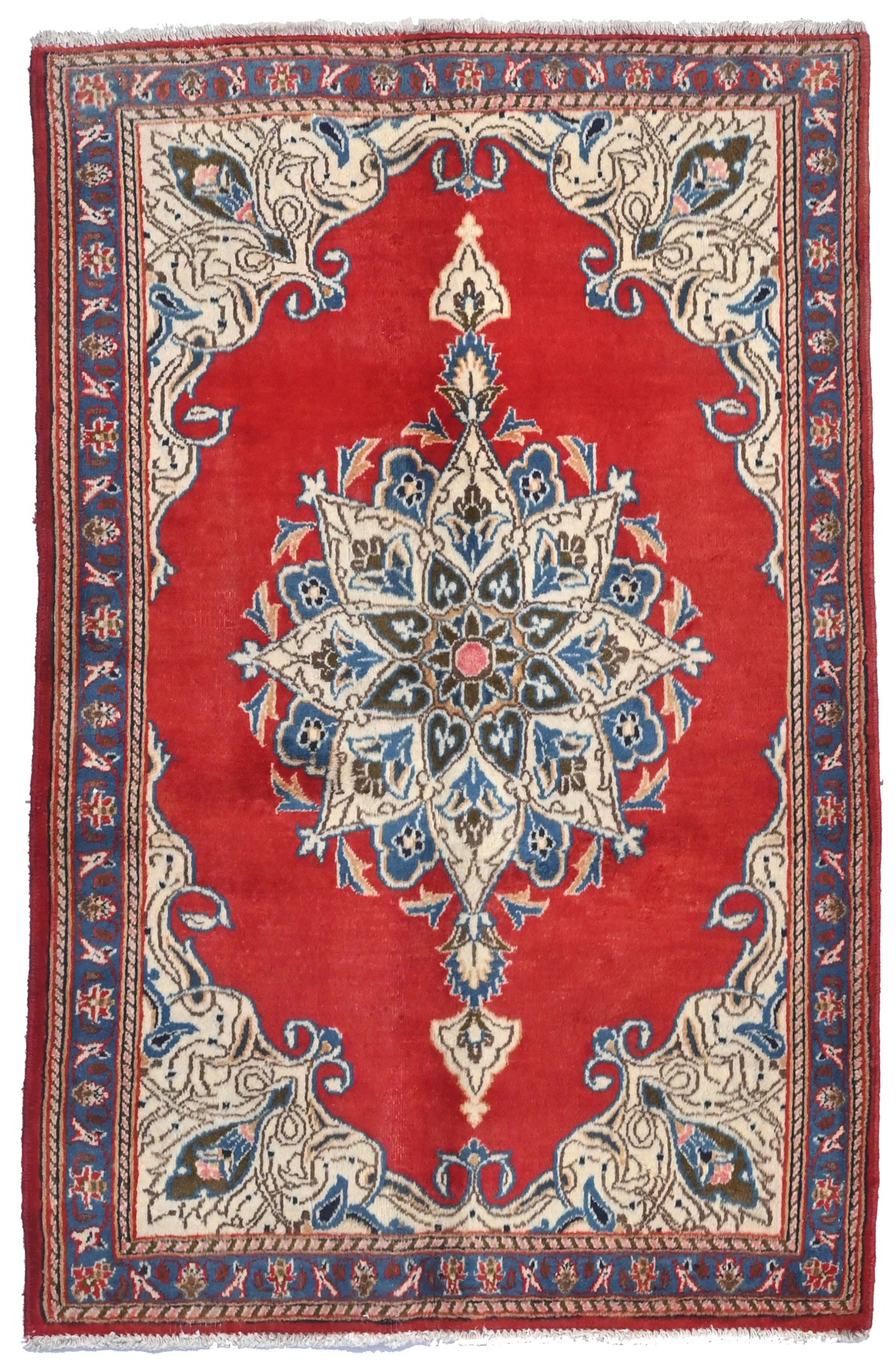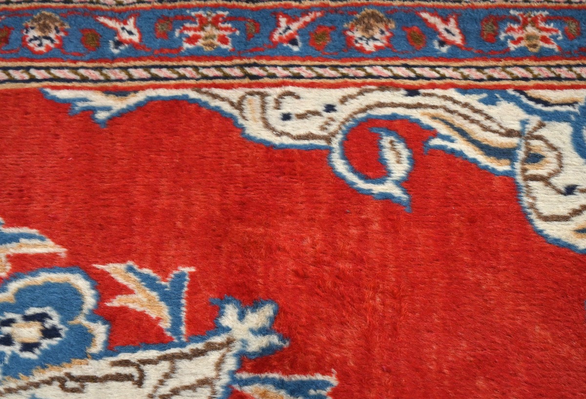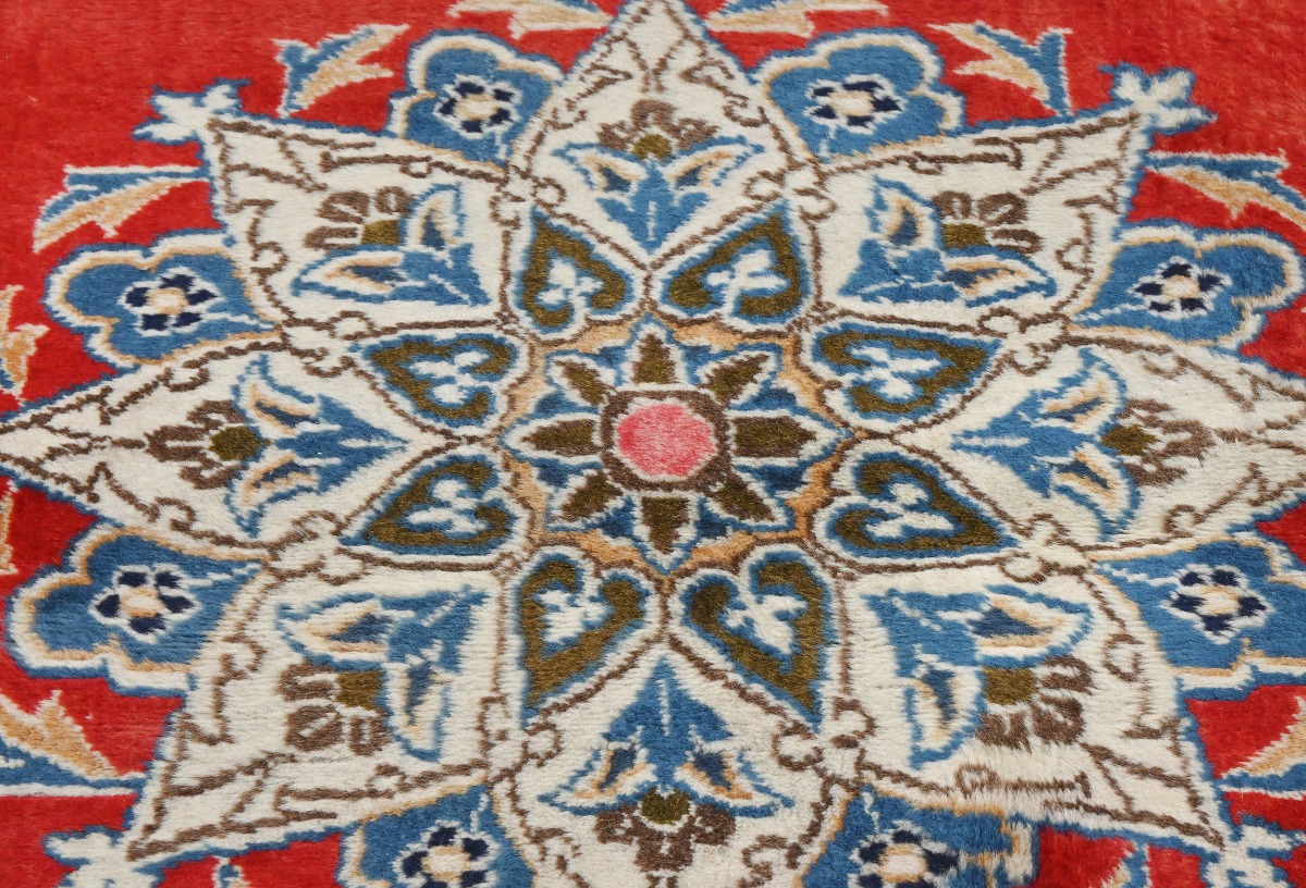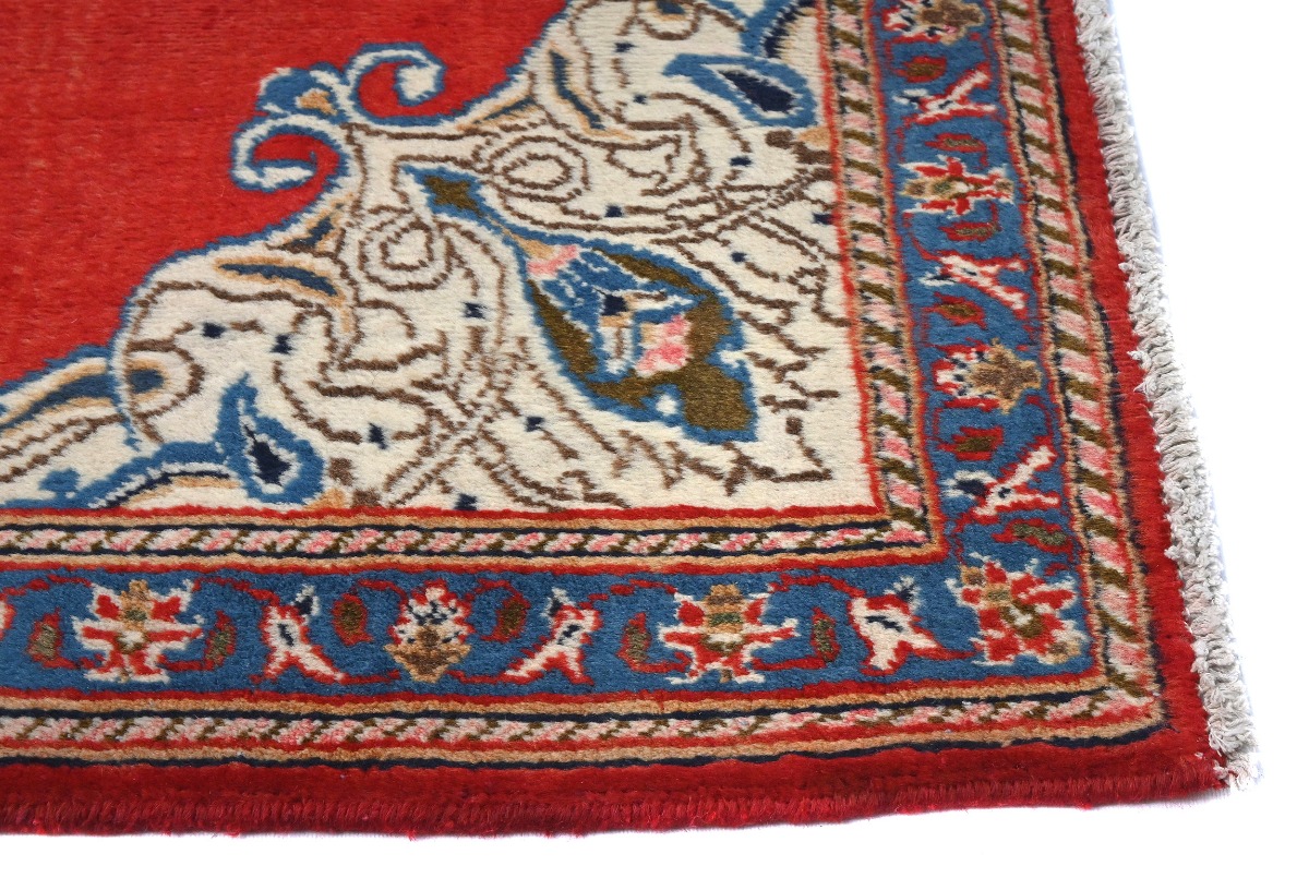 Handmade semi antique 3X5 red Persian rug made with vegetable dyes (fine wool pile and cotton foundation), superior knot count, and alluring ancient designs. This Oriental rug never will go out of style and would be among your most valuable treasures.