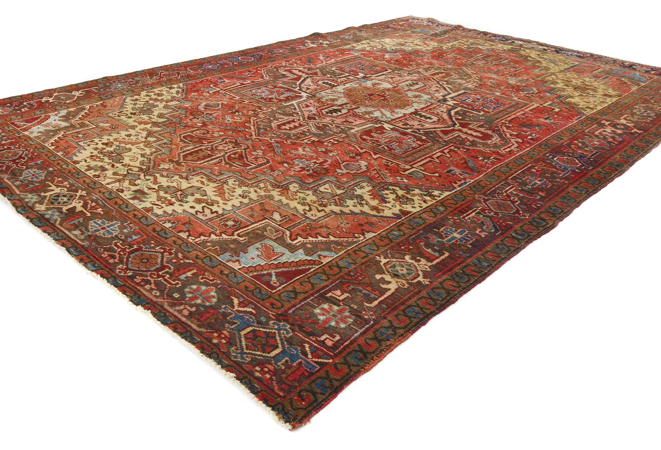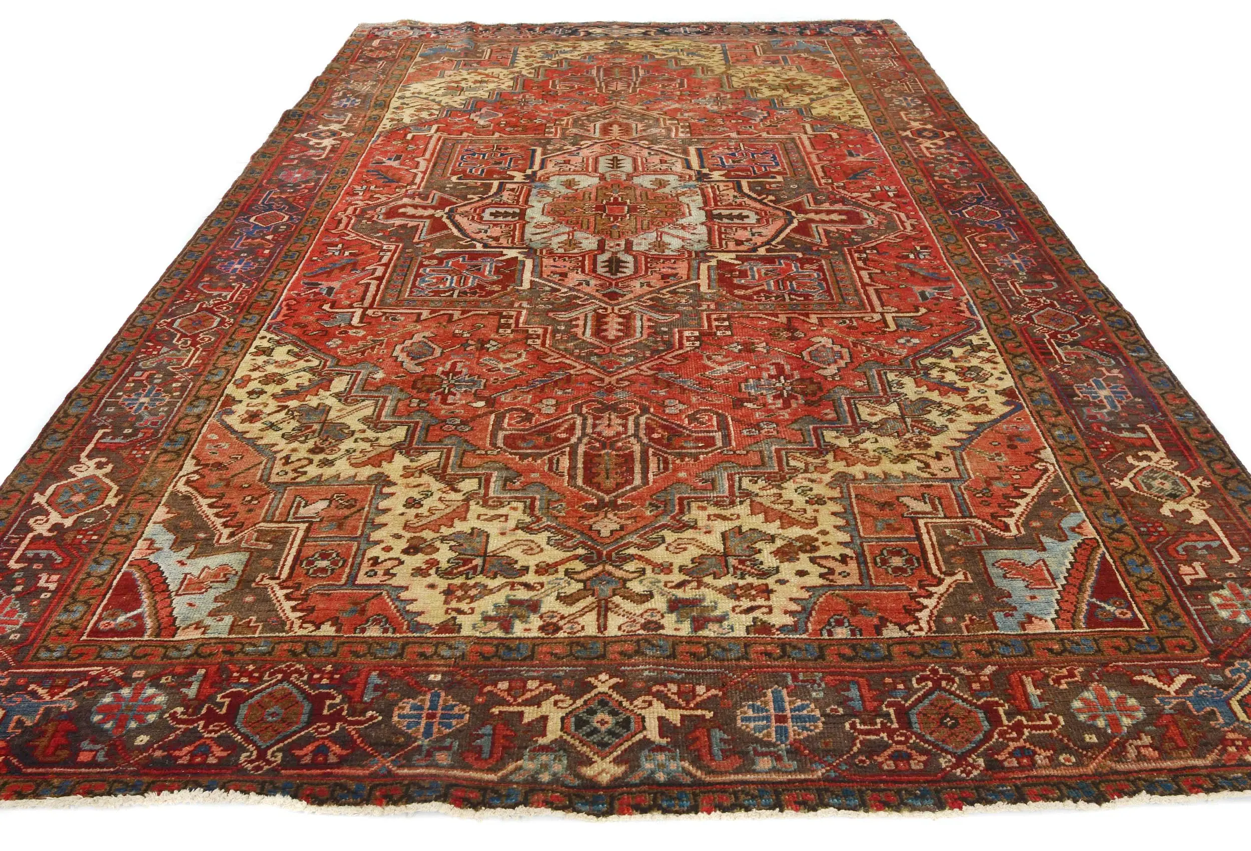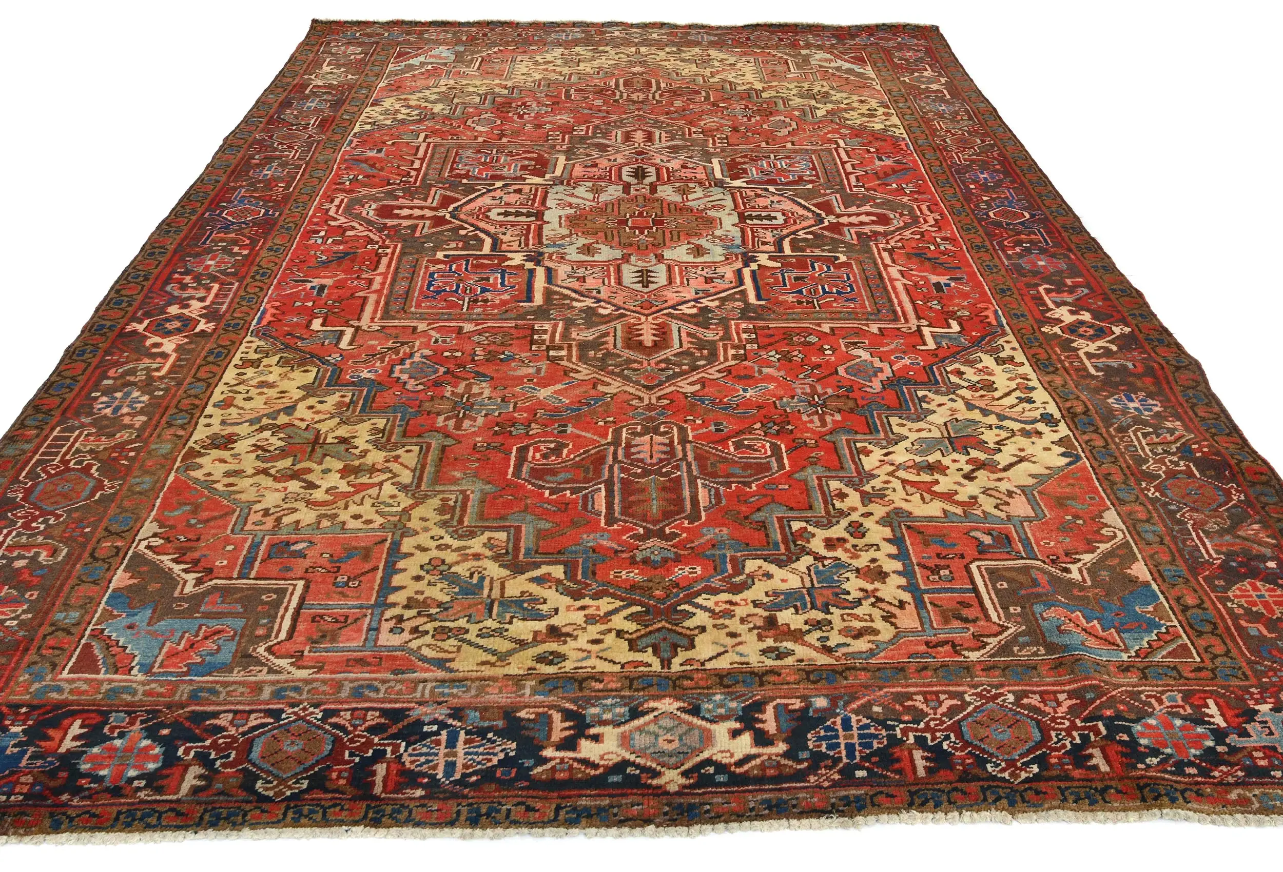 This authentic 7'7X11'2 Red vintage Persian rug was finely knotted by the hands of weavers influenced by a variety of amazing artistic designs, to recreate the aged look of the exceptional piece with a richness of color and embellished floral background field. What set this traditional Oriental area rug from the others are the material and dye used (wool pile and cotton foundation), knot count, antique designs, fantastic grades, and its regional historical connection: it has deep roots, from the story of the people who produced it to the meaning of the symbols and colors displayed across its canvas that have been praised for centuries. This classic home décor carpet will be completely cozy and inviting that never will go out of style! Also, this Oriental rug would be among your most valuable treasures, it is a great investment that increase in value over time, and it will last a lifetime because was woven with high-quality, all-natural wool; it won’t rip, tear, or shed. Eco-friendly, opulent yet affordable; this Persian rug will give you an extra pop of character to help define your home environment with luxury and warmth that will capture the eyes and attention of your audience (homeowners, designers, decorators, family and friends).
