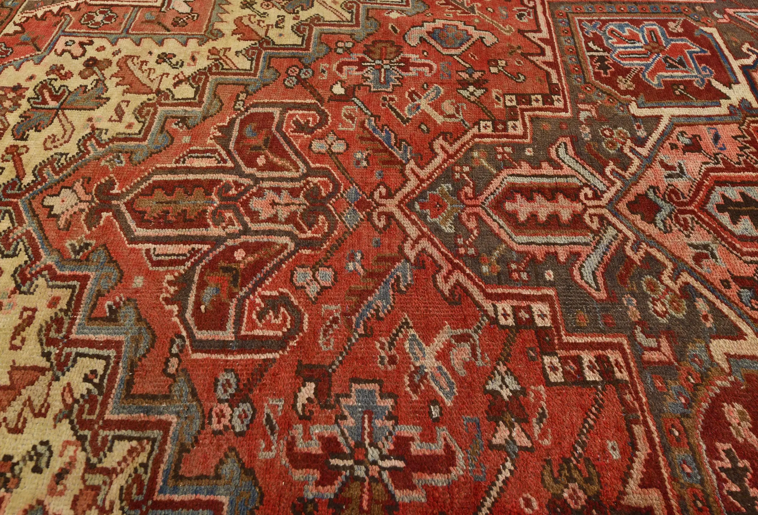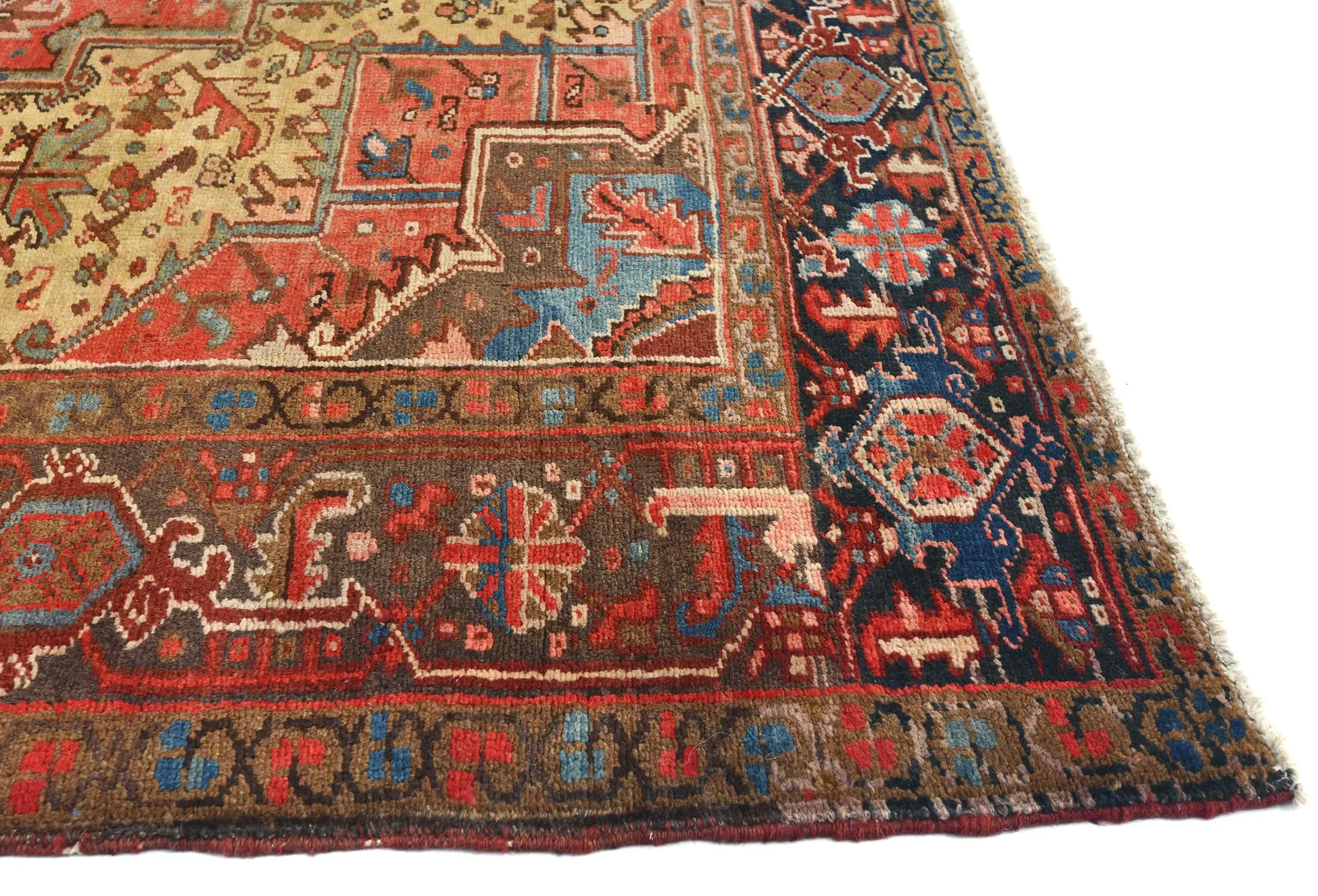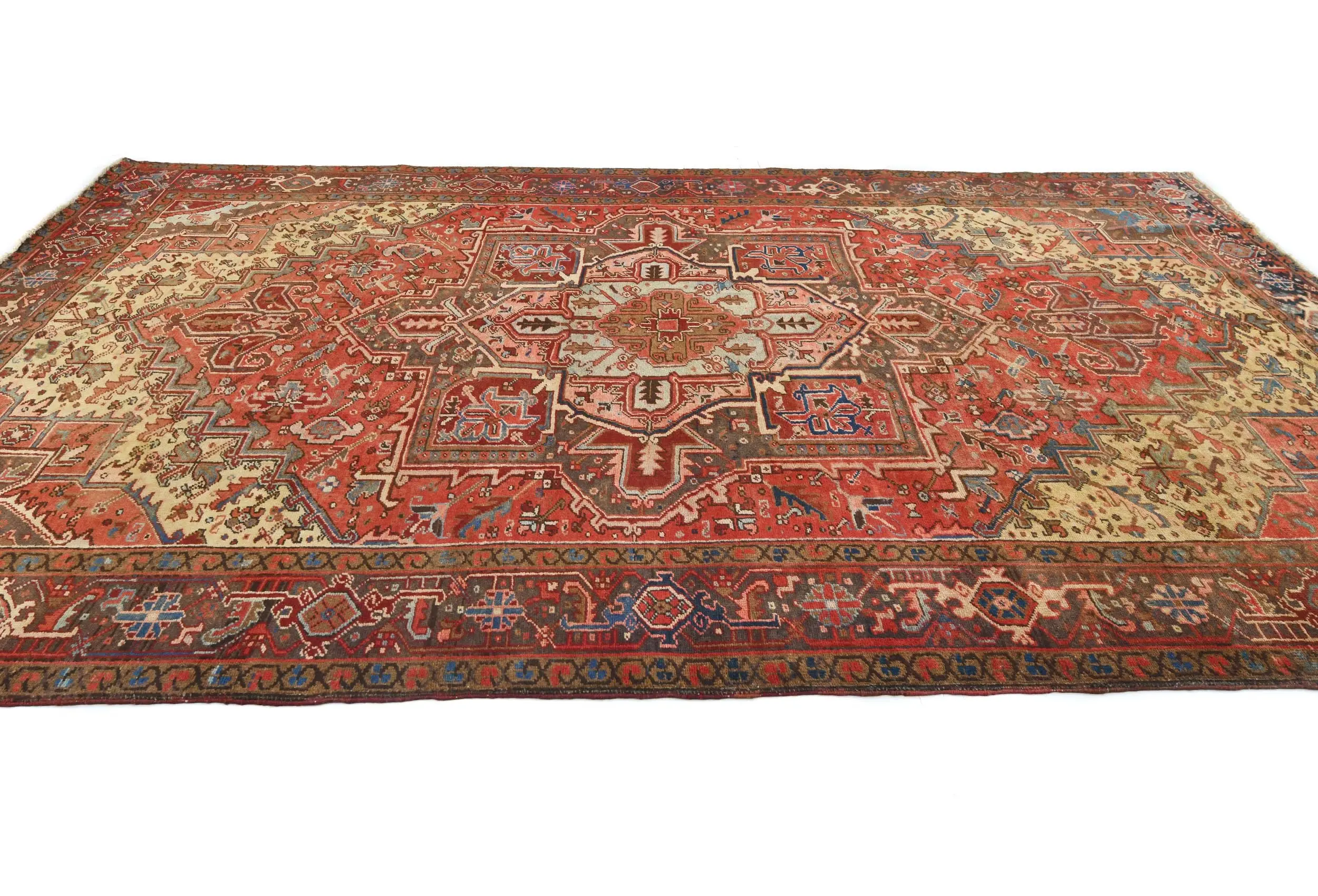 This authentic 7'7X11'2 Red vintage Persian rug was finely knotted by the hands of weavers influenced by a variety of amazing artistic designs, to recreate the aged look of the exceptional piece with a richness of color and embellished floral background field. What set this traditional Oriental area rug from the others are the material and dye used (wool pile and cotton foundation), knot count, antique designs, fantastic grades, and its regional historical connection: it has deep roots, from the story of the people who produced it to the meaning of the symbols and colors displayed across its canvas that have been praised for centuries. This classic home décor carpet will be completely cozy and inviting that never will go out of style! Also, this Oriental rug would be among your most valuable treasures, it is a great investment that increase in value over time, and it will last a lifetime because was woven with high-quality, all-natural wool; it won’t rip, tear, or shed. Eco-friendly, opulent yet affordable; this Persian rug will give you an extra pop of character to help define your home environment with luxury and warmth that will capture the eyes and attention of your audience (homeowners, designers, decorators, family and friends).