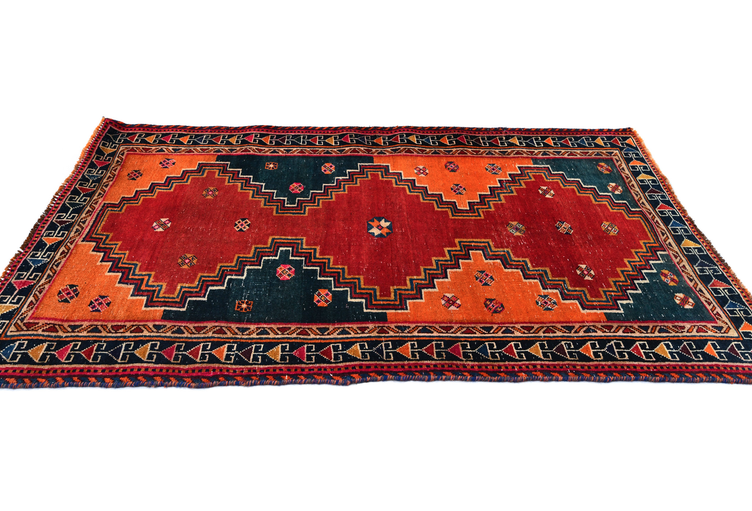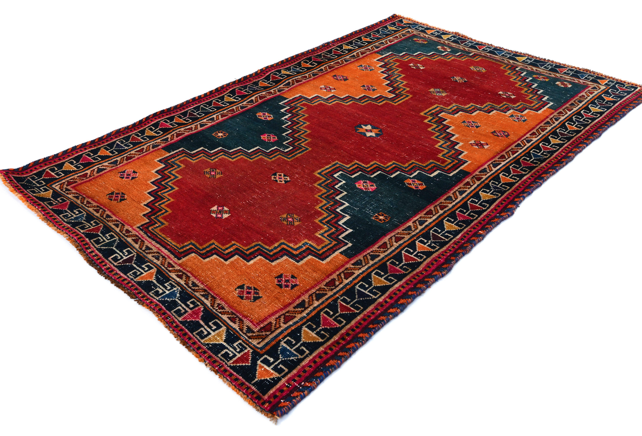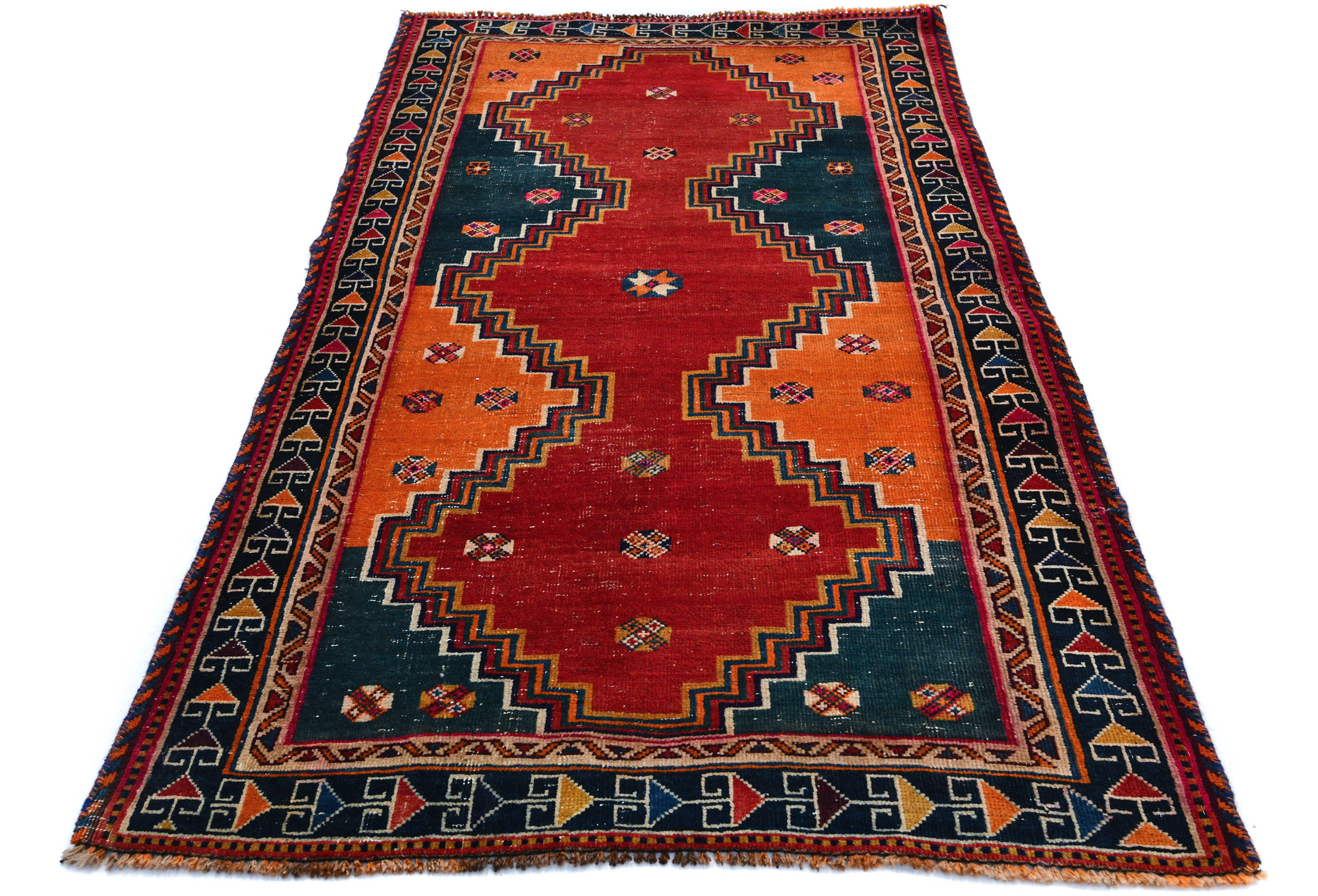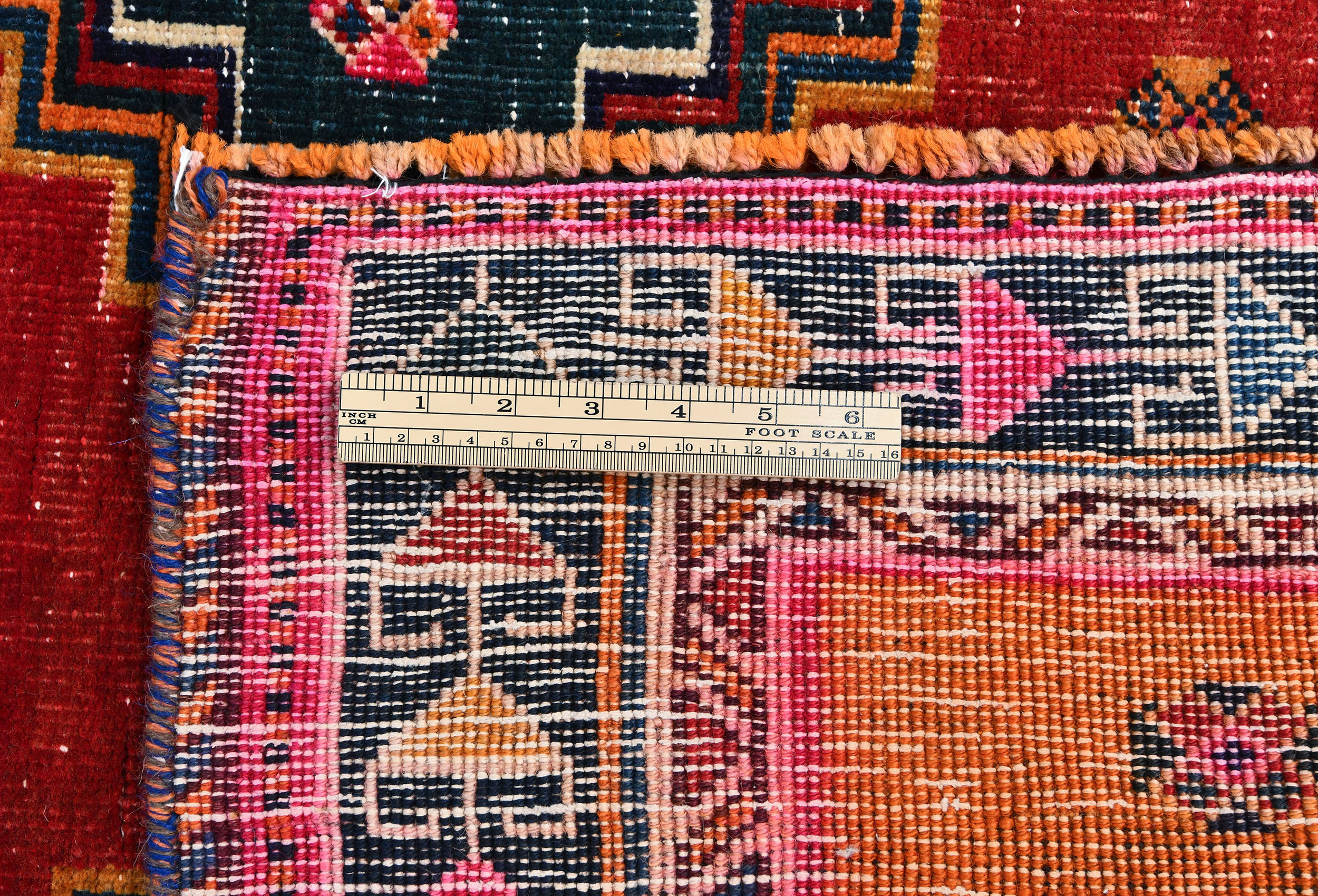 This authentic 3'7X6 red vintage Oriental rug was finely knotted by the hands of weavers influenced by a variety of amazing artistic designs, to recreate the aged look of the exceptional piece with a richness of color and embellished background field. What set this tribal Oriental area rug from the others are the material and dye used (wool pile and cotton foundation), knot count, antique designs, fantastic grades, and its regional historical connection: it has deep roots, from the story of the people who produced it to the meaning of the symbols and colors displayed across its canvas that have been praised for centuries. This home décor carpet will be completely cozy and inviting that never will go out of style! Also, this Oriental rug would be among your most valuable treasures, it is a great investment that increase in value over time, and it will last a lifetime because was woven with high-quality, all-natural wool; it won’t rip, tear, or shed. Eco-friendly, opulent yet affordable; this Persian rug will give you an extra pop of character to help define your home environment with luxury and warmth that will capture the eyes and attention of your audience (homeowners, designers, decorators, family and friends).