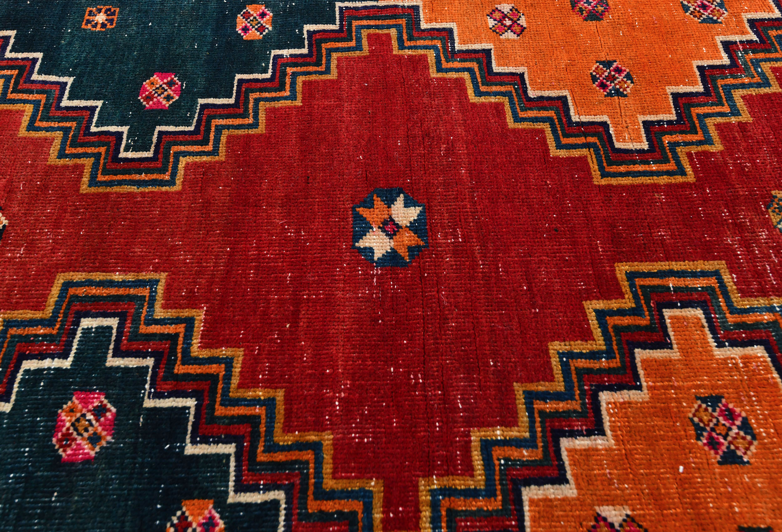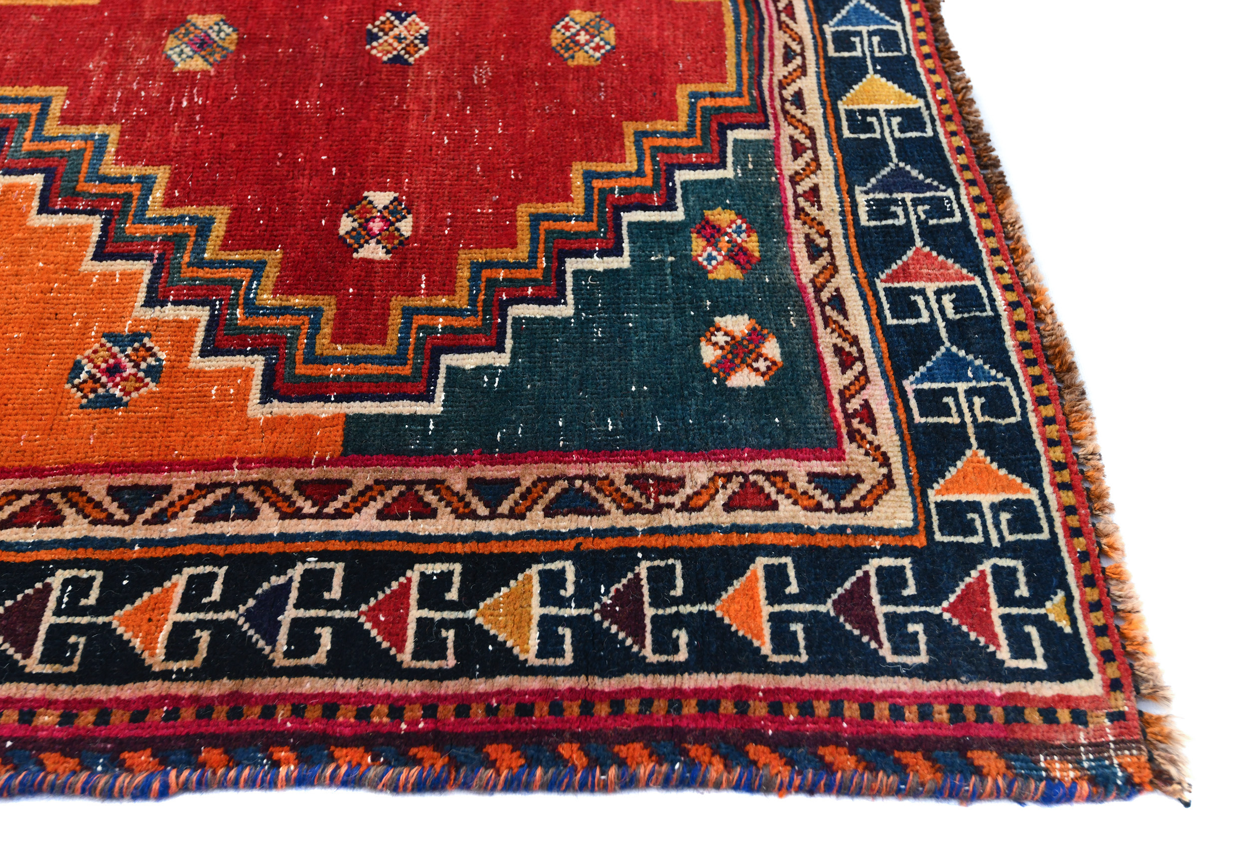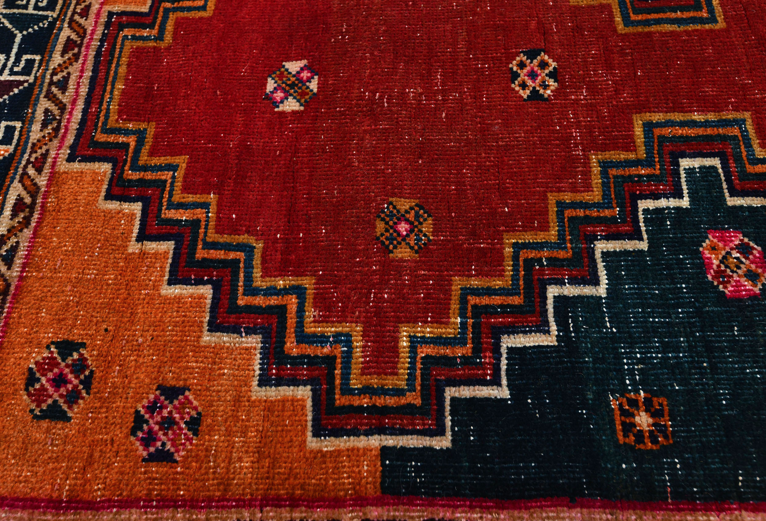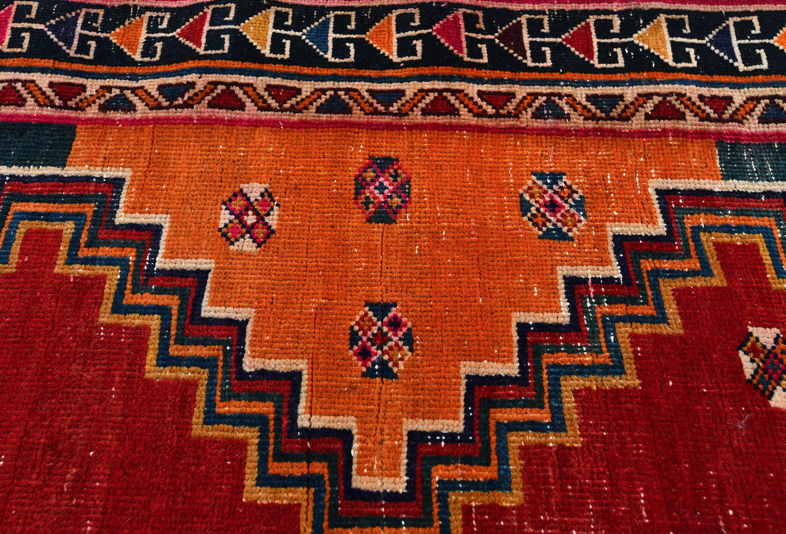 This authentic 3'7X6 red vintage Oriental rug was finely knotted by the hands of weavers influenced by a variety of amazing artistic designs, to recreate the aged look of the exceptional piece with a richness of color and embellished background field. What set this tribal Oriental area rug from the others are the material and dye used (wool pile and cotton foundation), knot count, antique designs, fantastic grades, and its regional historical connection: it has deep roots, from the story of the people who produced it to the meaning of the symbols and colors displayed across its canvas that have been praised for centuries. This home décor carpet will be completely cozy and inviting that never will go out of style! Also, this Oriental rug would be among your most valuable treasures, it is a great investment that increase in value over time, and it will last a lifetime because was woven with high-quality, all-natural wool; it won’t rip, tear, or shed. Eco-friendly, opulent yet affordable; this Persian rug will give you an extra pop of character to help define your home environment with luxury and warmth that will capture the eyes and attention of your audience (homeowners, designers, decorators, family and friends).