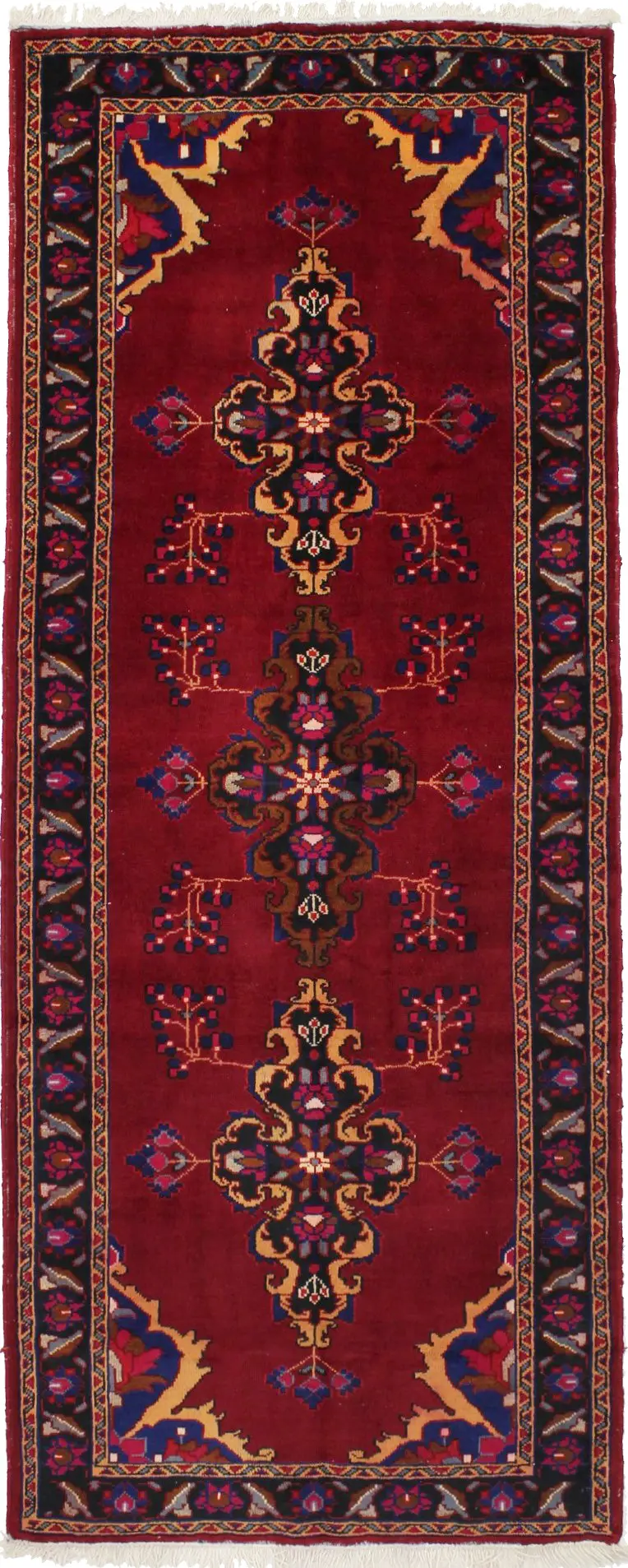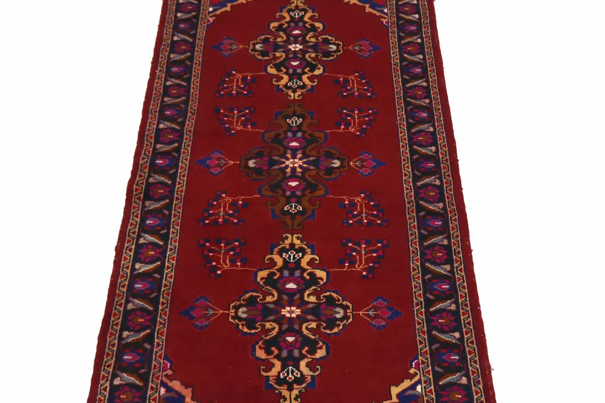 Semi Antique Red Tribal 4X10 Hamedan Persian Runner Rug