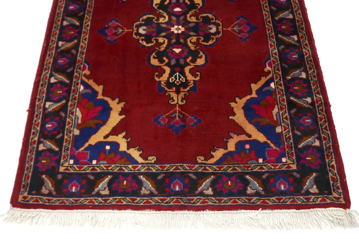 This genuine 4X10 Red vintage Persian runner was made by the hands of talented weavers influenced by a variety of gorgeous symmetrical artistic designs, to recreate the aged look of the unique piece with a richness of color and very balanced background field. What set this tribal Oriental area runner from the others are the material and dye used (wool pile and cotton foundation), knot count, antique designs, fantastic grades, and its regional historical connection: it has deep roots, from the story of the people who produced it to the meaning of the symbols and colors displayed across its canvas that have been praised for centuries. This home décor carpet will be completely cozy and inviting that never will go out of style! Also, this Oriental runner would be among your most valuable treasures, it is a great investment that accrues value over time, and it will last a lifetime because was woven with high-quality, all-natural wool; it won’t rip, tear, or shed. Eco-friendly, opulent yet affordable; this Persian rug will give you an extra pop of character to help define your home environment with sophistication and warmth that will capture the eyes and attention of your audience (homeowners, designers, decorators, family and friends). RT-2786