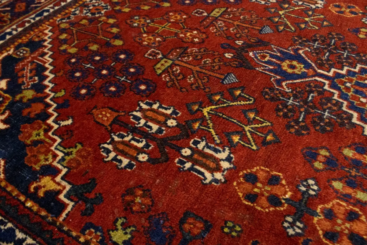 This original 4X7 red vintage Persian rug was crafted by the hands of skilled weavers enthused by a variety of lovely artistic designs, to recreate the aged look of the unique piece with a richness of color and beautifully elaborated background field. What set this tribal Oriental area rug from the others are the material and dye used (wool pile and cotton foundation), knot count, ancient designs, fantastic grades, and its regional historical connection: it has deep roots, from the story of the people who produced it to the meaning of the symbols and colors displayed across its canvas that have been praised for centuries. This home décor carpet will be completely cozy and inviting that never will go out of style! Also, this Oriental rug/runner would be among your most valuable treasures, it is a great investment that increase in value over time, and it will last for generations because was woven with high-quality, all-natural wool; it won’t rip, tear, or shed. Environmentally friendly, opulent yet affordable; this Persian rug will give you a thorough amount of character to help define your living space with sophistication and warmth that will capture the eyes and attention of your audience (homeowners, designers, decorators, family and friends). RT-2193