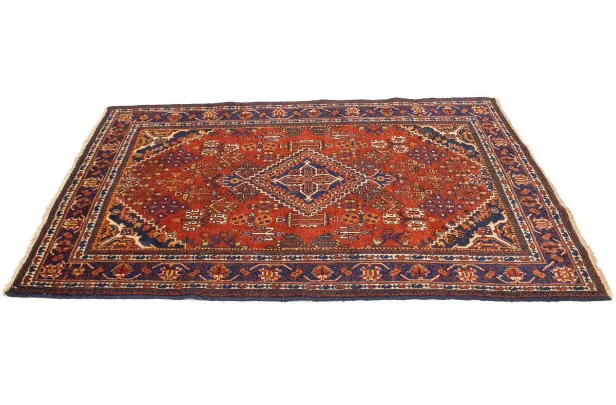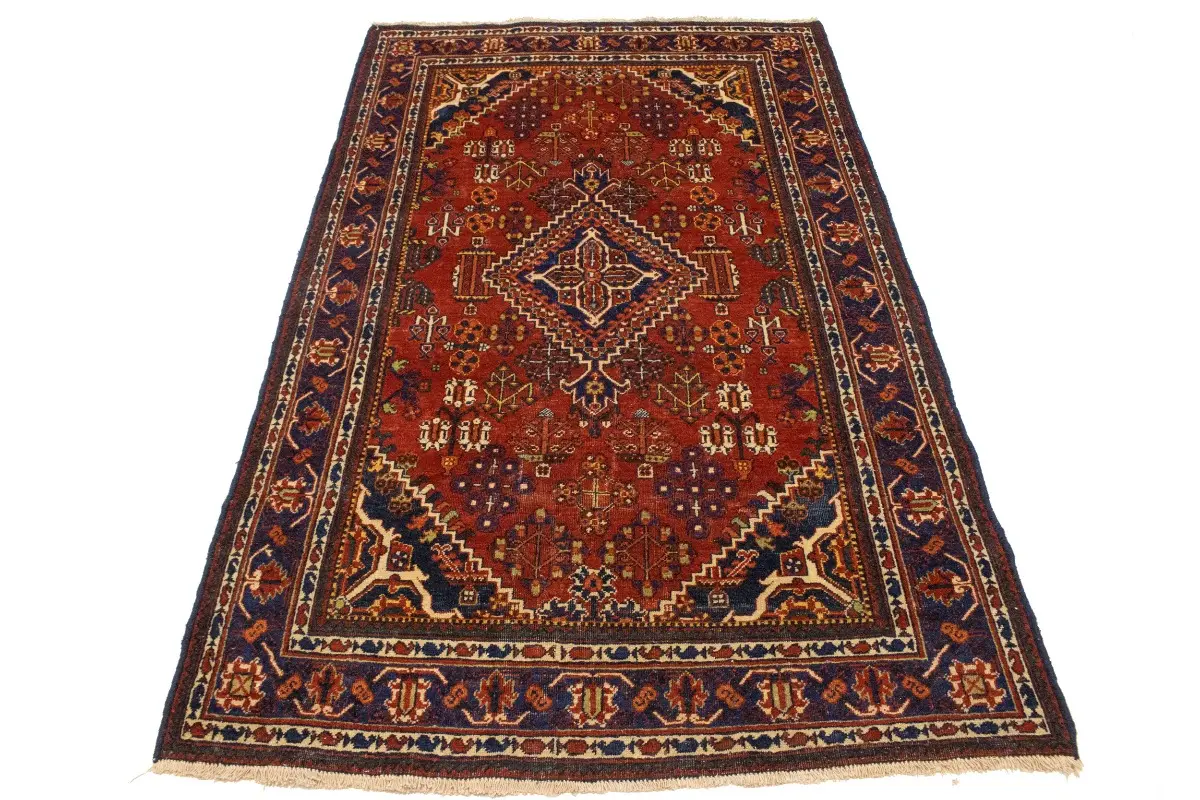 Handmade semi antique 4X7 red Persian rug made with natural dyes (fine wool pile and cotton foundation), superior knot count, and alluring ancient designs. This Oriental rug never will go out of style and would be among your most valuable treasures.