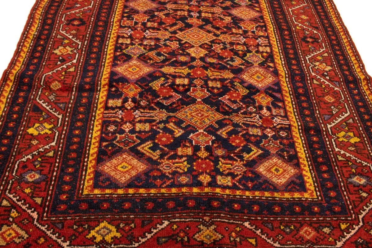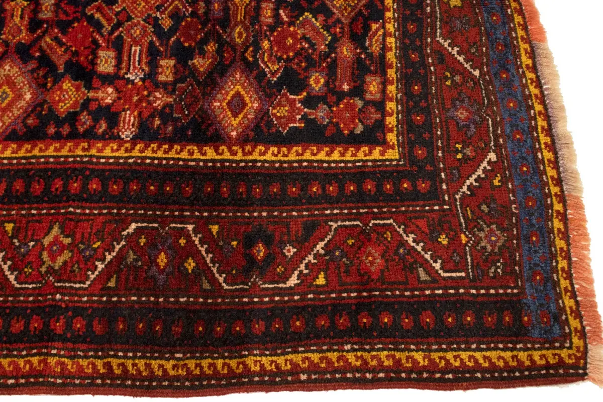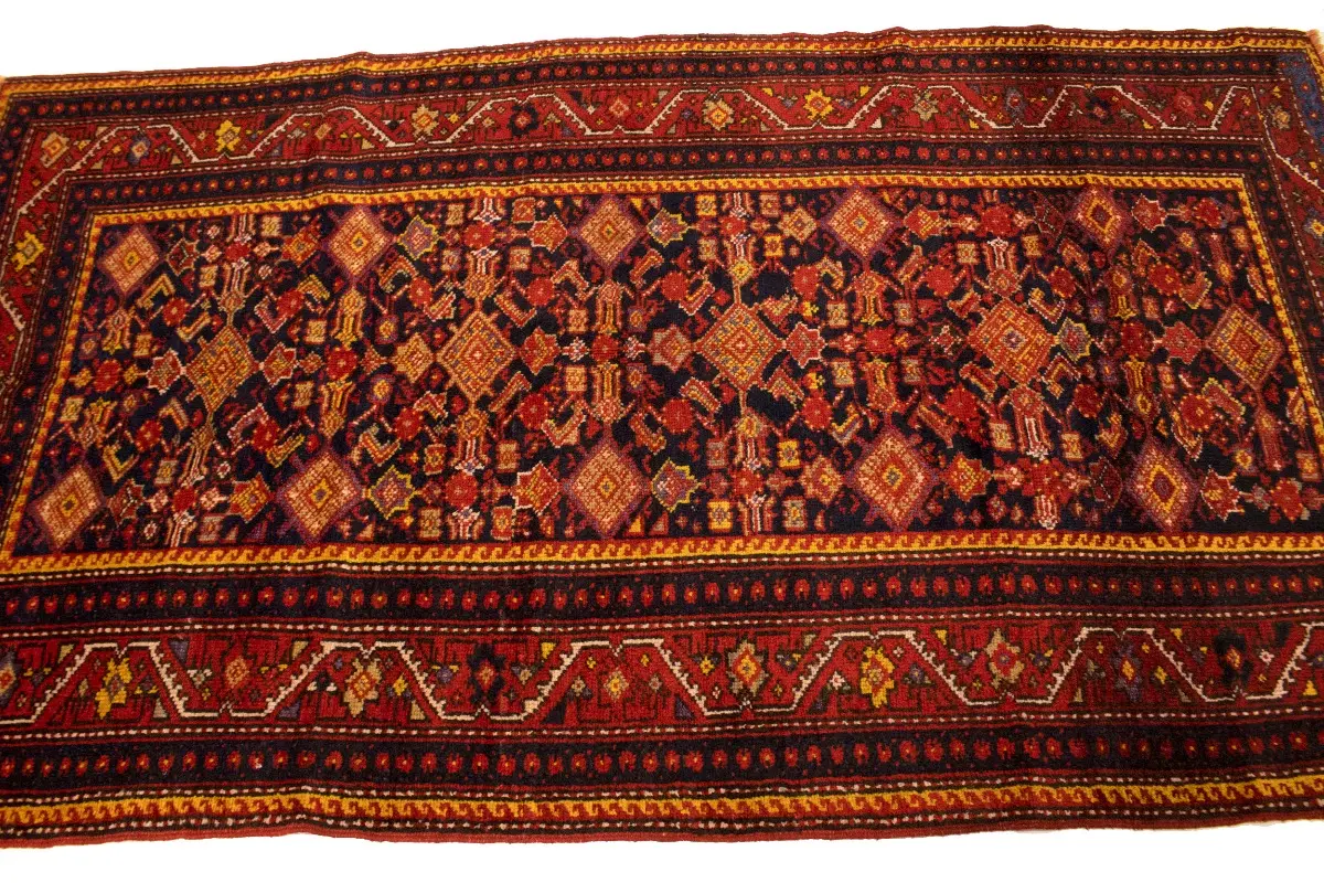 Handmade semi antique 4X7 dark purple Persian rug made with vegetable dyes (fine wool pile and cotton foundation), superior knot count, and appealing ancient designs. This Oriental rug never will go out of style and would be among your most valuable treasures.