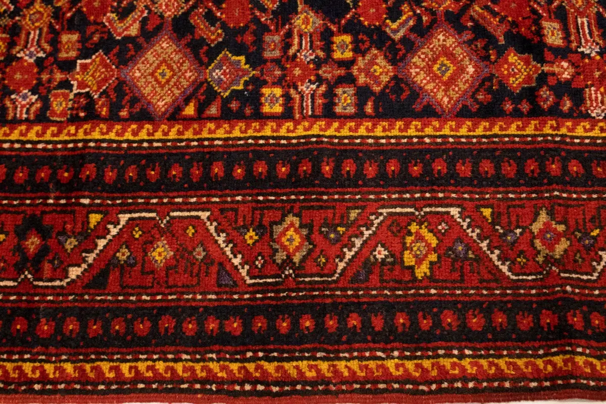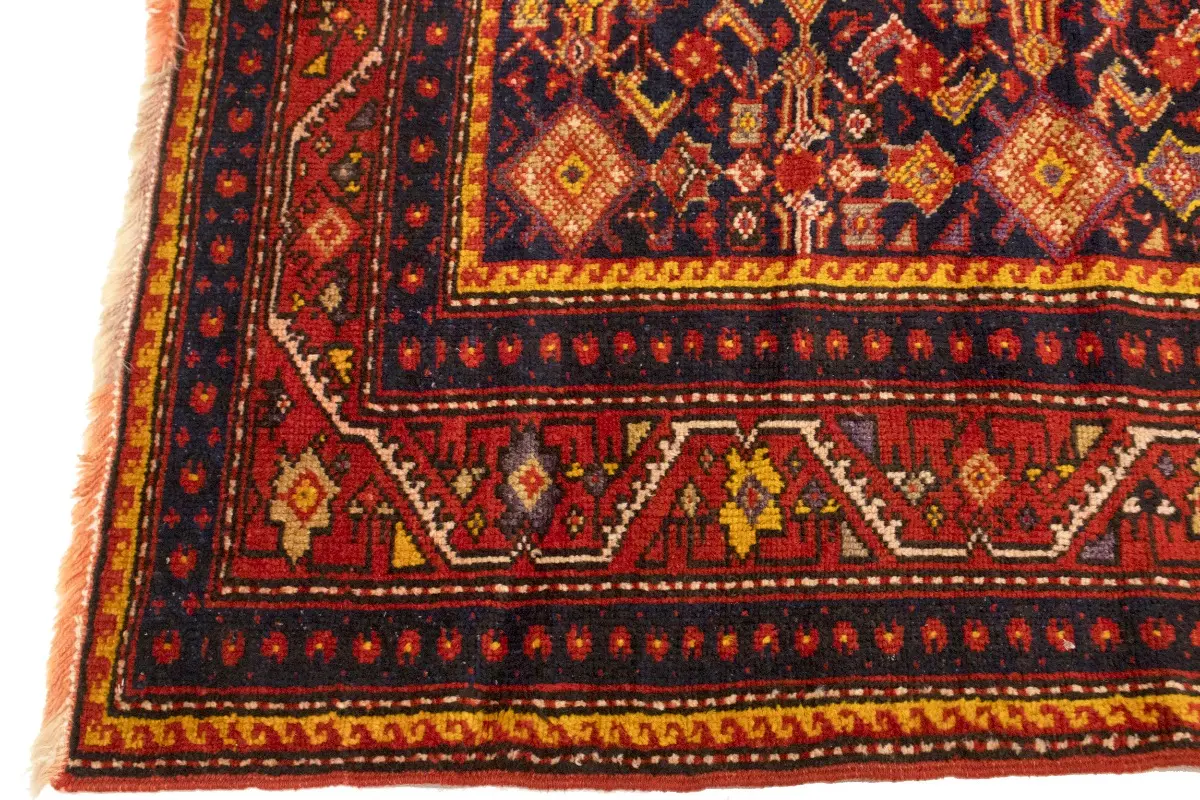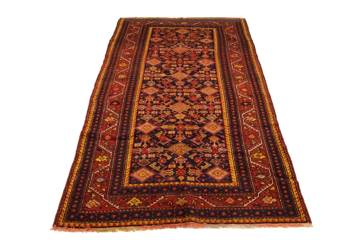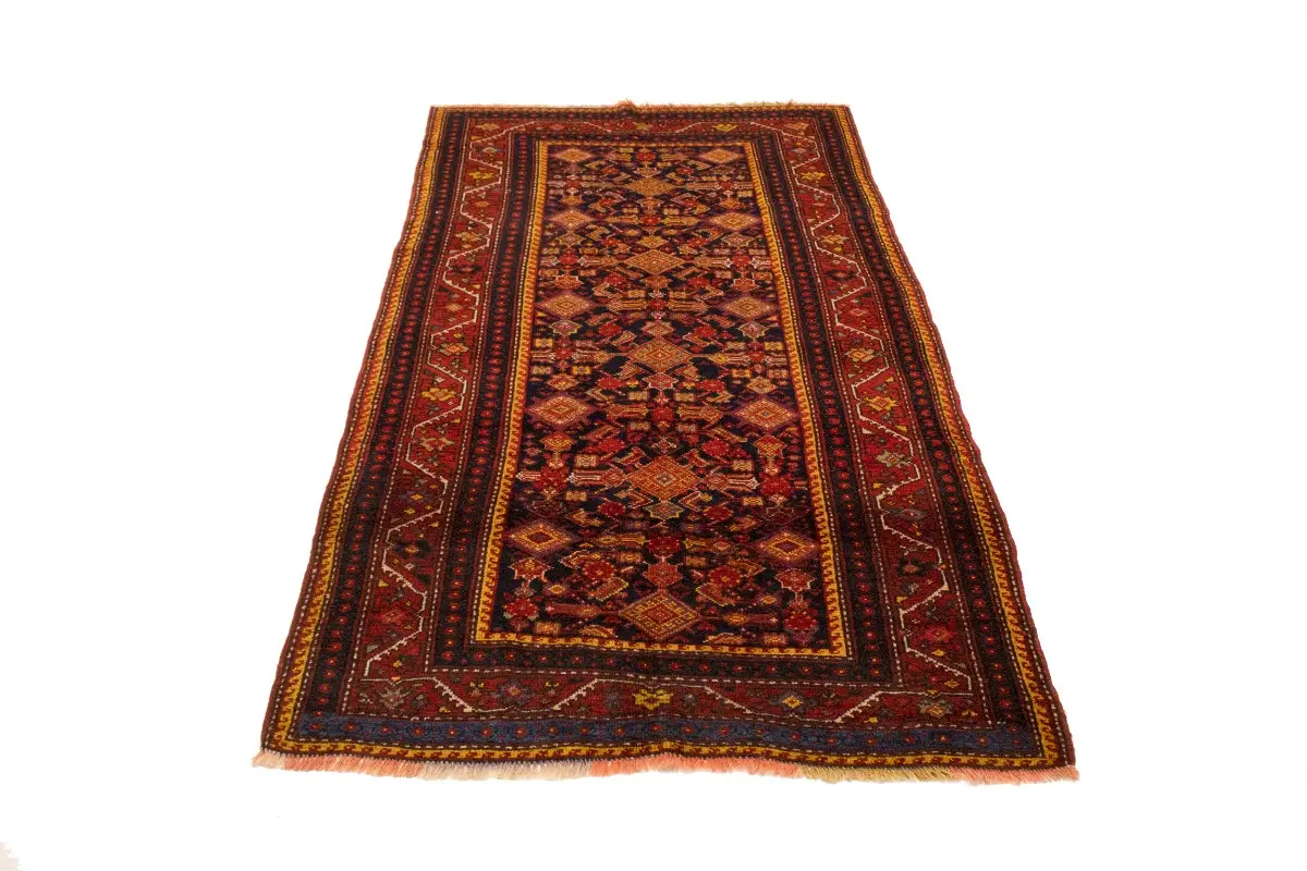 Handmade semi antique 4X7 dark purple Persian rug made with vegetable dyes (fine wool pile and cotton foundation), superior knot count, and appealing ancient designs. This Oriental rug never will go out of style and would be among your most valuable treasures.