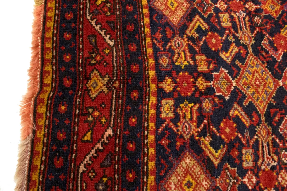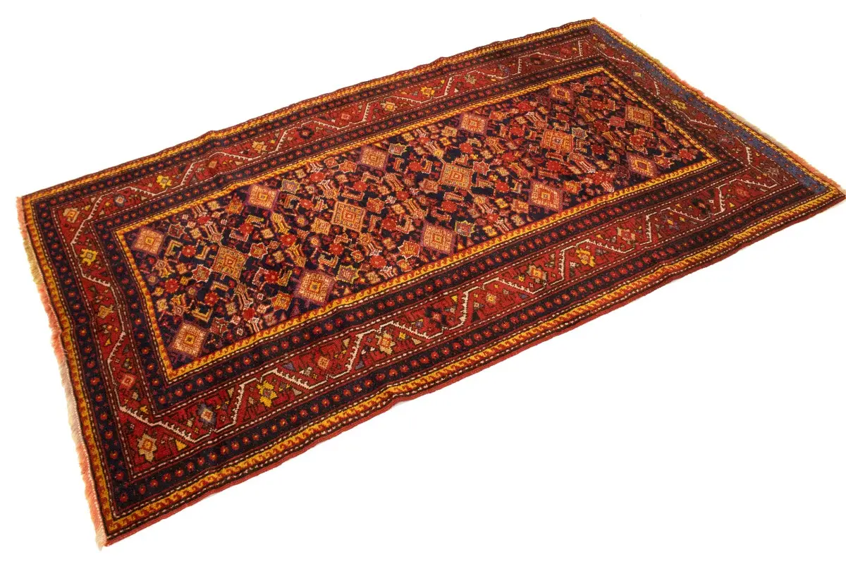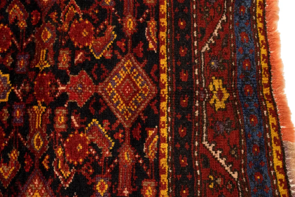 This authentic 4X7 dark purple vintage Persian rug was finely knotted by the hands of weavers influenced by a variety of amazing artistic designs, to recreate the aged look of the exceptional piece with a richness of color and embellished background field. What set this tribal Oriental area rug from the others are the material and dye used (wool pile and cotton foundation), knot count, antique designs, fantastic grades, and its regional historical connection: it has deep roots, from the story of the people who produced it to the meaning of the symbols and colors displayed across its canvas that have been praised for centuries. This home décor carpet will be completely cozy and inviting that never will go out of style! Also, this Oriental rug would be among your most valuable treasures, it is a great investment that increase in value over time, and it will last a lifetime because was woven with high-quality, all-natural wool; it won’t rip, tear, or shed. Eco-friendly, opulent yet affordable; this Persian rug will give you an extra pop of character to help define your home environment with luxury and warmth that will capture the eyes and attention of your audience (homeowners, designers, decorators, family and friends). RT-1914