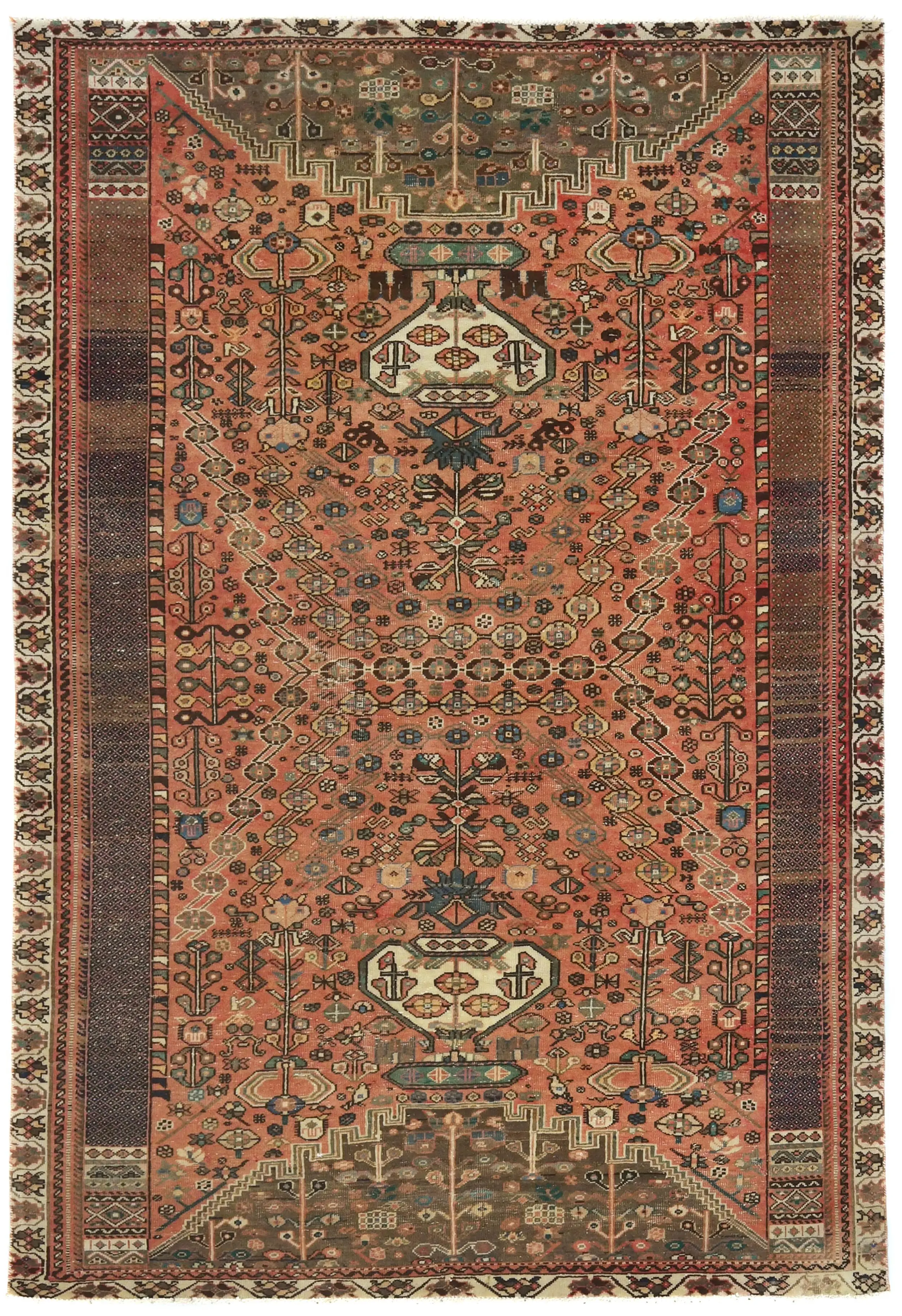 Semi Antique Red Tribal 5'6X8'0 Shiraz Persian Rug