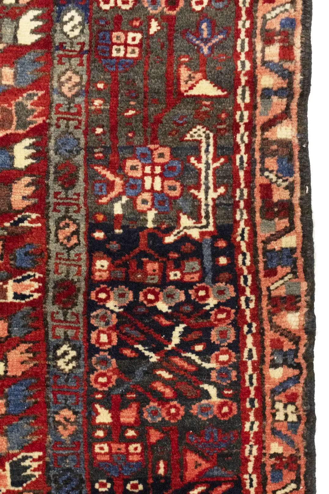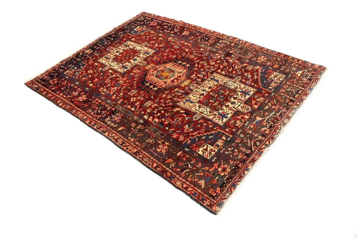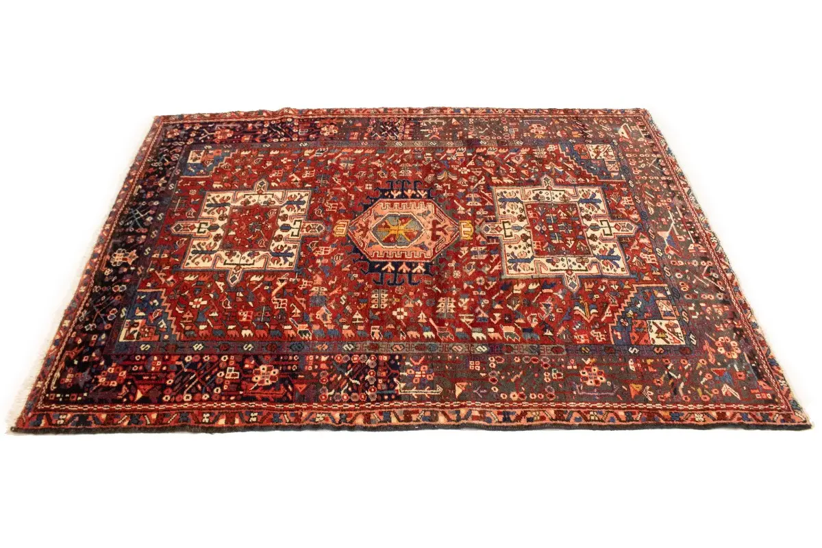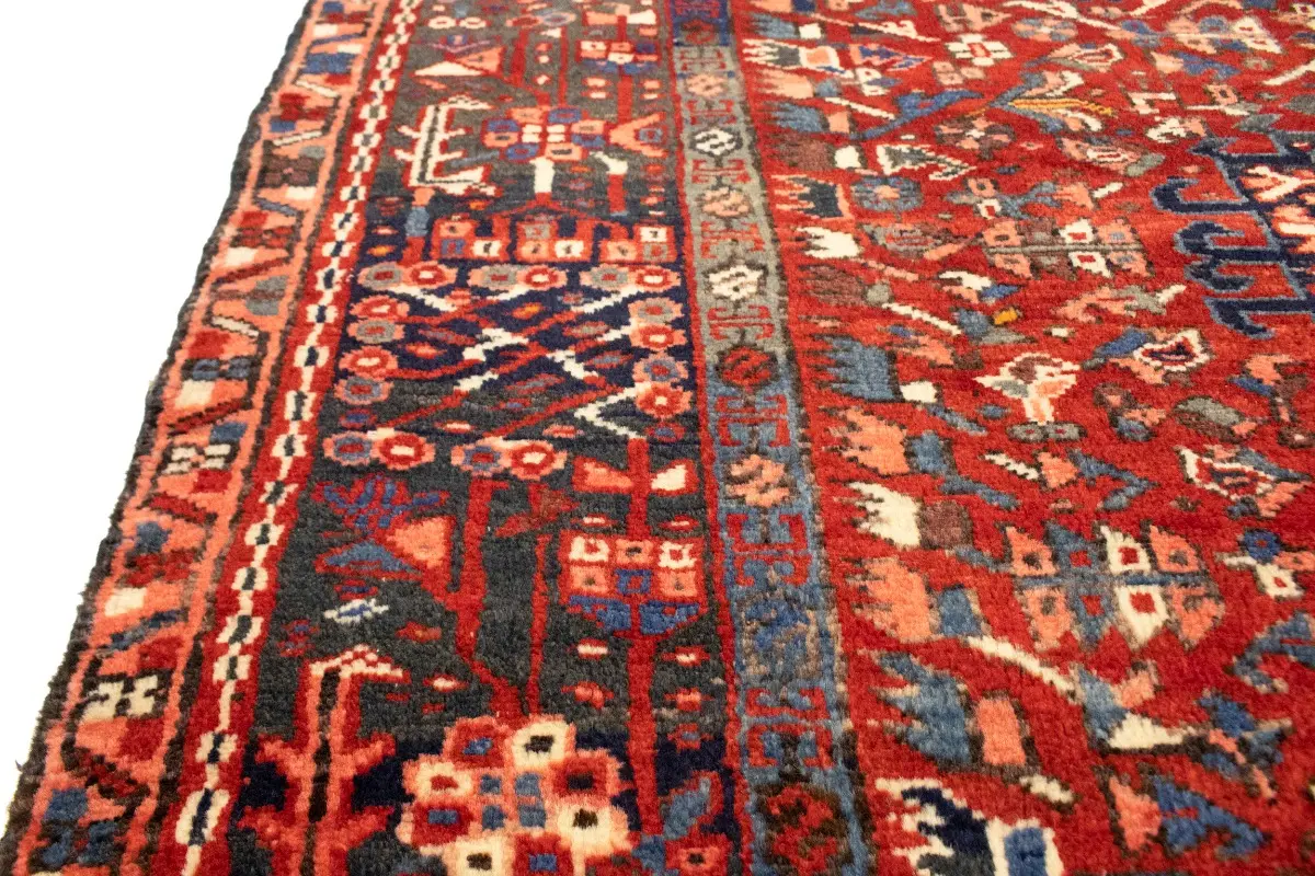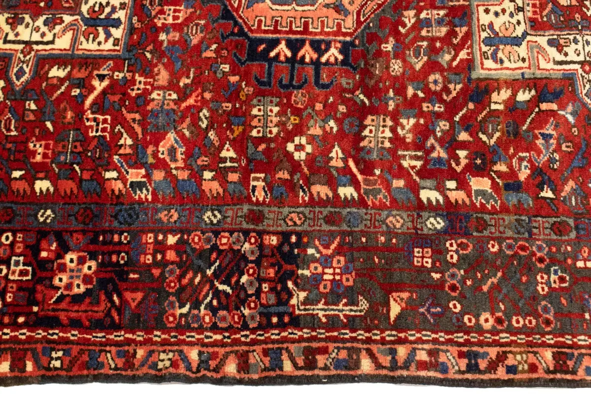 Handmade semi antique 5X6 red Persian rug made with vegetable dyes (fine wool pile and cotton foundation), exceptional knot count, and appealing ancient designs. This Oriental rug never will go out of style and would be among your most valuable treasures.