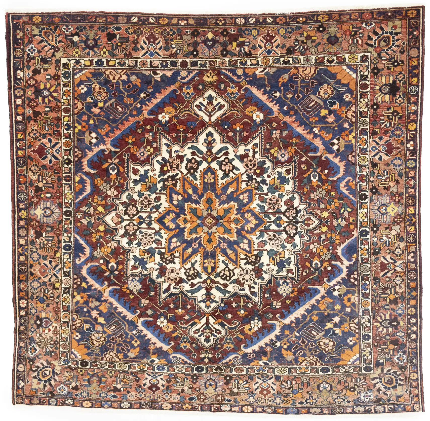 Semi Antique Rusty Brown Floral 10X10 Bakhtiari Persian Square Rug