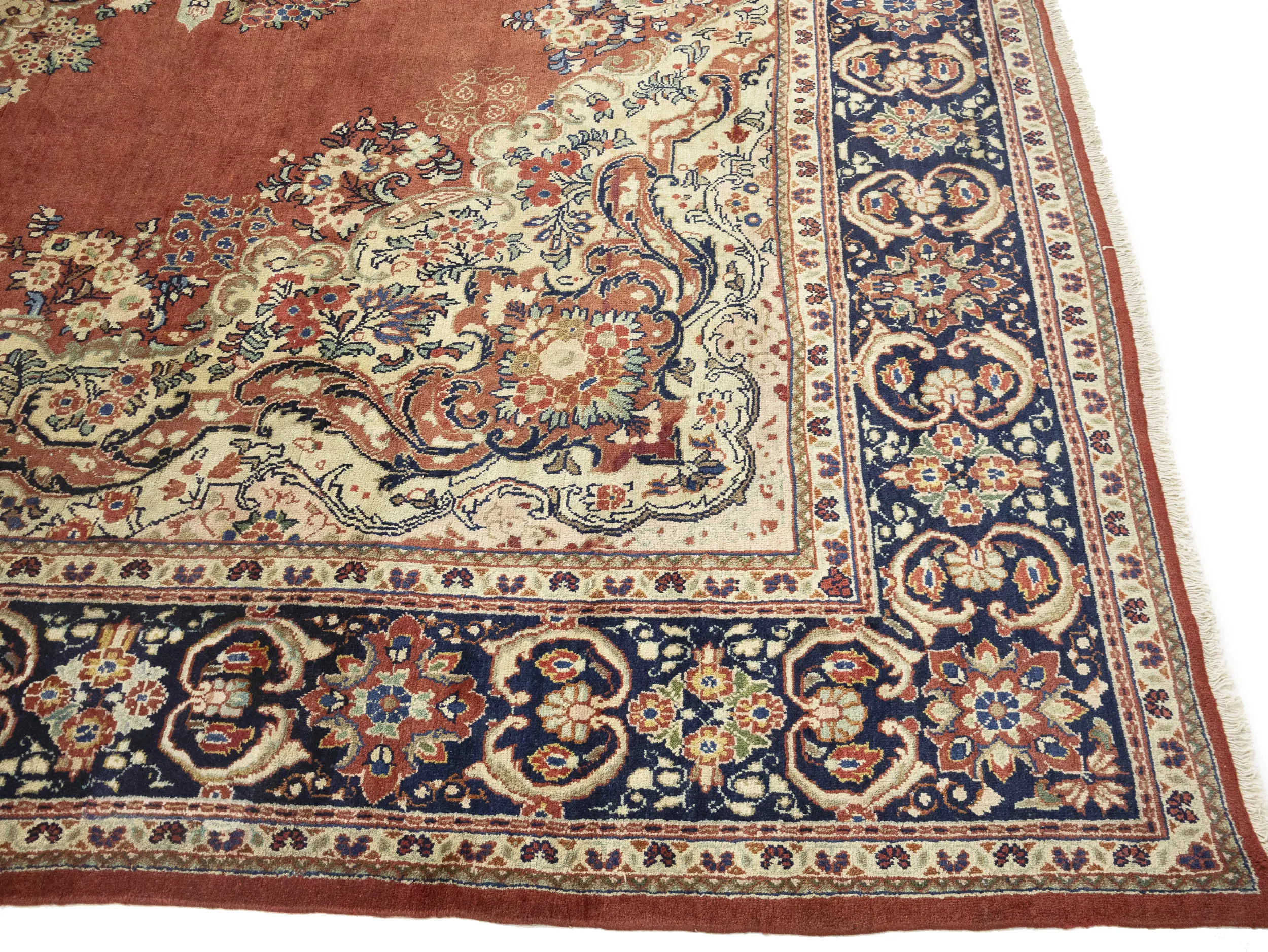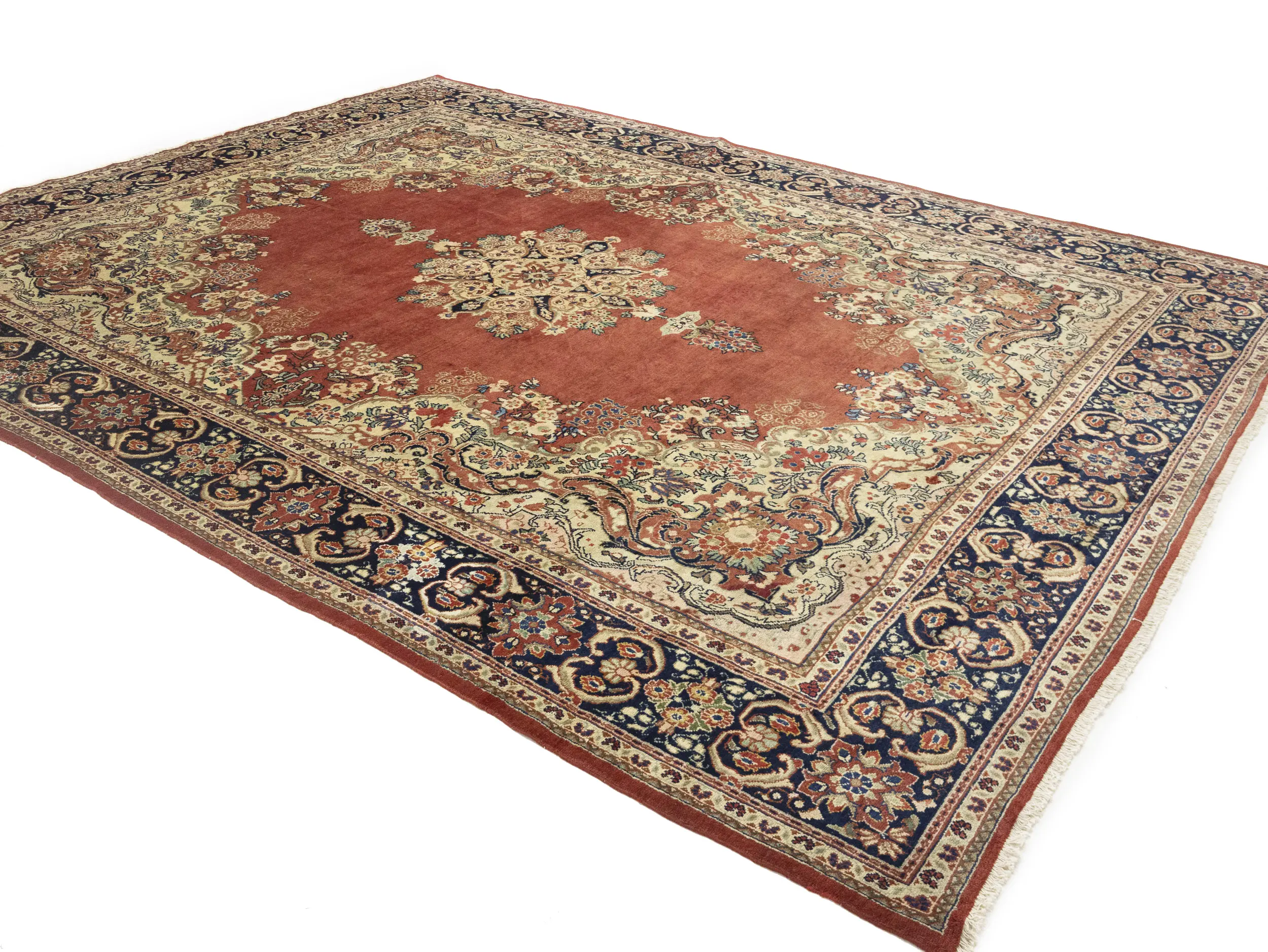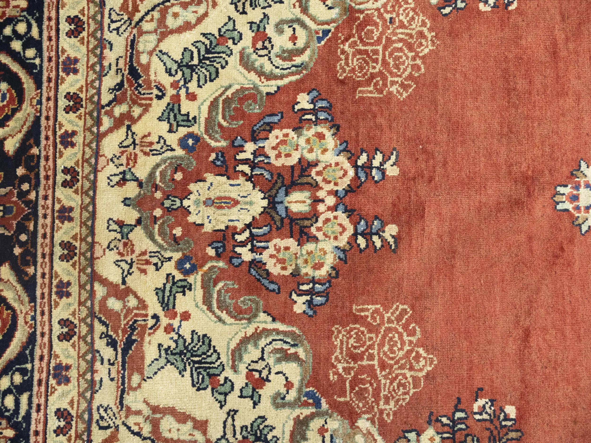 Handmade semi antique 10X13 rusty red Persian rug made with vegetable dyes (fine wool pile and cotton foundation), superior knot count, and appealing ancient designs. This Oriental rug never will go out of style and would be among your most valuable treasures.