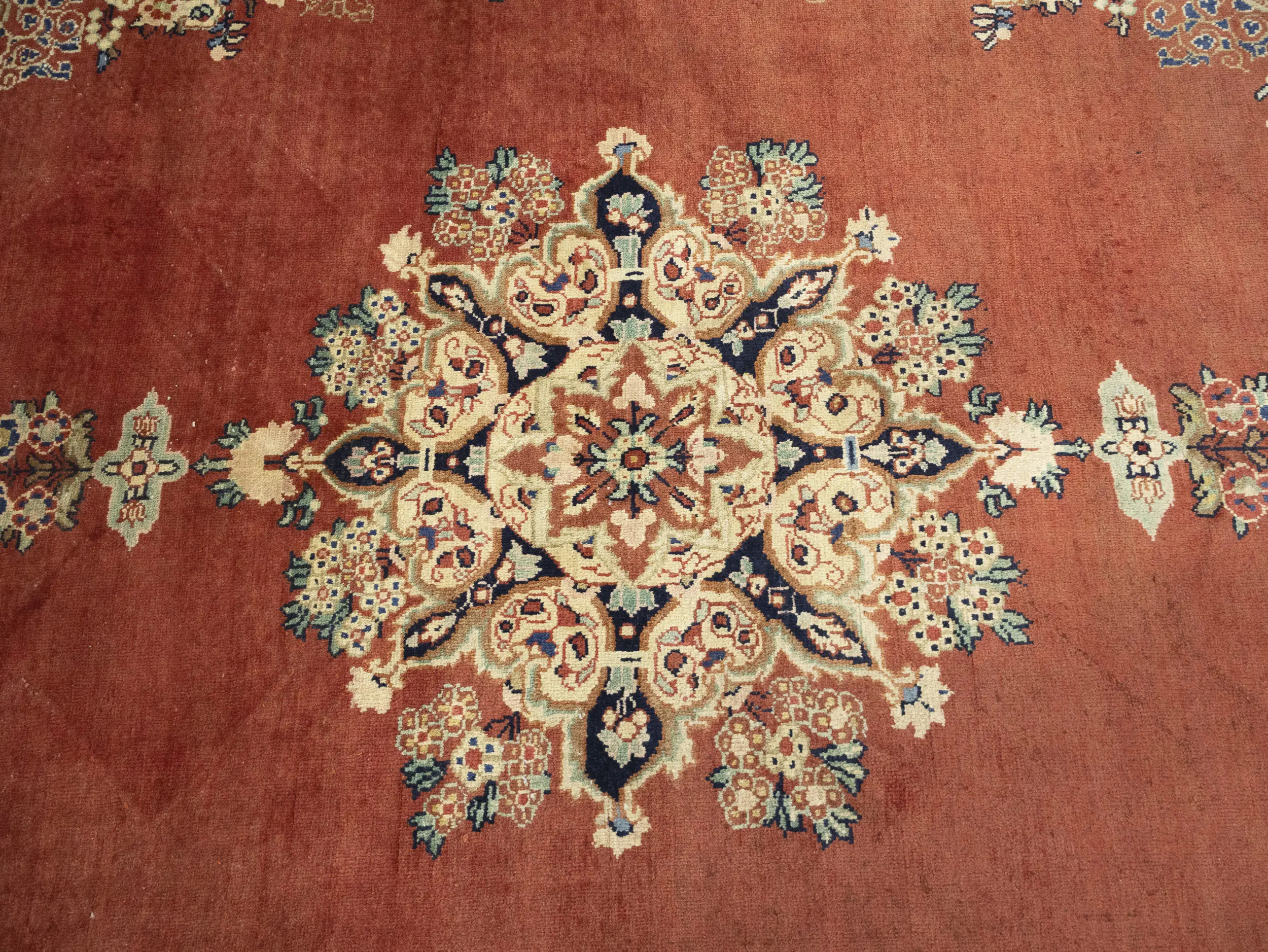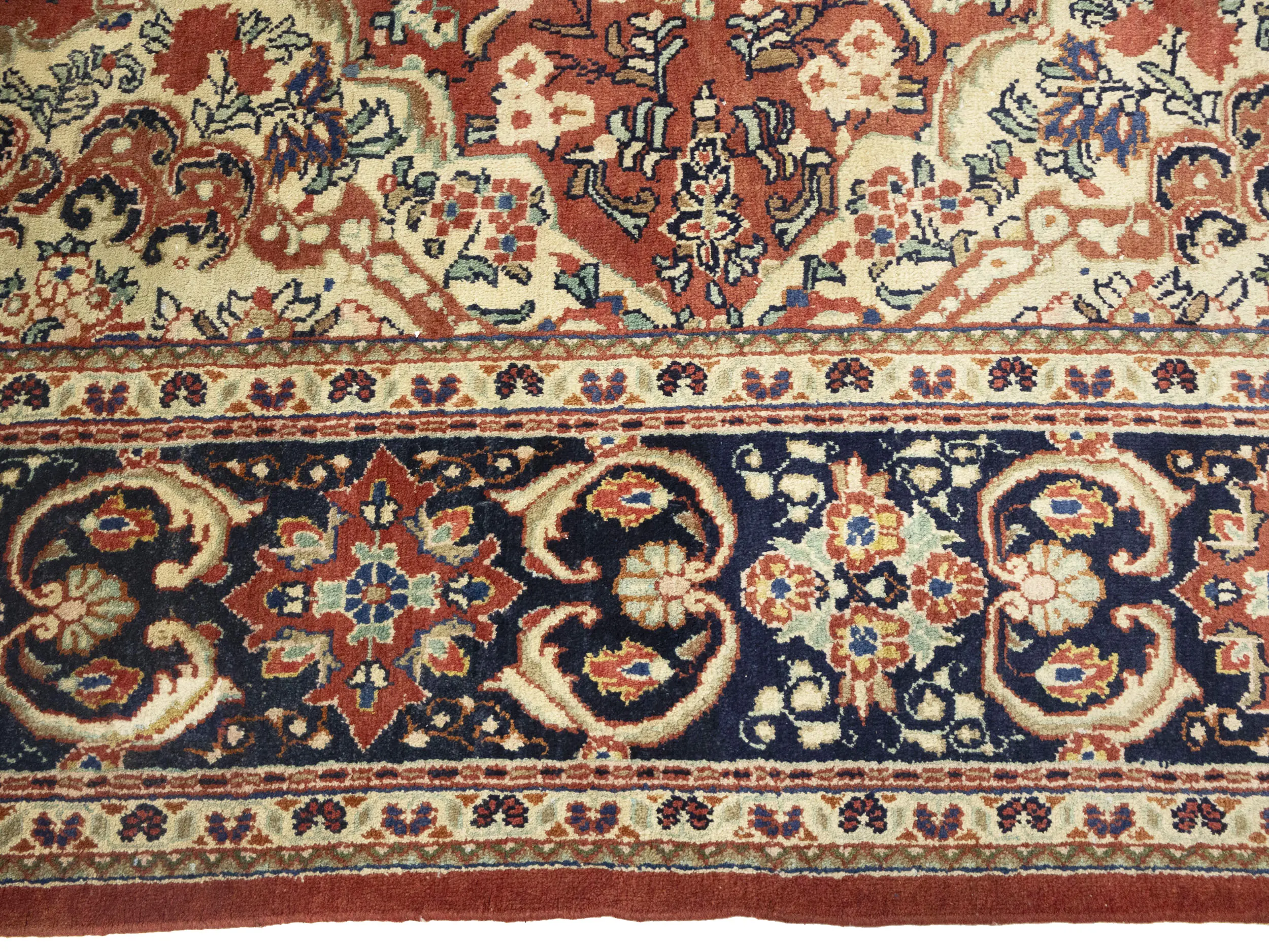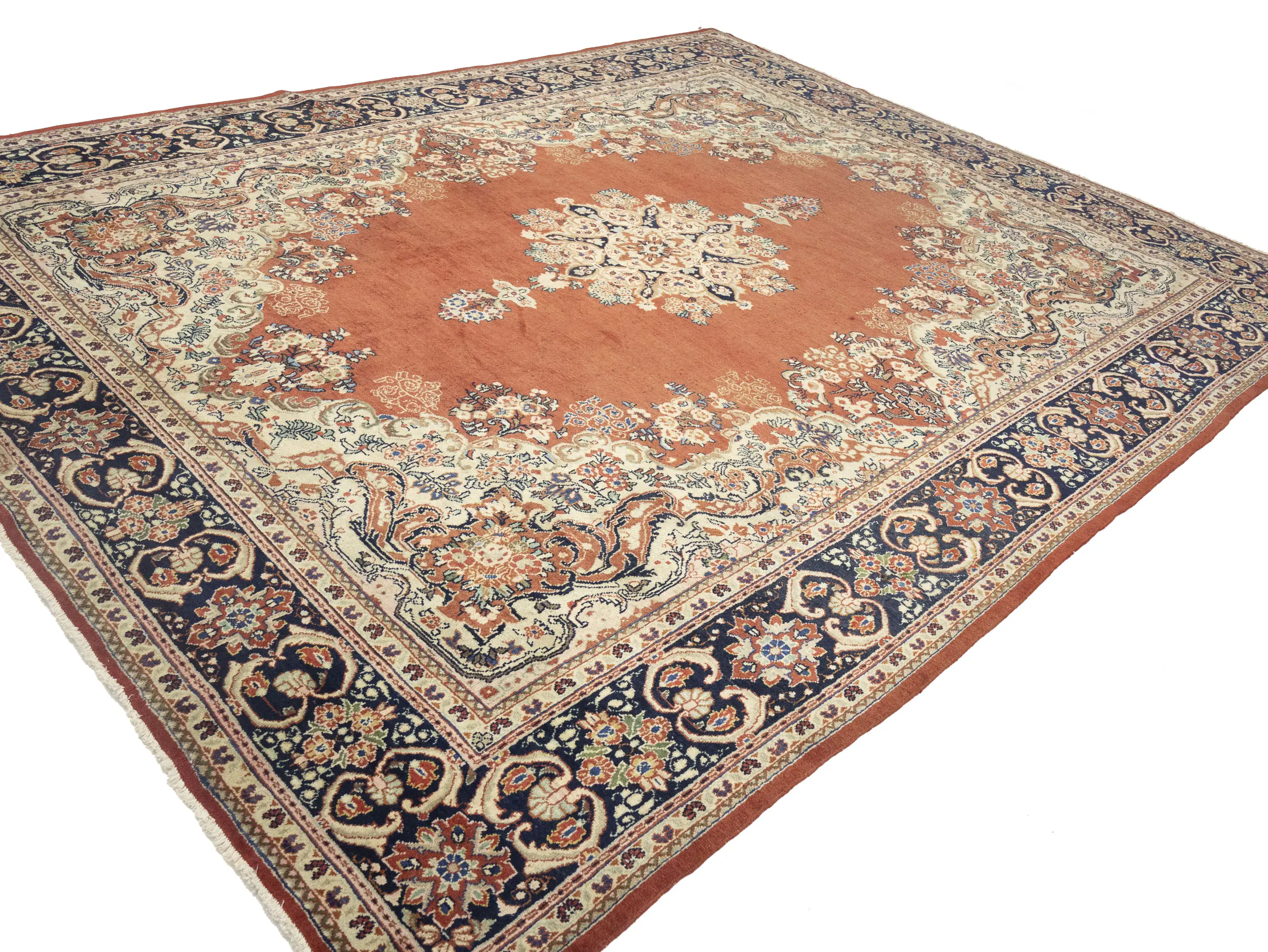 Handmade semi antique 10X13 rusty red Persian rug made with vegetable dyes (fine wool pile and cotton foundation), superior knot count, and appealing ancient designs. This Oriental rug never will go out of style and would be among your most valuable treasures.