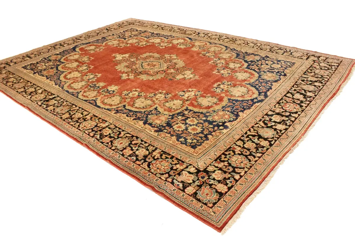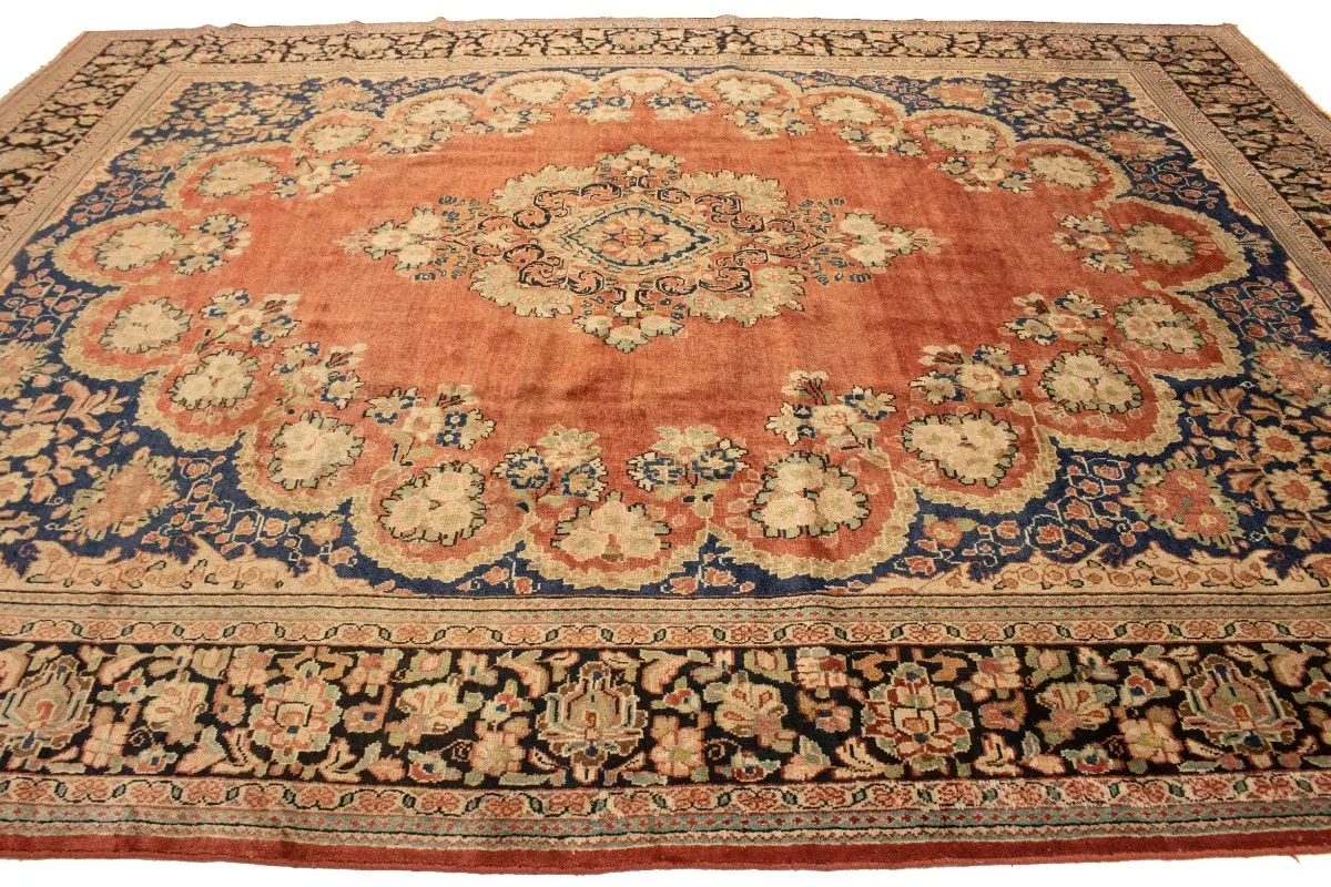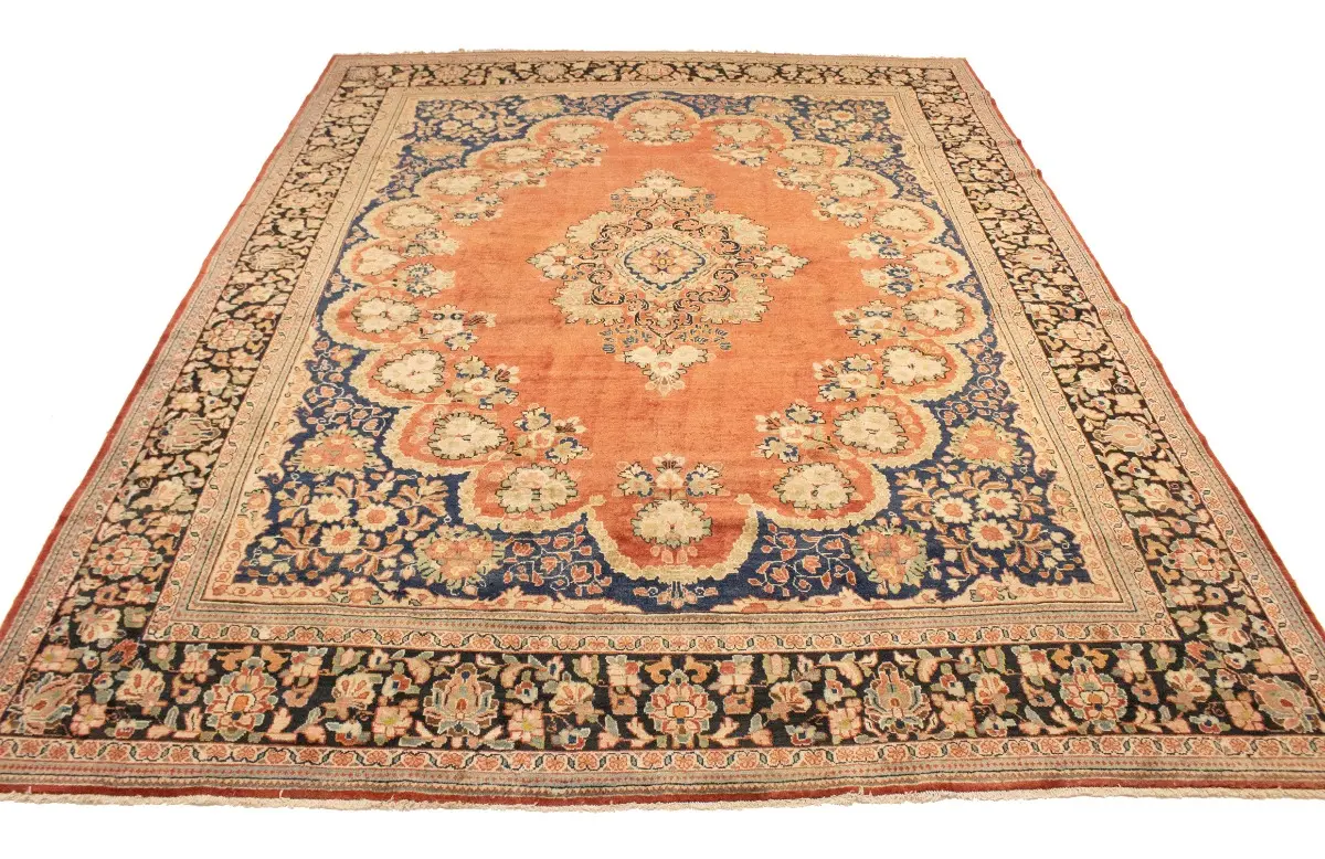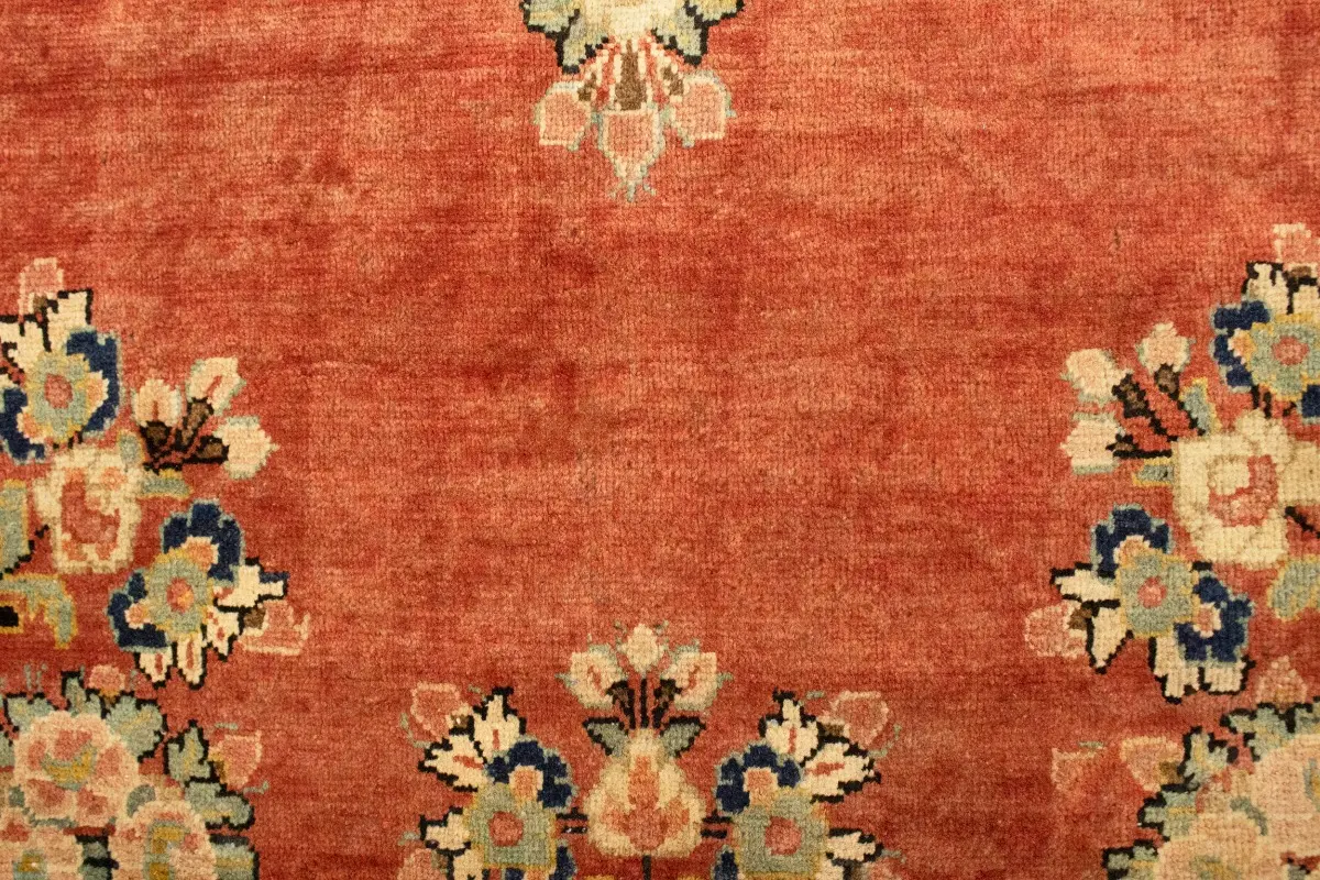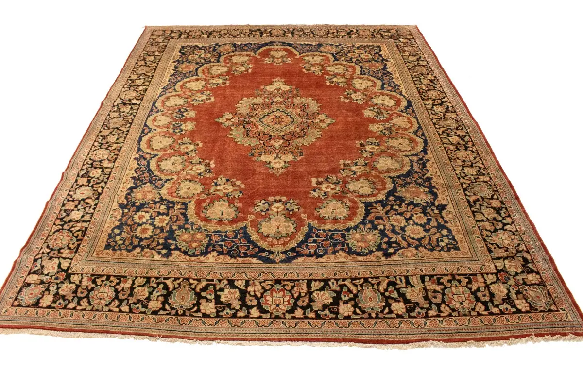 This genuine 10'4X13'6 red vintage Persian rug was made by the hands of gifted weavers inspired by a variety of spectacular artistic designs, to recreate the aged look of the original piece with a richness of color and ornately patterned floral background field. What set this traditional Oriental area rug from the others are the material and dye used (wool pile and cotton foundation), knot count, ancient designs, fantastic grades, and its regional historical connection: it has deep roots, from the story of the people who produced it to the meaning of the symbols and colors displayed across its canvas that have been praised for centuries. This classic home décor carpet will be completely cozy and inviting that never will go out of style! Also, this Oriental rug would be among your most valuable treasures, it is a great investment that accrues value over time, and it will last for generations because was woven with high-quality, all-natural wool; it won’t rip, tear, or shed. Environmentally friendly, opulent yet affordable; this Persian rug will give you a thorough amount of character to help define your living space with elegance and warmth that will capture the eyes and attention of your audience (homeowners, designers, decorators, family and friends). RT-2072