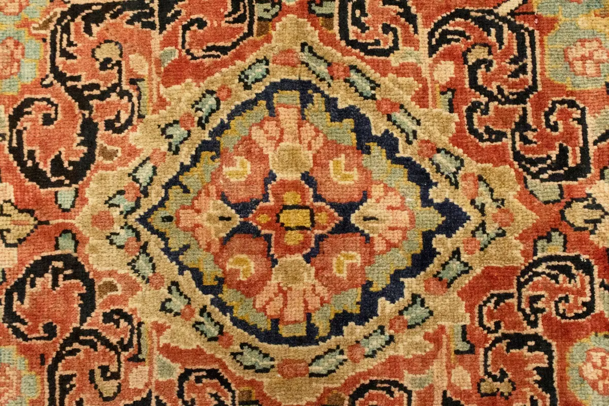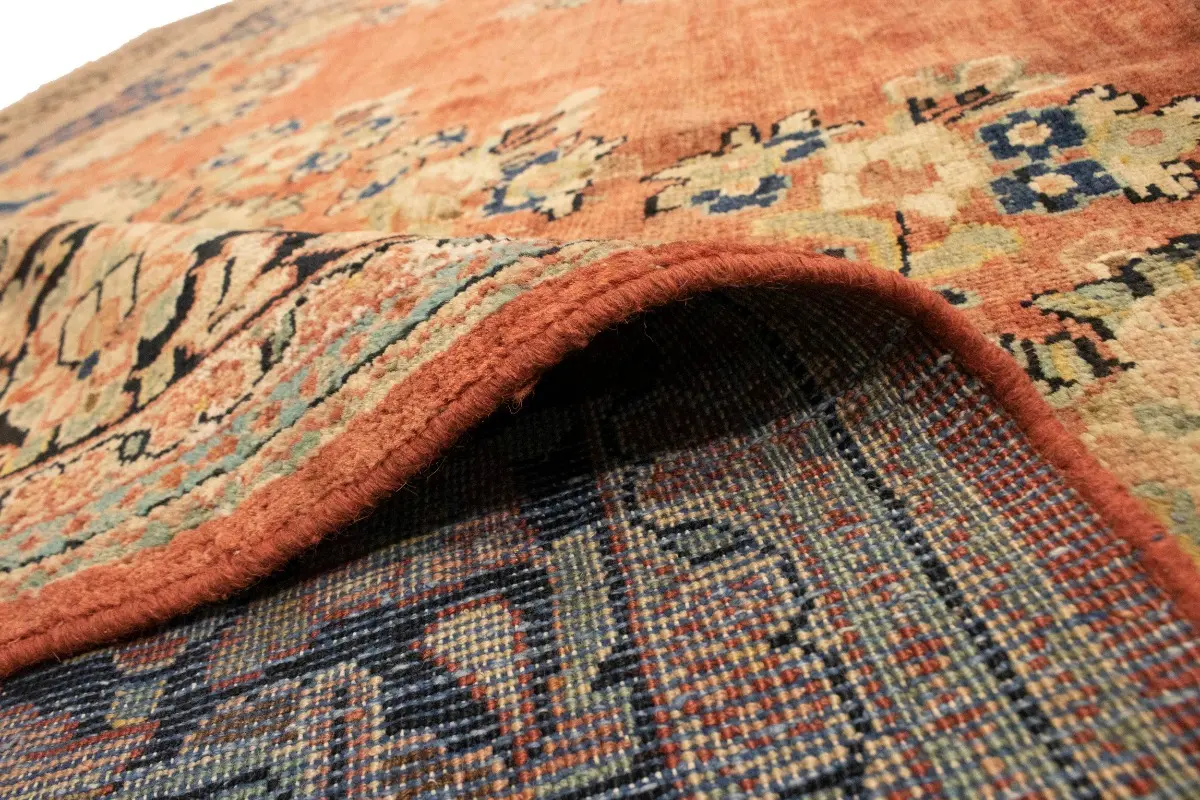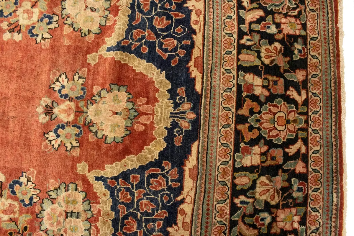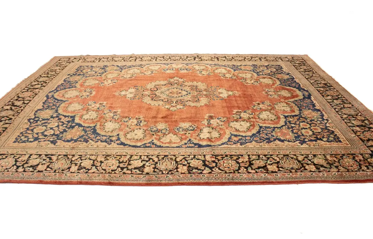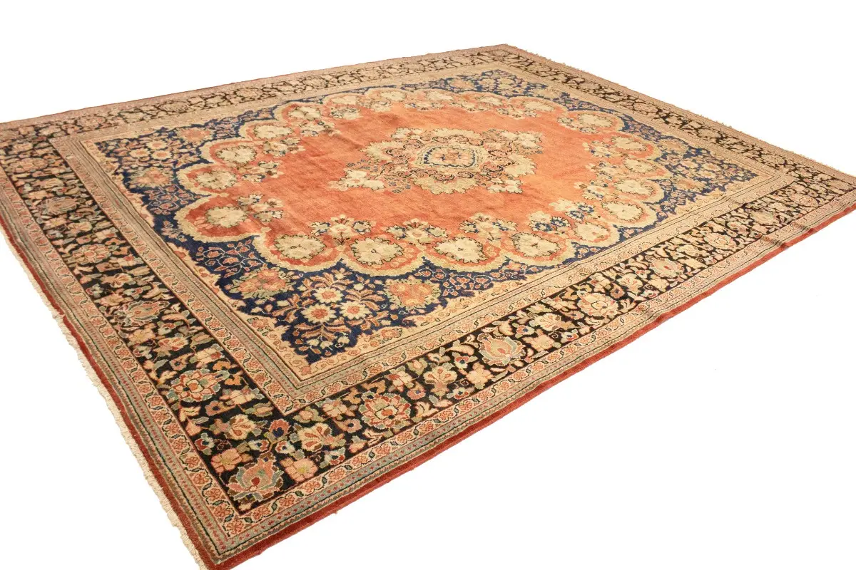 This genuine 10'4X13'6 red vintage Persian rug was made by the hands of gifted weavers inspired by a variety of spectacular artistic designs, to recreate the aged look of the original piece with a richness of color and ornately patterned floral background field. What set this traditional Oriental area rug from the others are the material and dye used (wool pile and cotton foundation), knot count, ancient designs, fantastic grades, and its regional historical connection: it has deep roots, from the story of the people who produced it to the meaning of the symbols and colors displayed across its canvas that have been praised for centuries. This classic home décor carpet will be completely cozy and inviting that never will go out of style! Also, this Oriental rug would be among your most valuable treasures, it is a great investment that accrues value over time, and it will last for generations because was woven with high-quality, all-natural wool; it won’t rip, tear, or shed. Environmentally friendly, opulent yet affordable; this Persian rug will give you a thorough amount of character to help define your living space with elegance and warmth that will capture the eyes and attention of your audience (homeowners, designers, decorators, family and friends). RT-2072