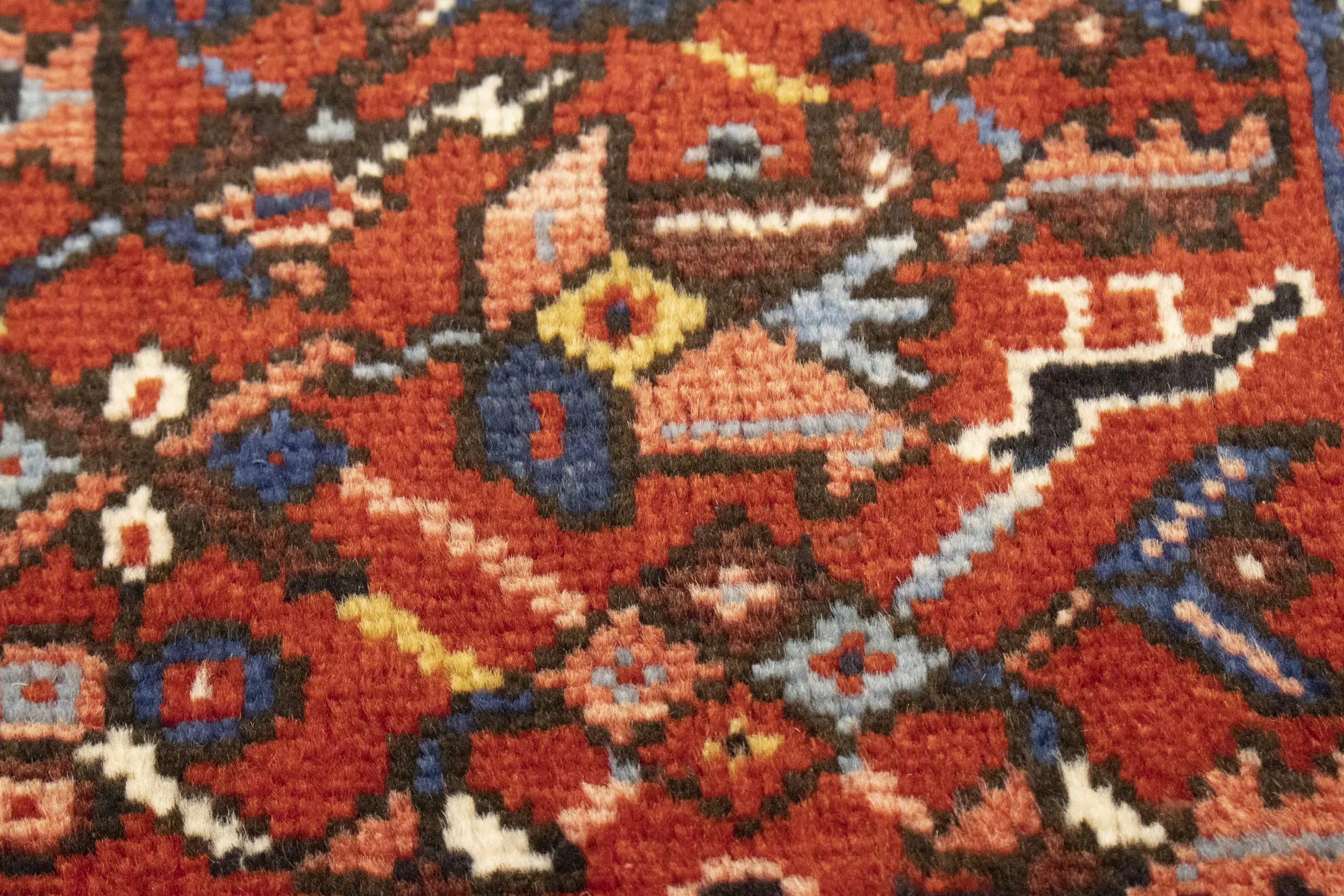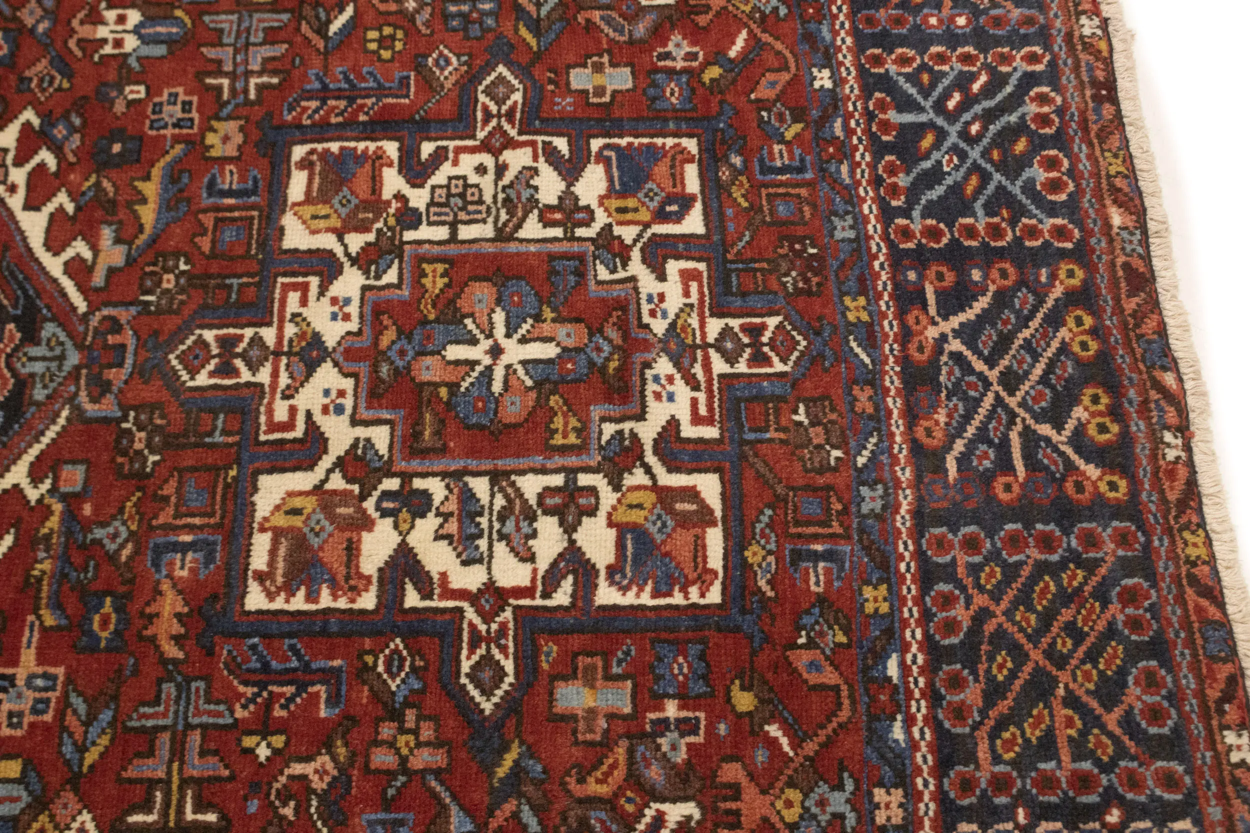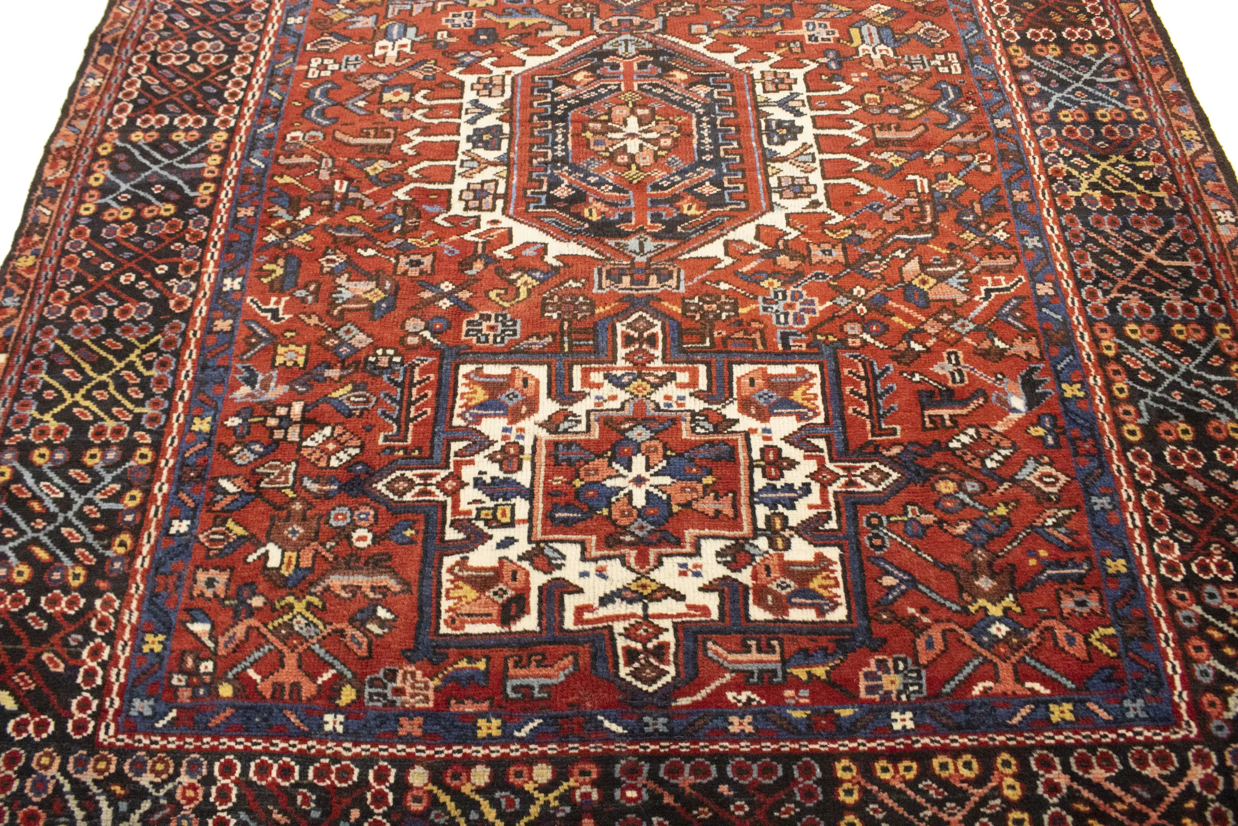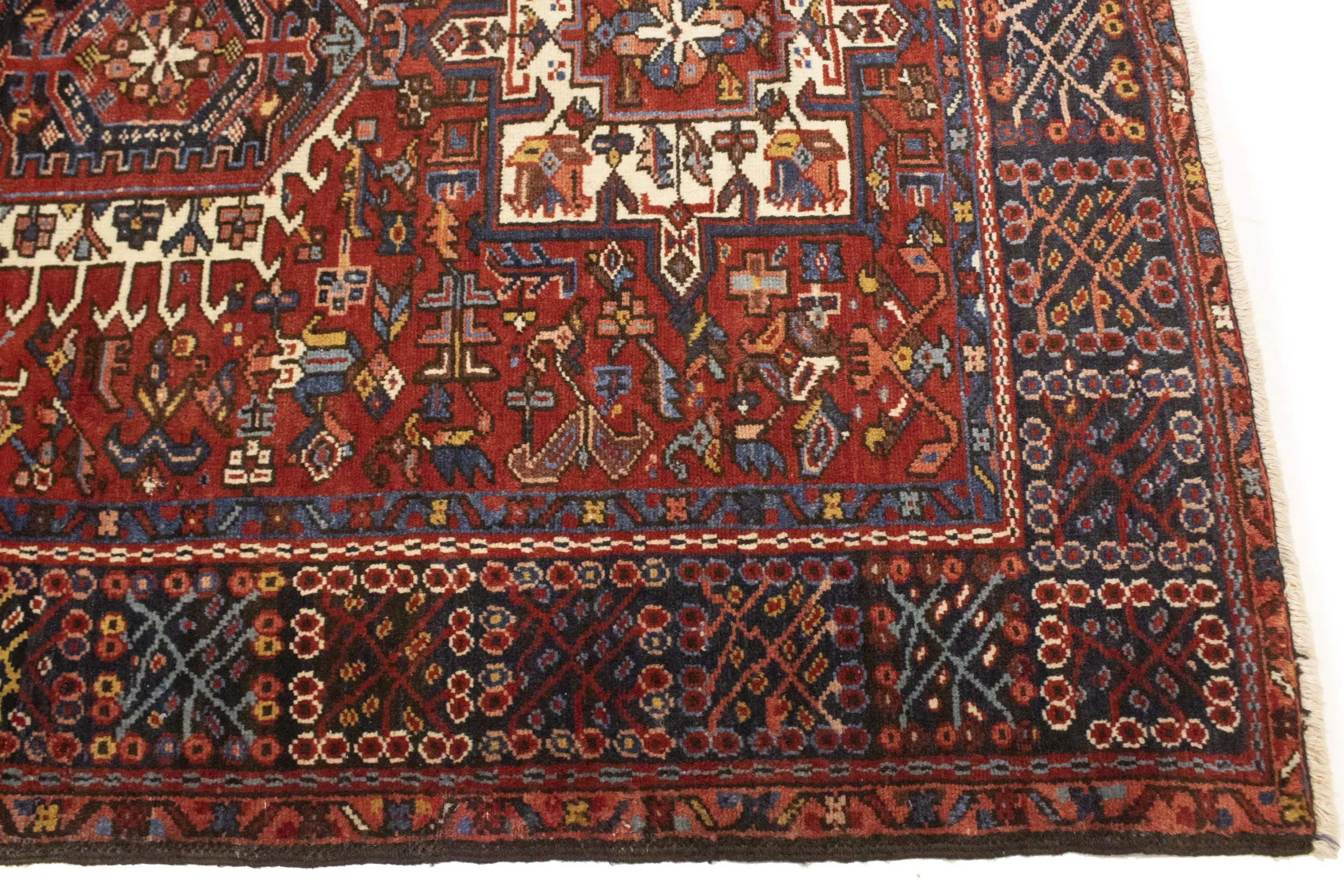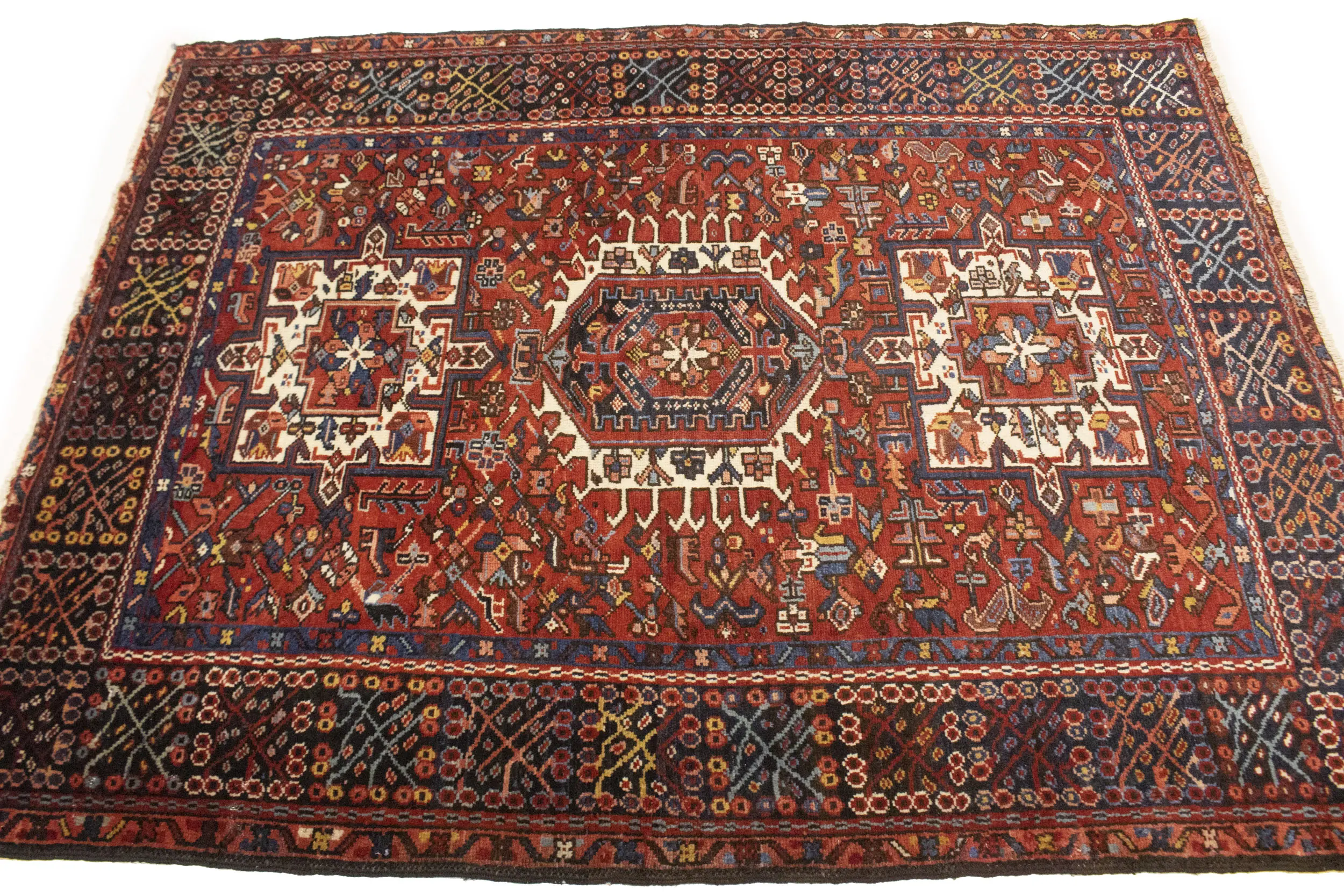 Handmade semi antique 5X6 red Persian rug made with vegetable dyes (fine wool pile and cotton foundation), superior knot count, and appealing ancient designs. This Oriental rug never will go out of style and would be among your most valuable treasures.