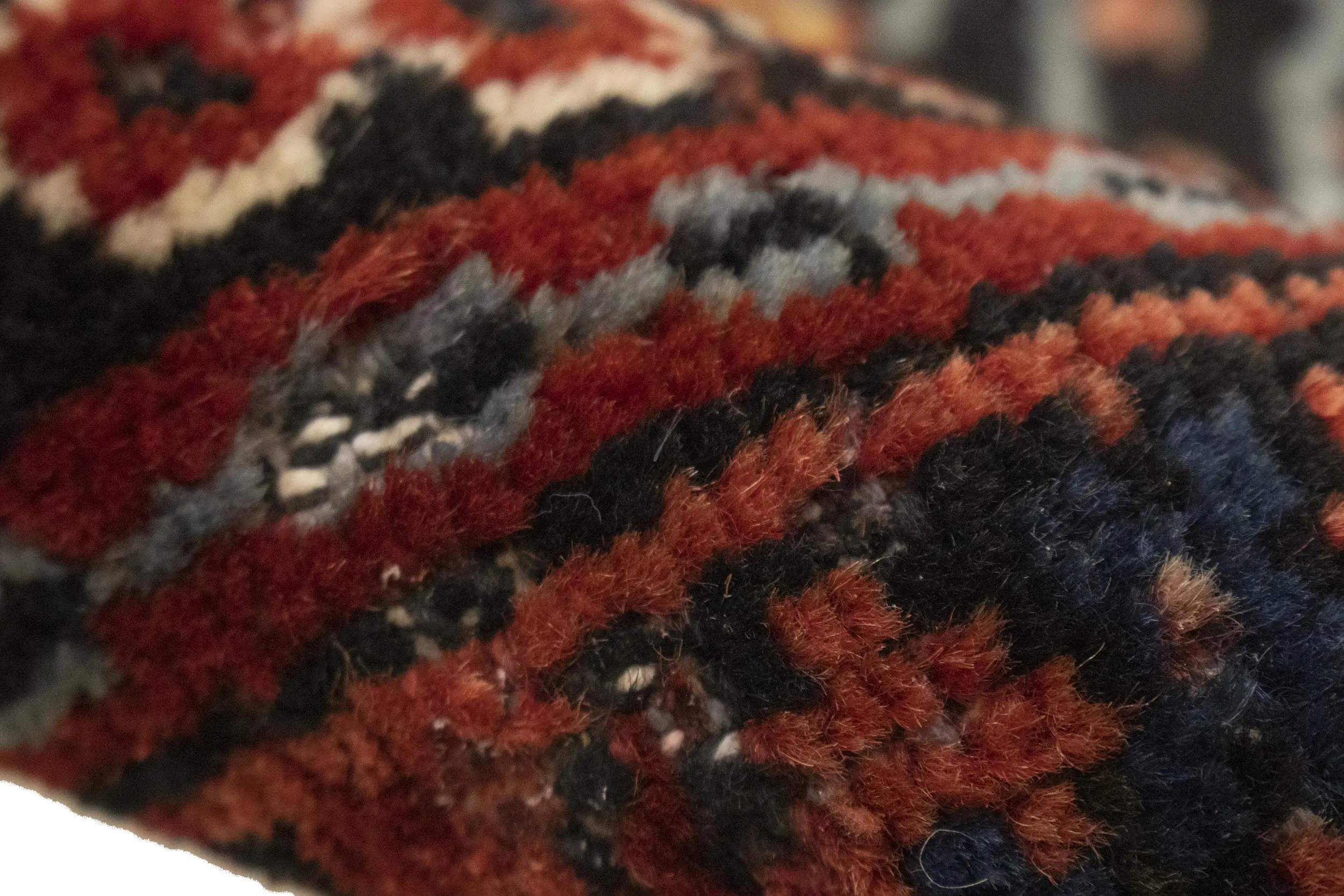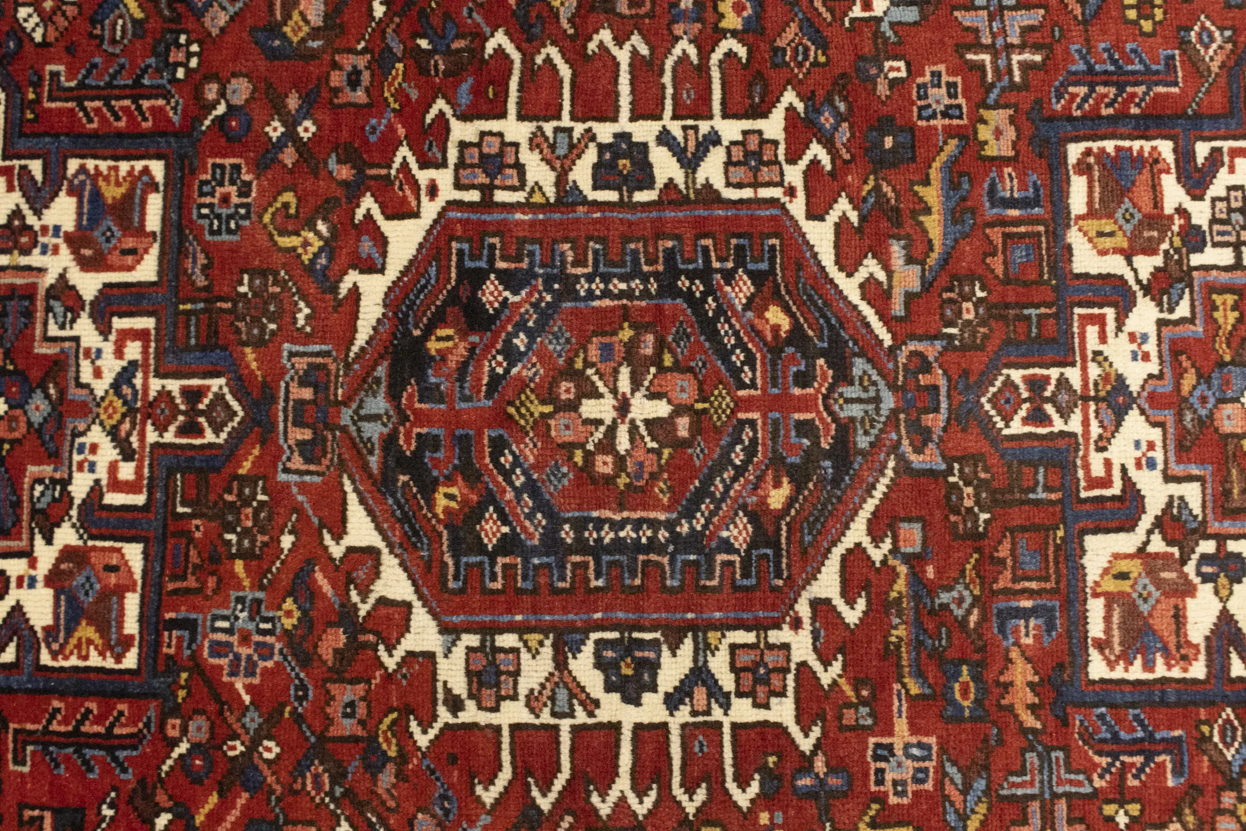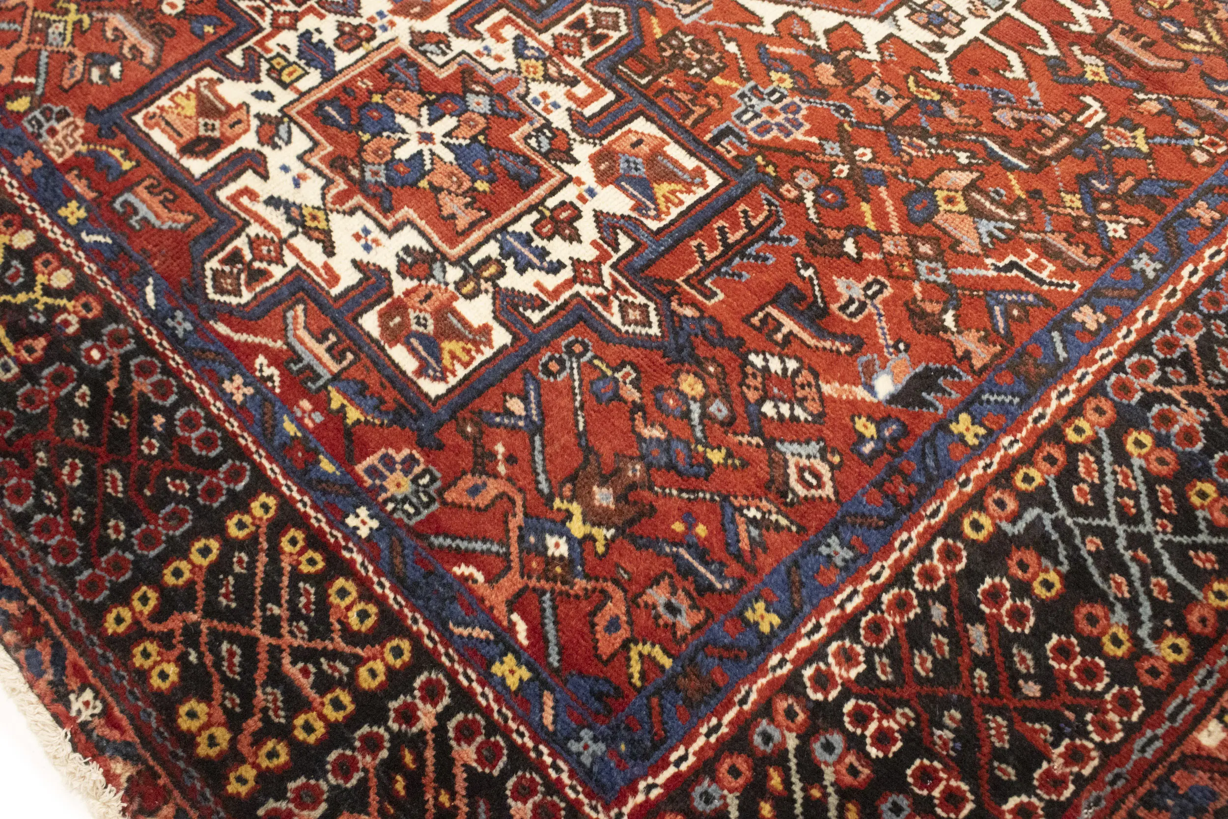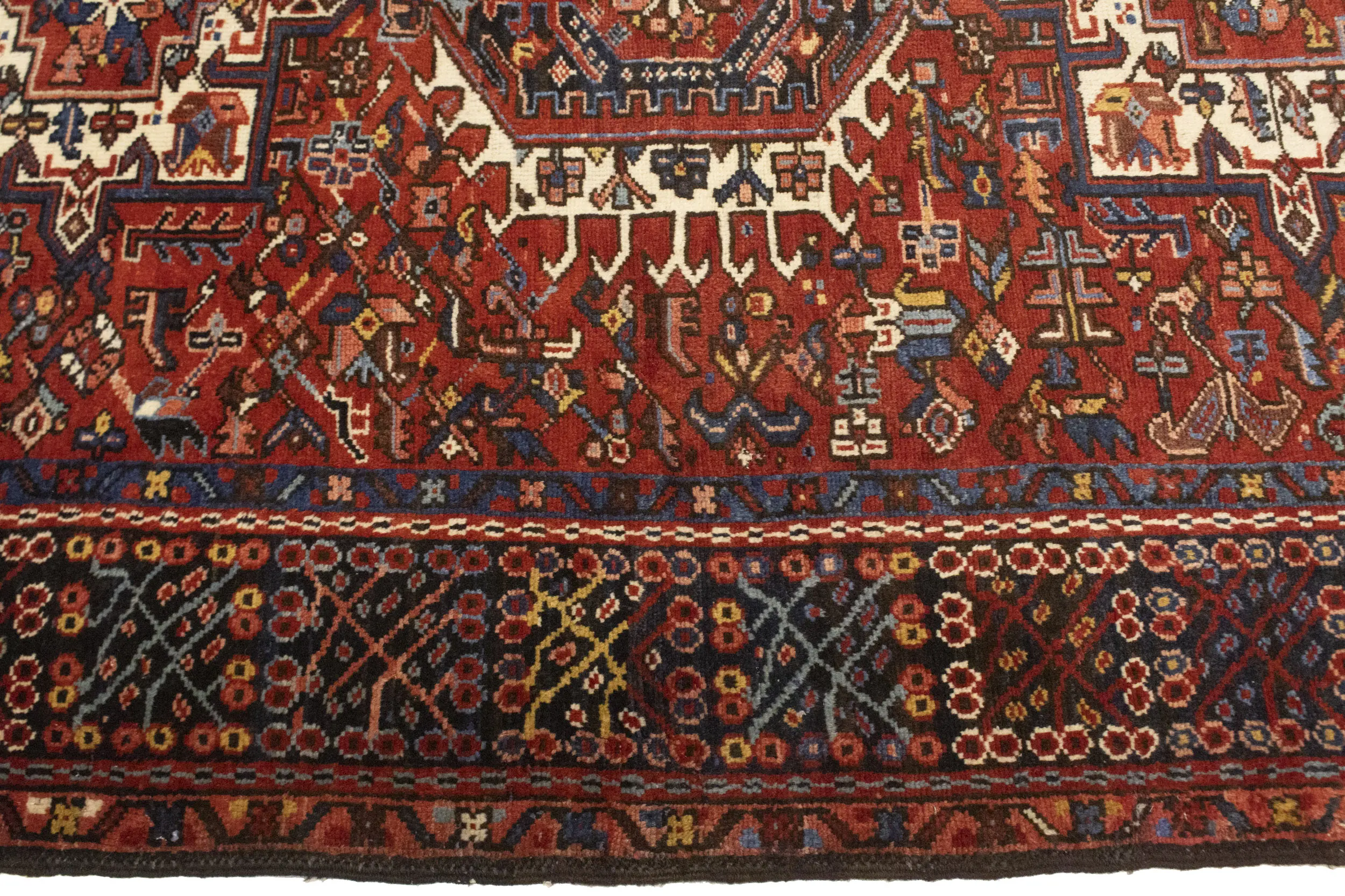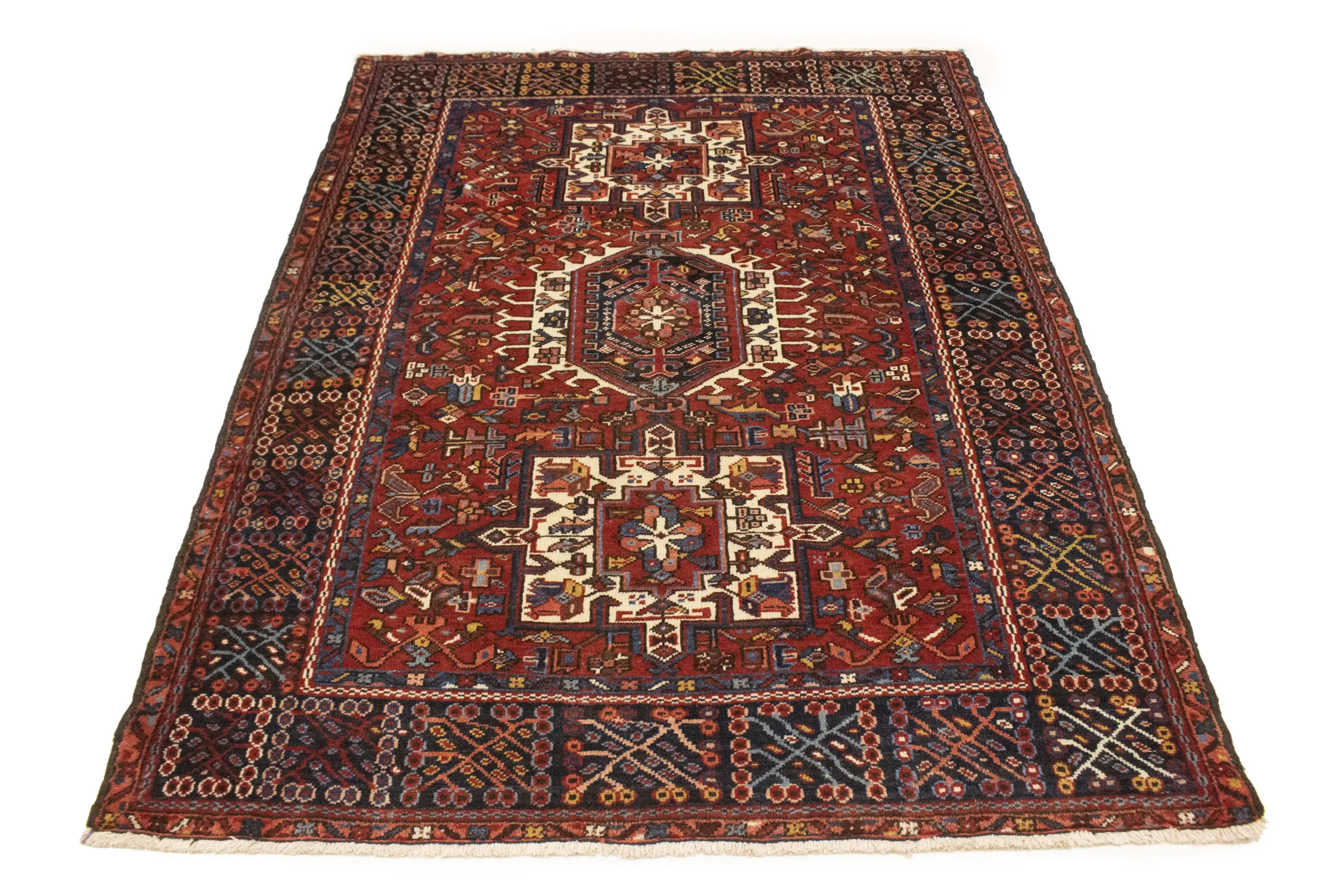Handmade semi antique 5X6 red Persian rug made with vegetable dyes (fine wool pile and cotton foundation), superior knot count, and appealing ancient designs. This Oriental rug never will go out of style and would be among your most valuable treasures.