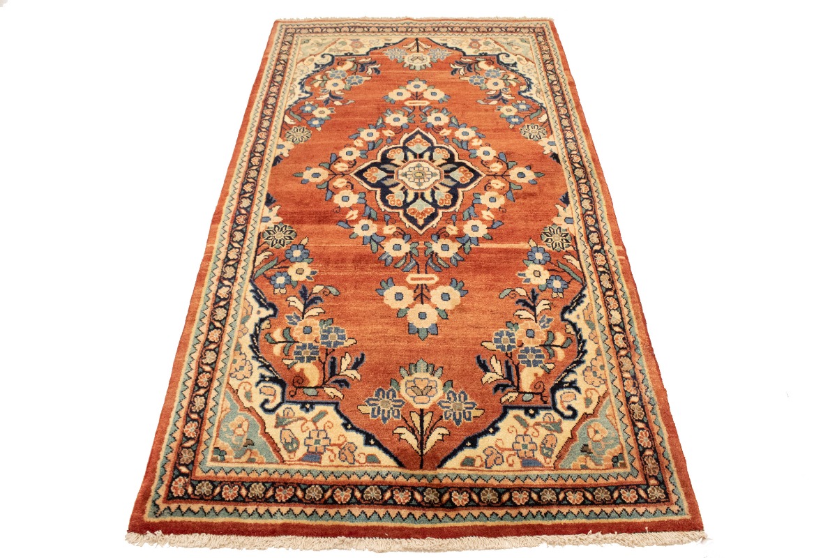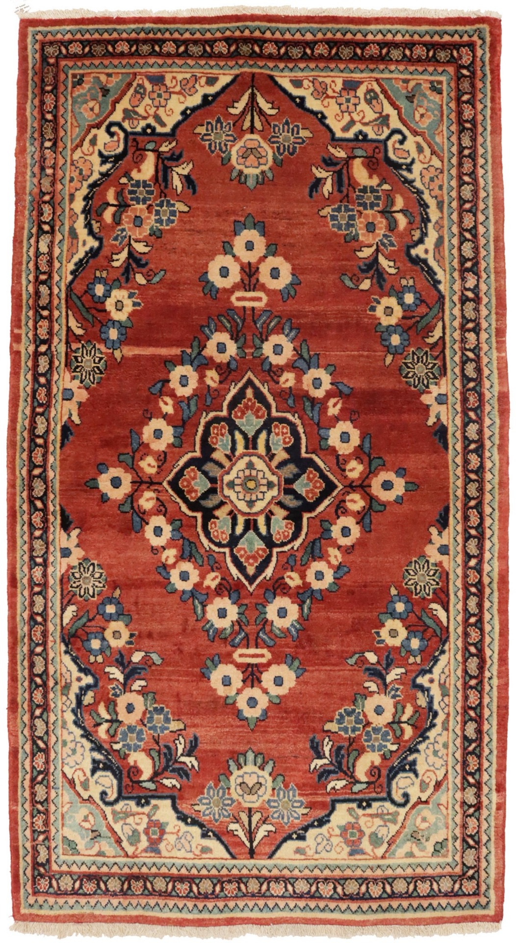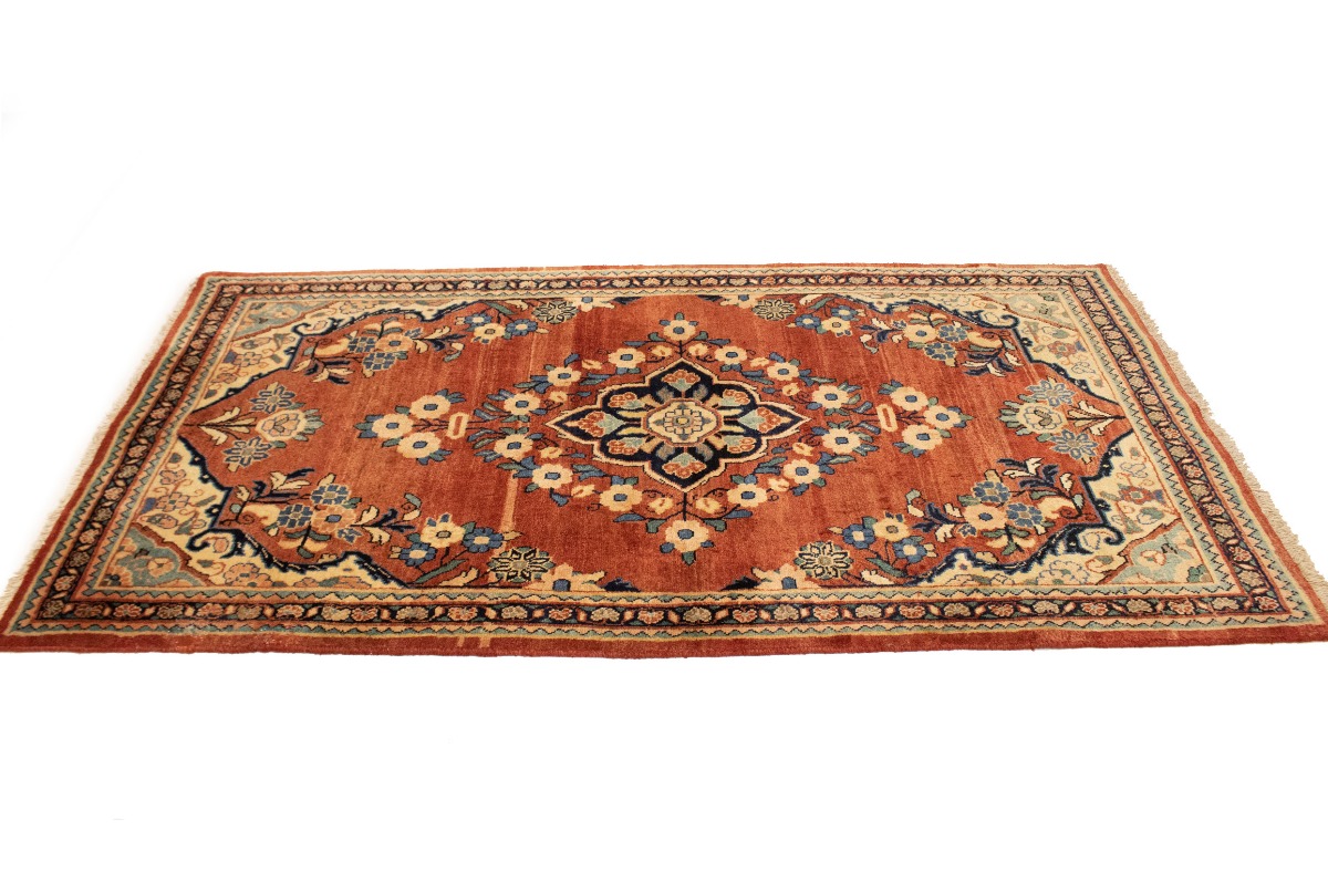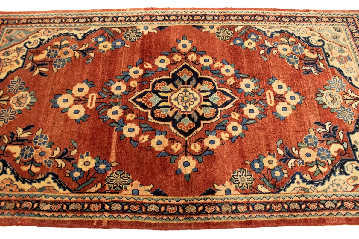 Hand Knotted semi antique 4X7'6 red Persian rug made with vegetable dyes (fine wool pile and cotton foundation), superior knot count, and appealing ancient designs. This Oriental rug never will go out of style and would be among your most valuable treasures.
